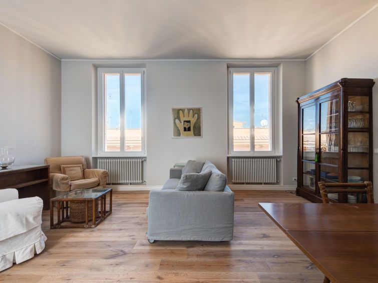 "Luminosa Vittoria", 4-room apartment 150 m2 on 5th floor. Spacious and bright, renovated, beautiful and stylish furnishings: large living/dining room with kitchen corner and satellite TV. Exit to the balcony. 1 double bedroom with shower/bidet/WC. Exit to the balcony. 1 room with 2 beds.