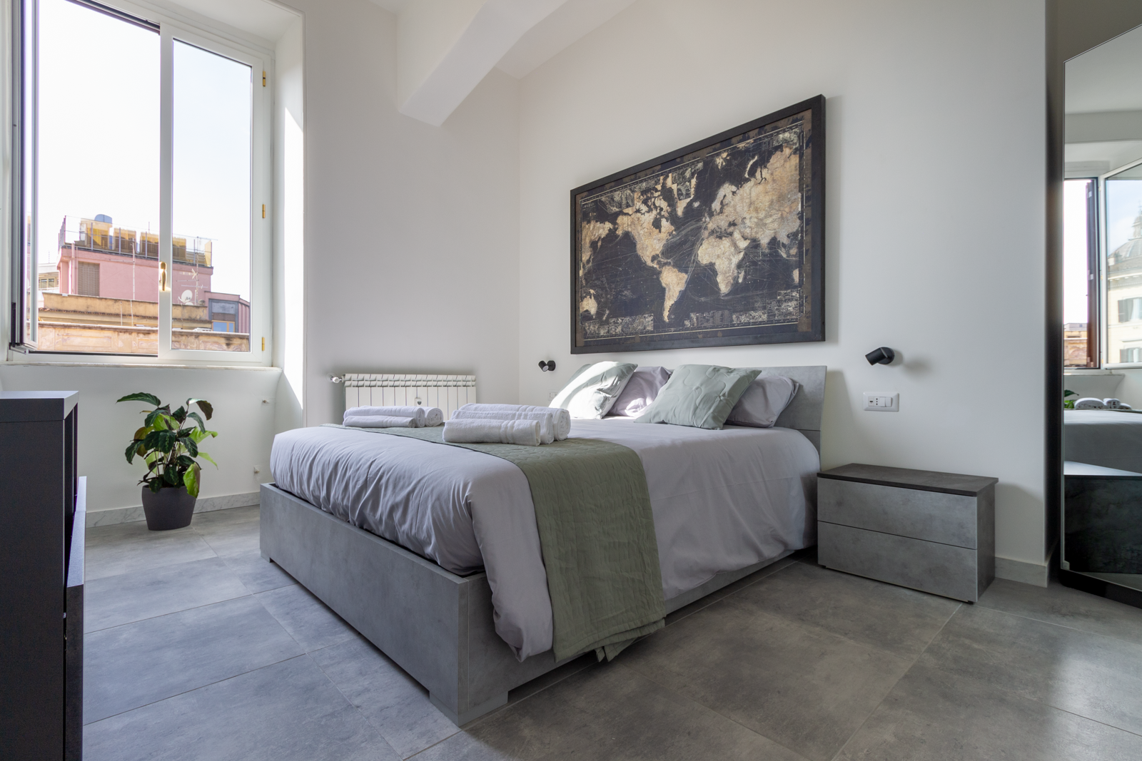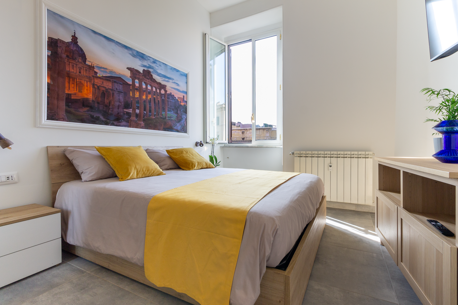 With its remarkably central location and delightful views, this apartment is an excellent home-from-home in Rome. It’s only 50 metres from Termini station, so getting around the city is a breeze – though you can walk to most of the iconic sights. It’s a short stroll from the Basilica Papale di Santa Maria Maggiore, and you can see the statue of the Madonna above the last remaining column of the Temple of Massenzio from the apartment. The decor is simple but charming, with two comfortable bedrooms to relax in after busy days spent sightseeing.