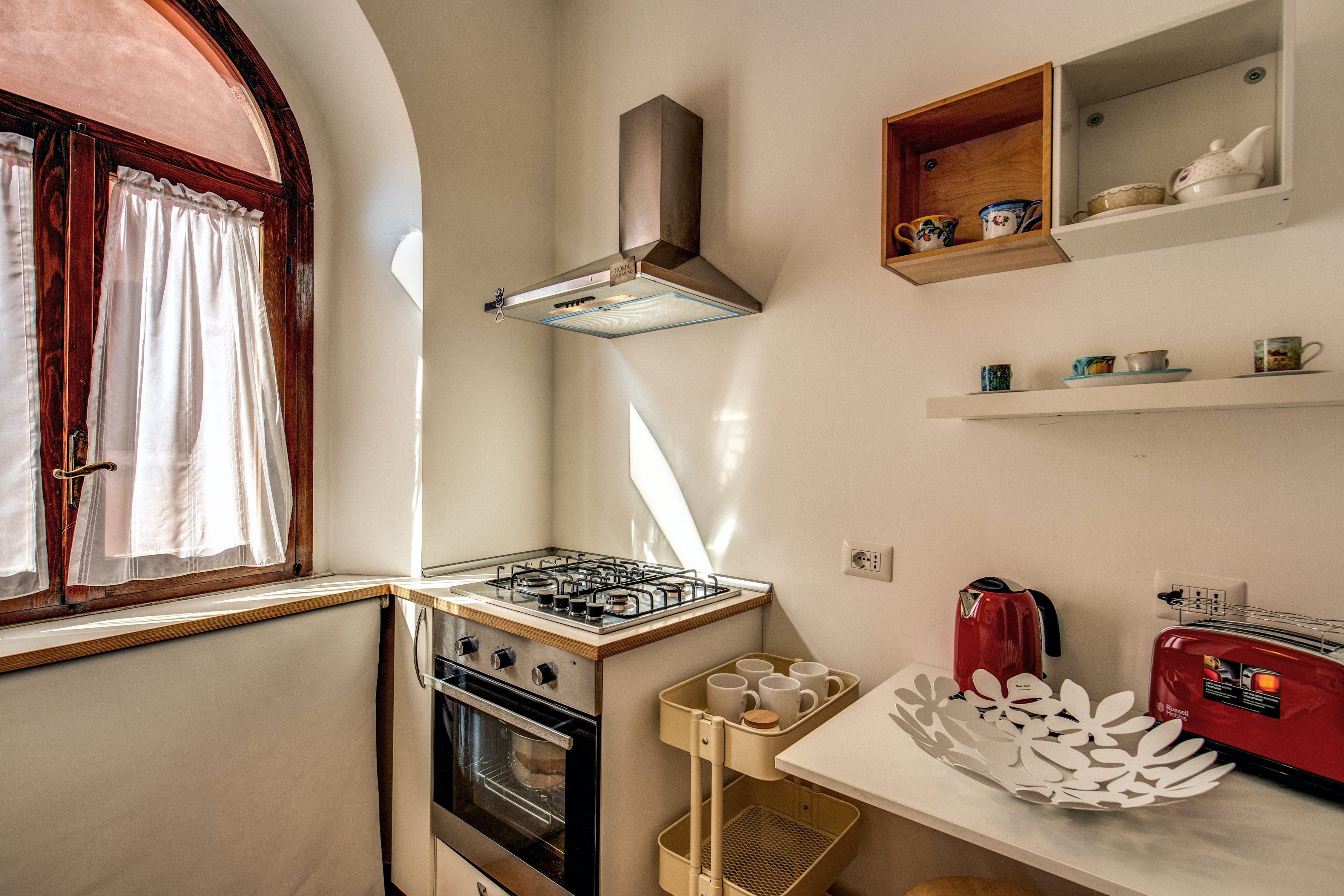 While this two-bedroom Rome apartment isn't the most stylish in our collection, its enviable location is what makes it stand out. If you're here to explore, you'll find plenty of galleries and museums nearby. Back at home, one bedroom offers courtyard views, while the other lets you peer through trees at the River Tiber. The kitchen, while looking in need of an update, is well-equipped – though we think you'll be taking advantage of stylish Regola's eateries more often than not.