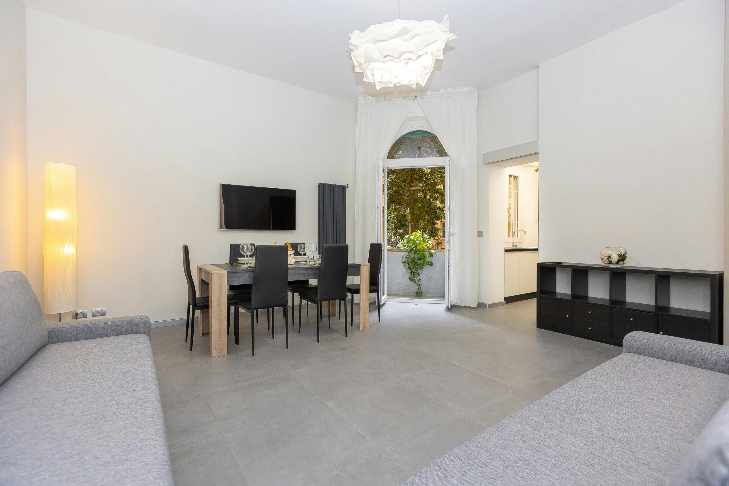 Wake up and wander to the Vatican City from this well-located apartment. Just twenty minutes from the historic enclave, you'll be admiring stunning sights like the Sistine Chapel and St Peter's Basilica in no time. It might be a little sparse inside (and two guests will have to be content with a sofa bed), but as a base for groups to unwind after a busy day in the city, it fits the bill. There's plenty of room to spread out in the living space, and the compact balcony (overlooking a leafy garden) is a bonus – in the evening, it's the ideal spot to reminisce about your Roman holiday over a glass of wine.