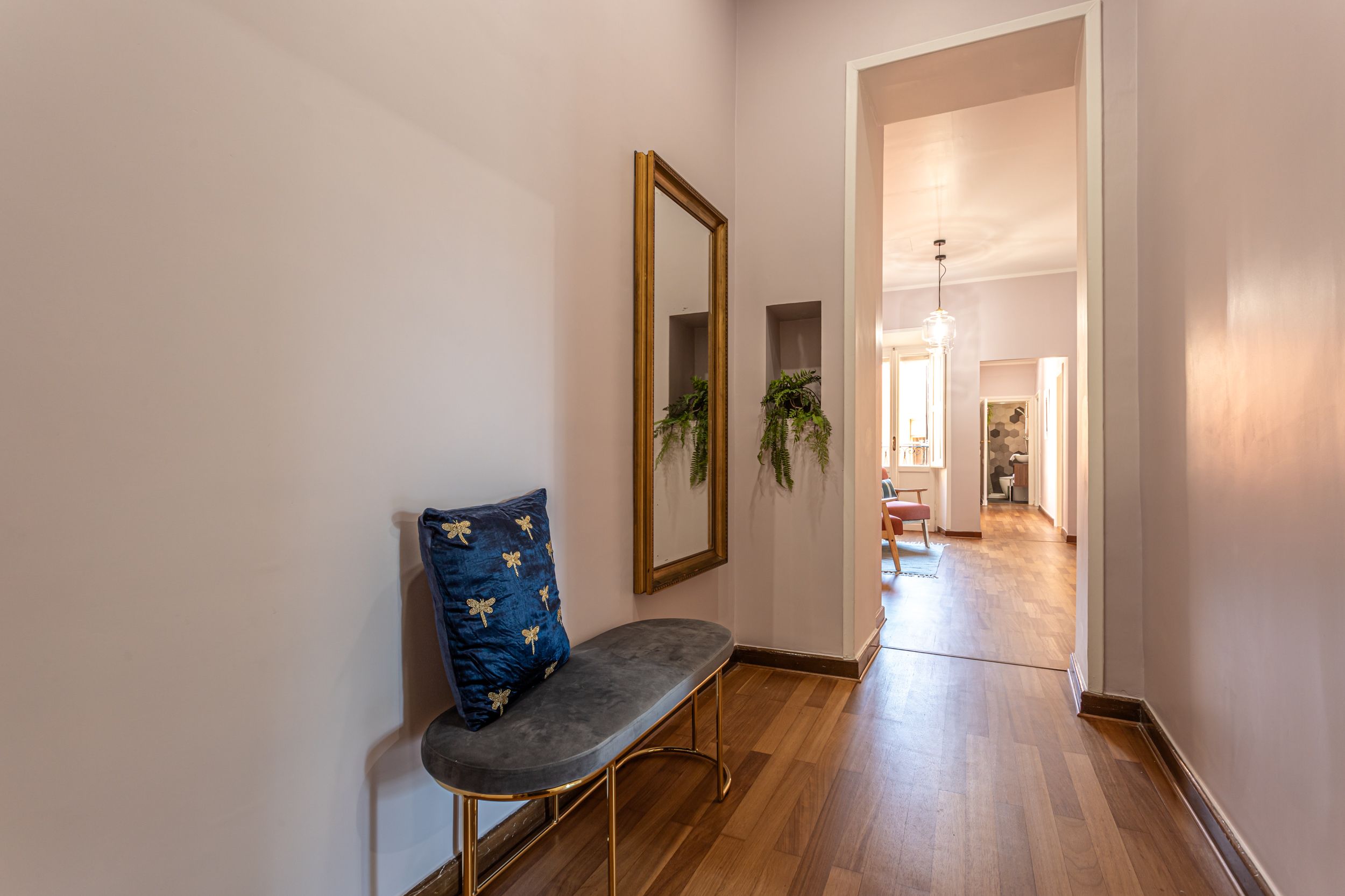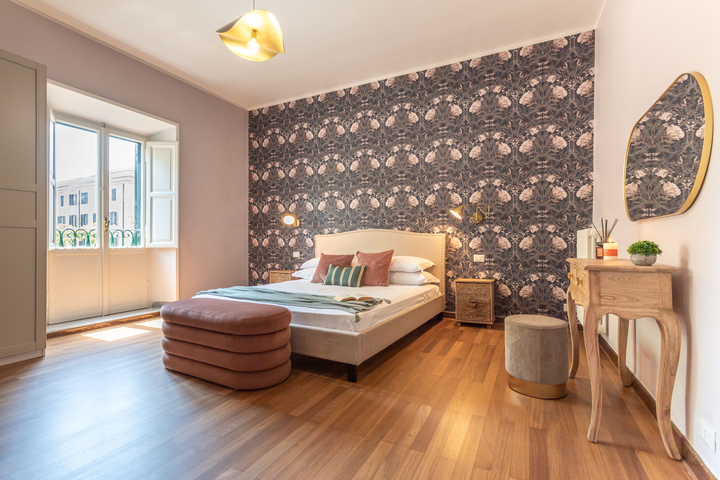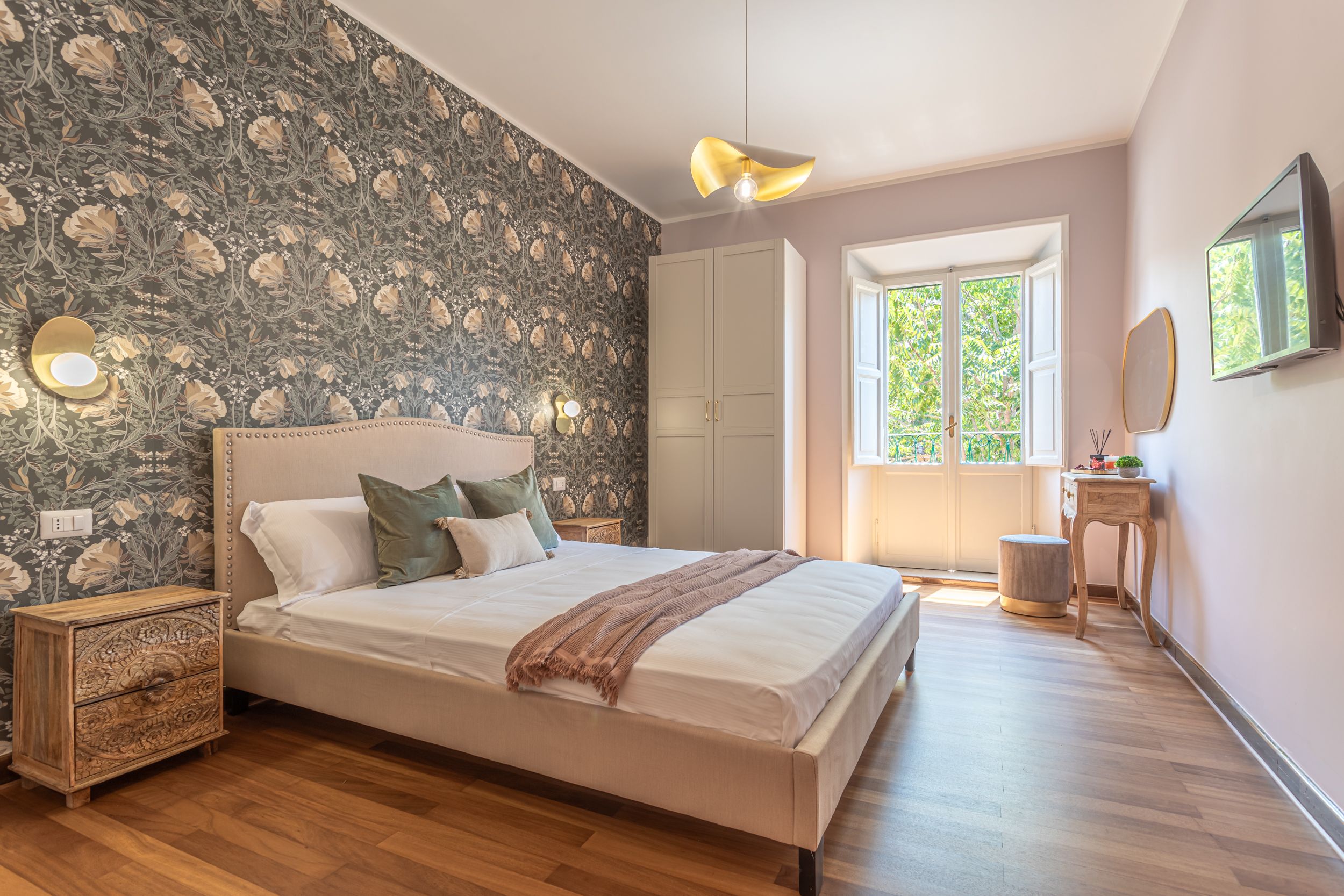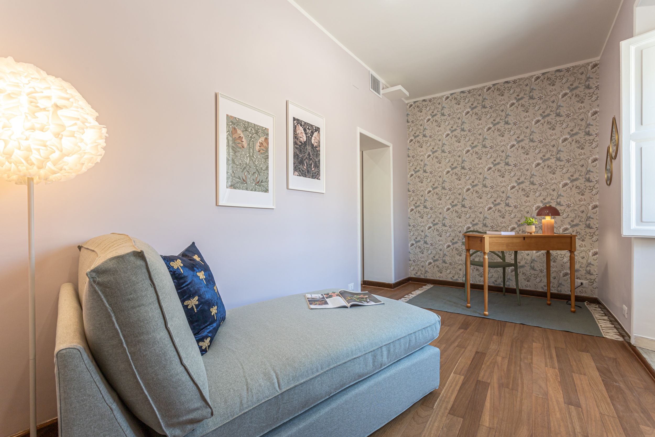 This striking apartment has been lovingly decorated. It’s pretty and modern, with patterned wallpaper, parquet floors, and interesting artwork. Several large windows fill the apartment with light, adding to its peaceful atmosphere. There’s a convenient kitchen to cook in, a desk for those working remotely while in Rome, and three sumptuous bedrooms – you’ll have everything you need in this elegant home. Best of all, you’ll be in Trastevere, one of the oldest and most authentic Roman districts. From here, you can easily stroll to the Vatican museums and iconic sights including Piazza Navona and the Trevi Fountain.