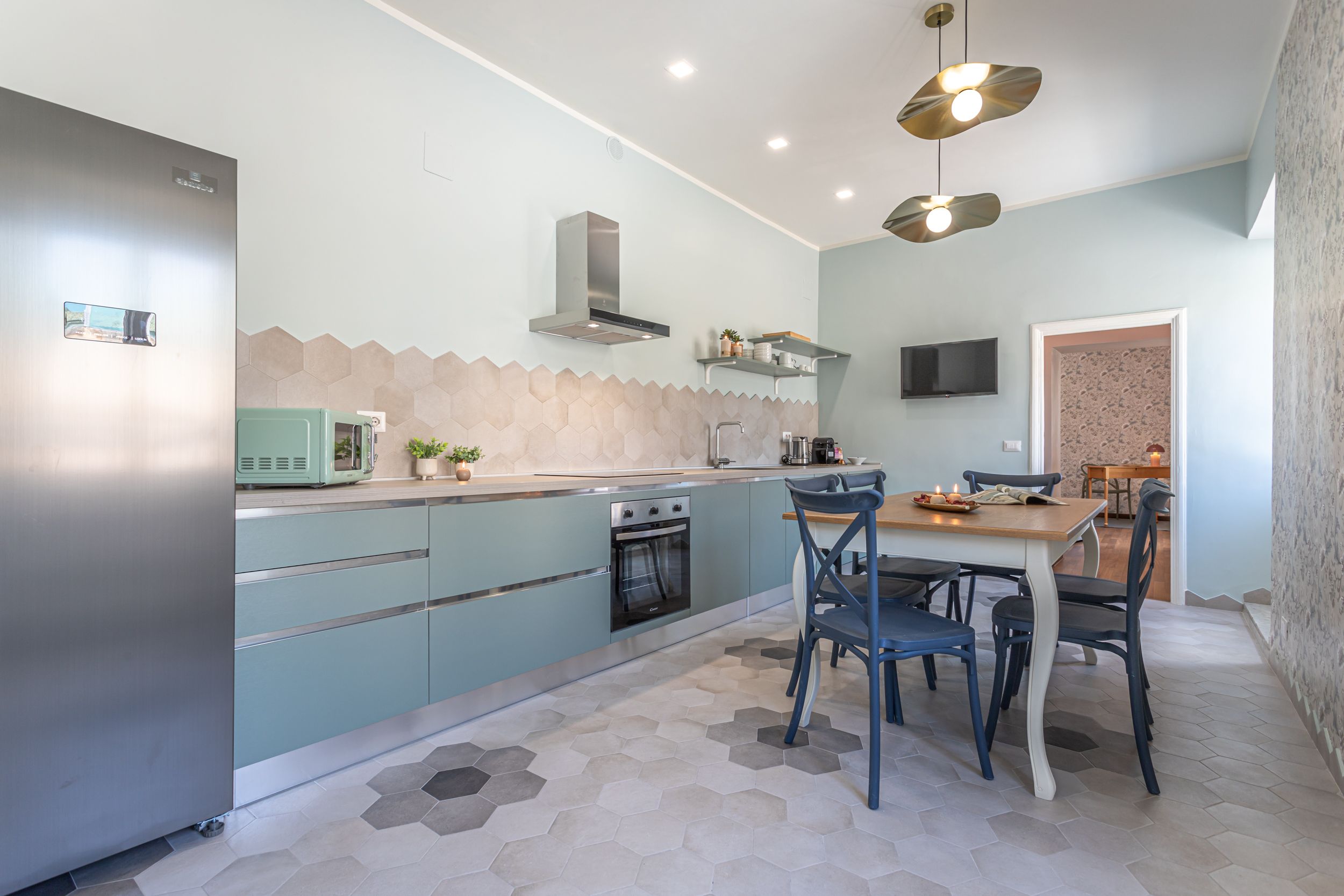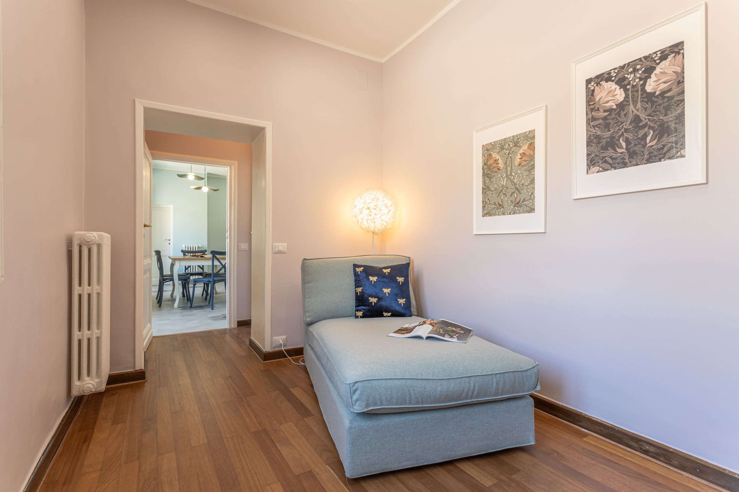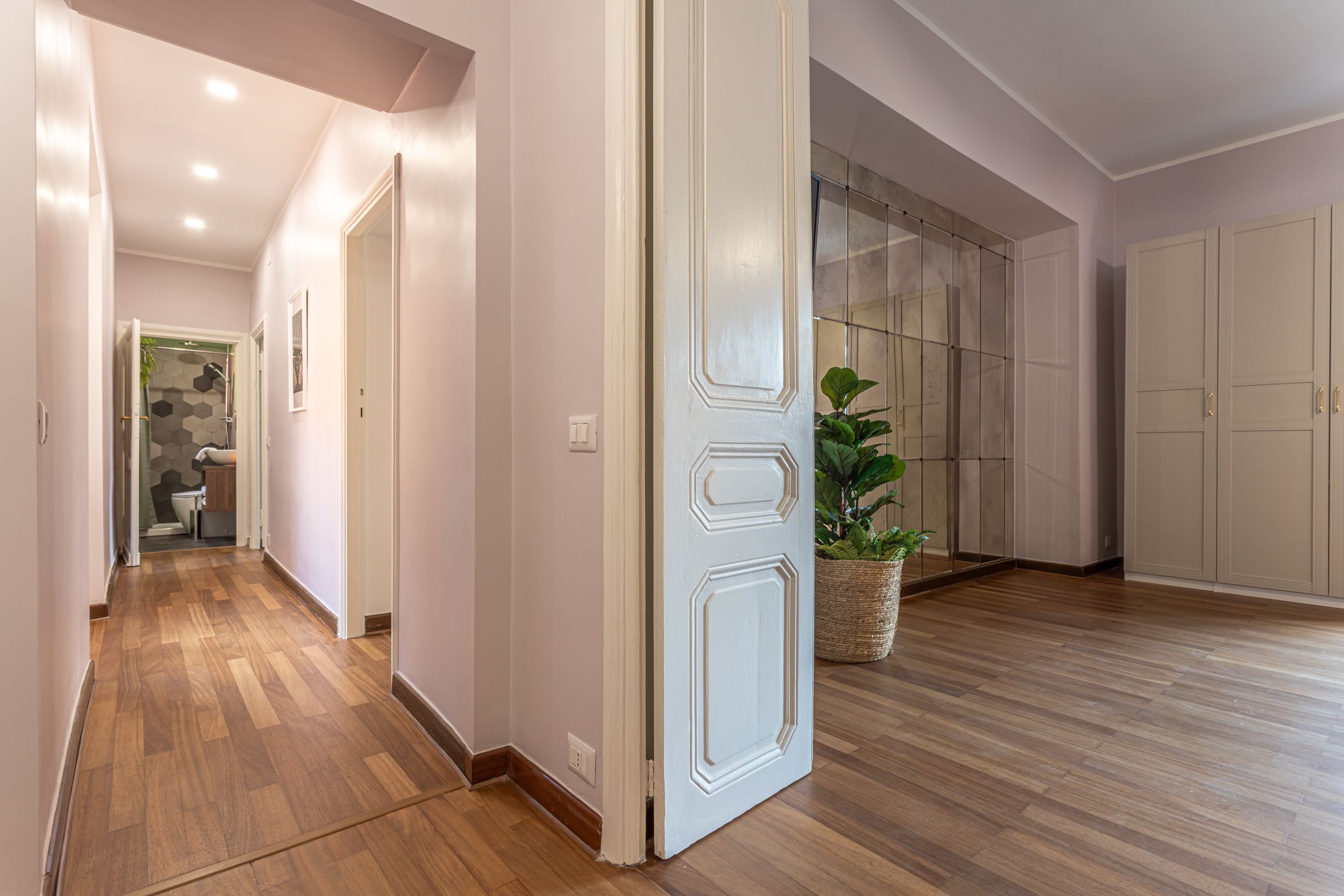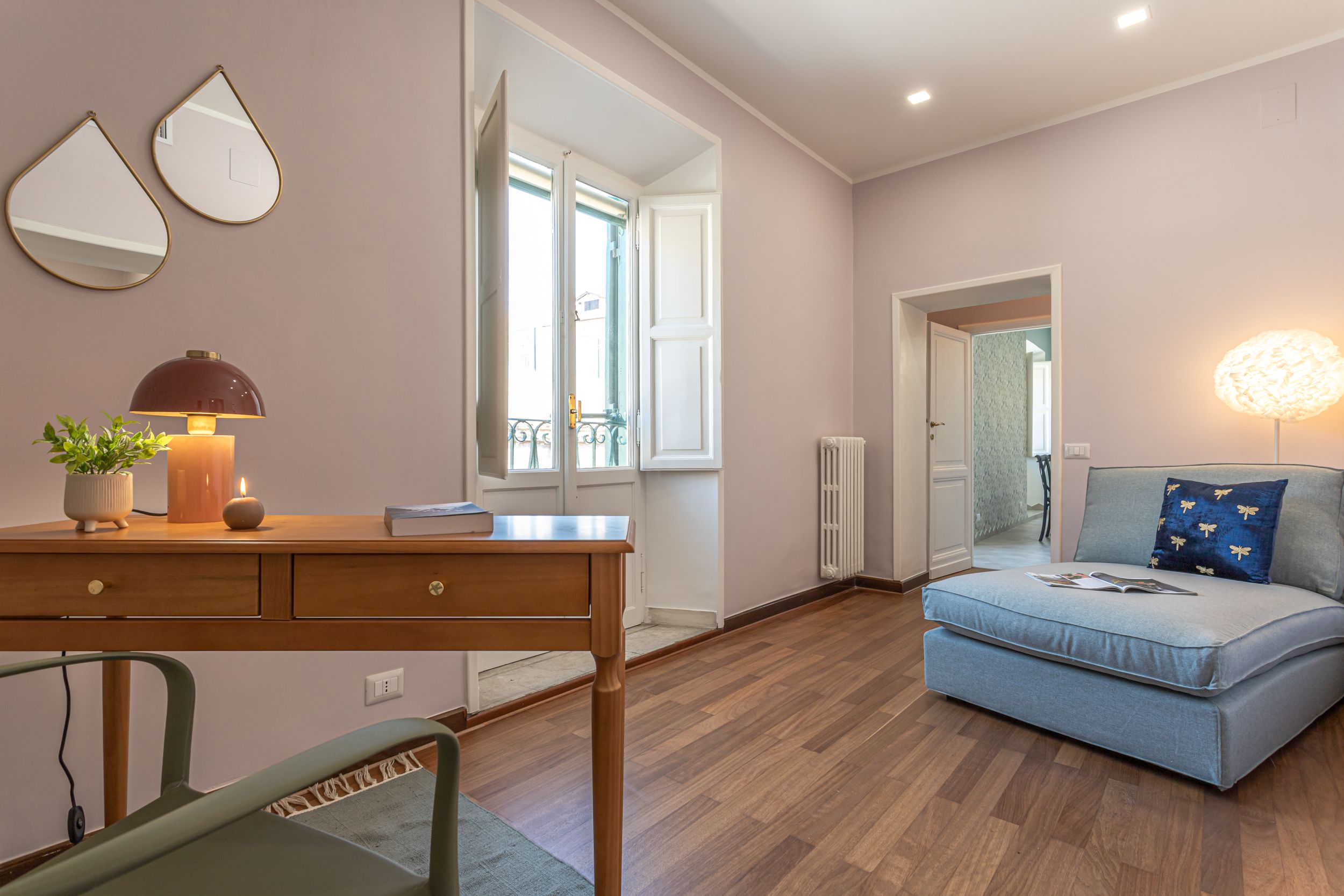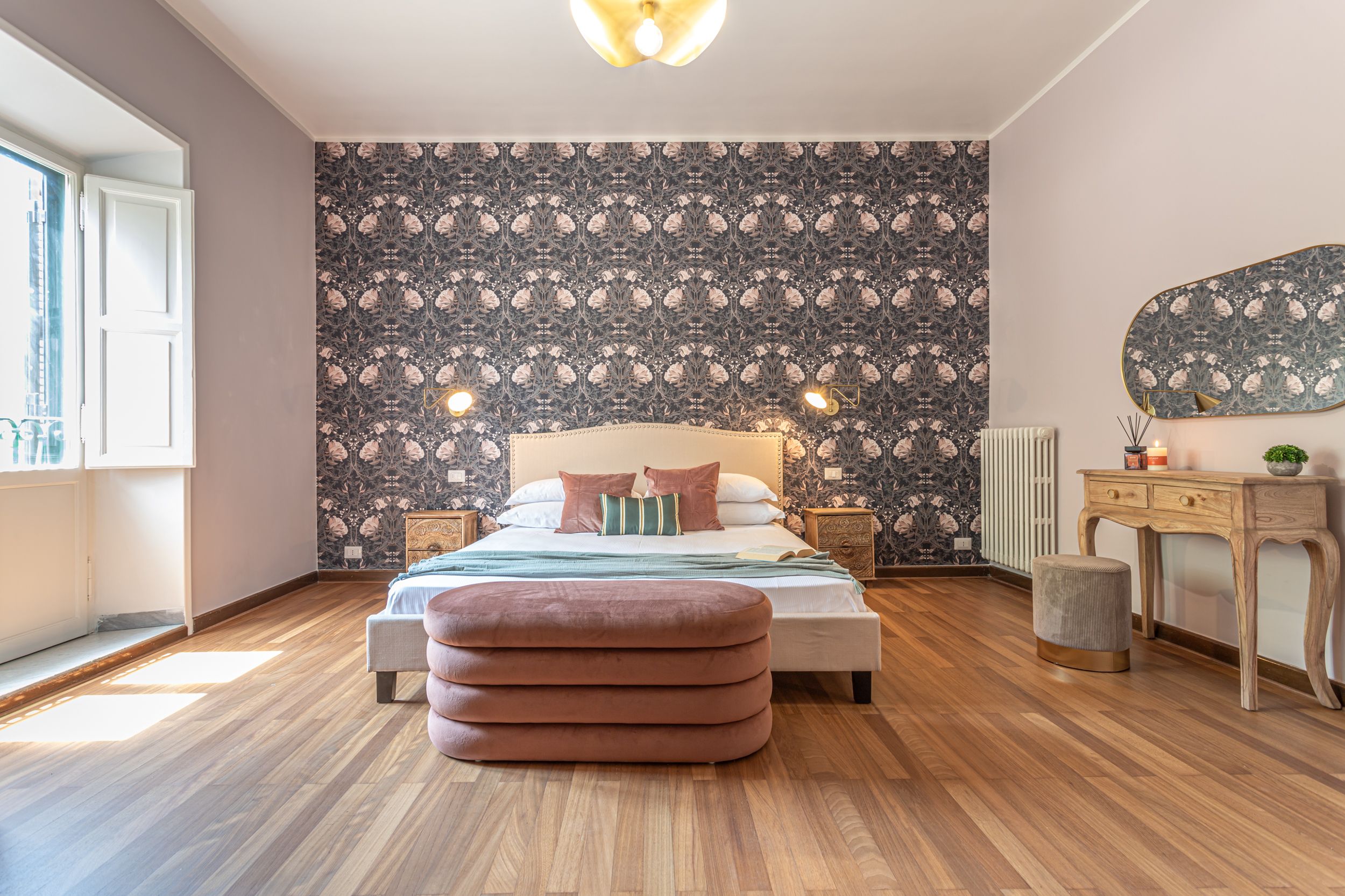 This striking apartment has been lovingly decorated. It’s pretty and modern, with patterned wallpaper, parquet floors, and interesting artwork. Several large windows fill the apartment with light, adding to its peaceful atmosphere. There’s a convenient kitchen to cook in, a desk for those working remotely while in Rome, and three sumptuous bedrooms – you’ll have everything you need in this elegant home. Best of all, you’ll be in Trastevere, one of the oldest and most authentic Roman districts. From here, you can easily stroll to the Vatican museums and iconic sights including Piazza Navona and the Trevi Fountain.