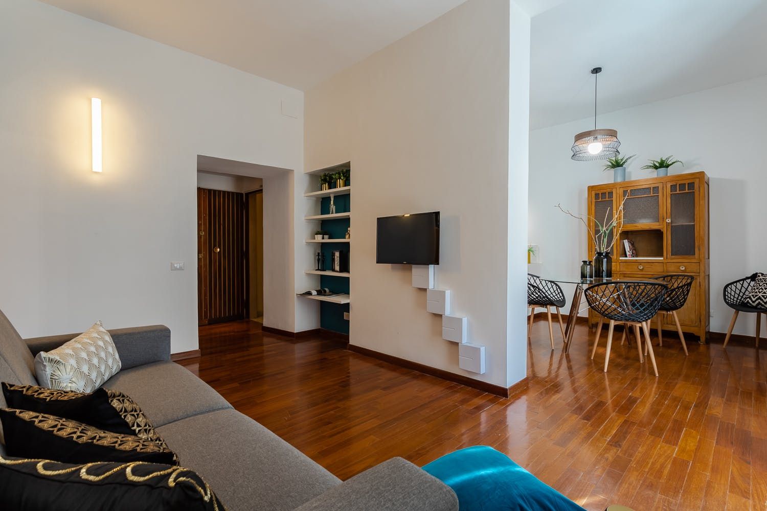 A few minutes’ strolling takes you to the ancient walls of Rome’s most famous sight, and the streets around the apartment are filled with local trattoria, cafes, bars and supermarkets to stock up on supplies.