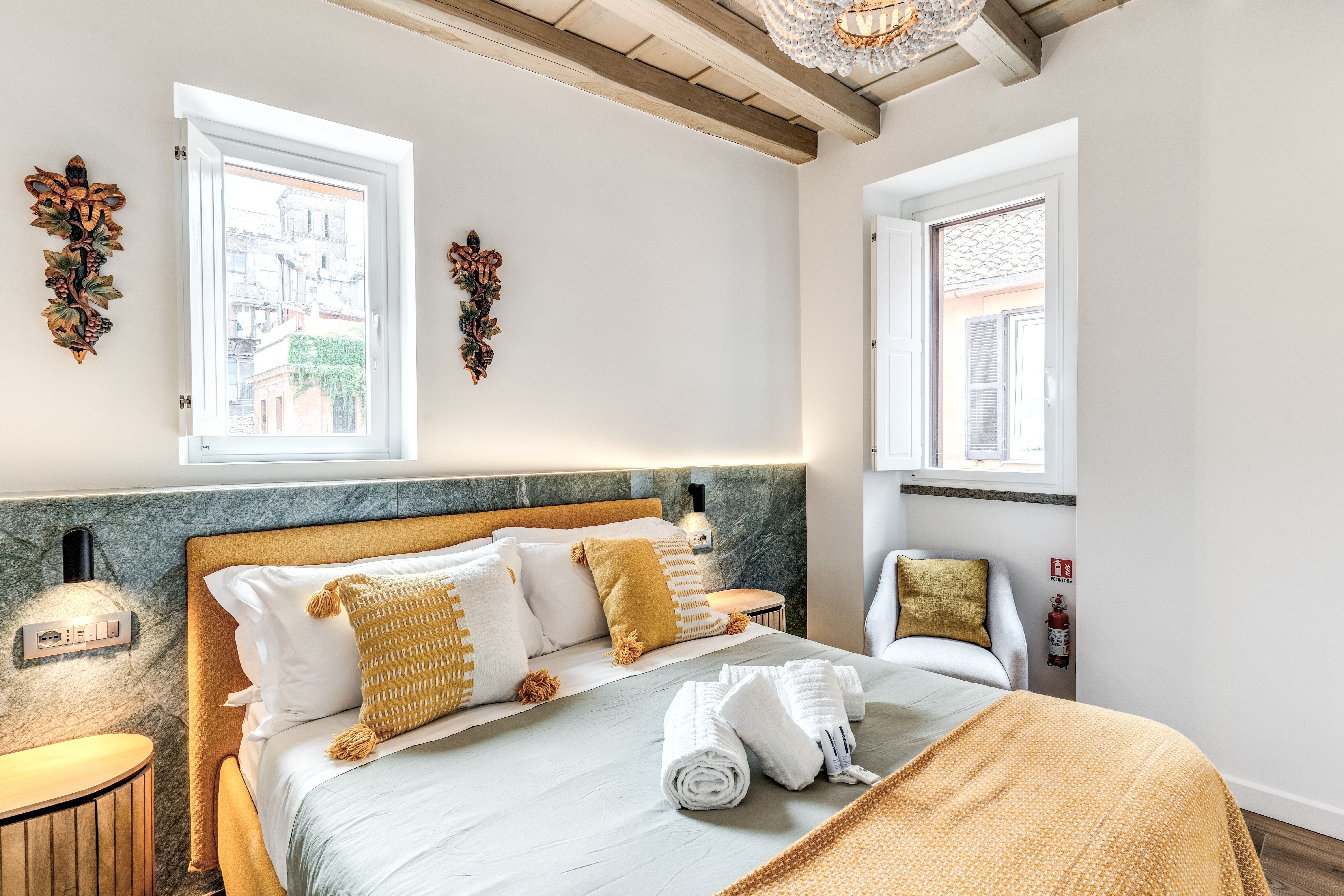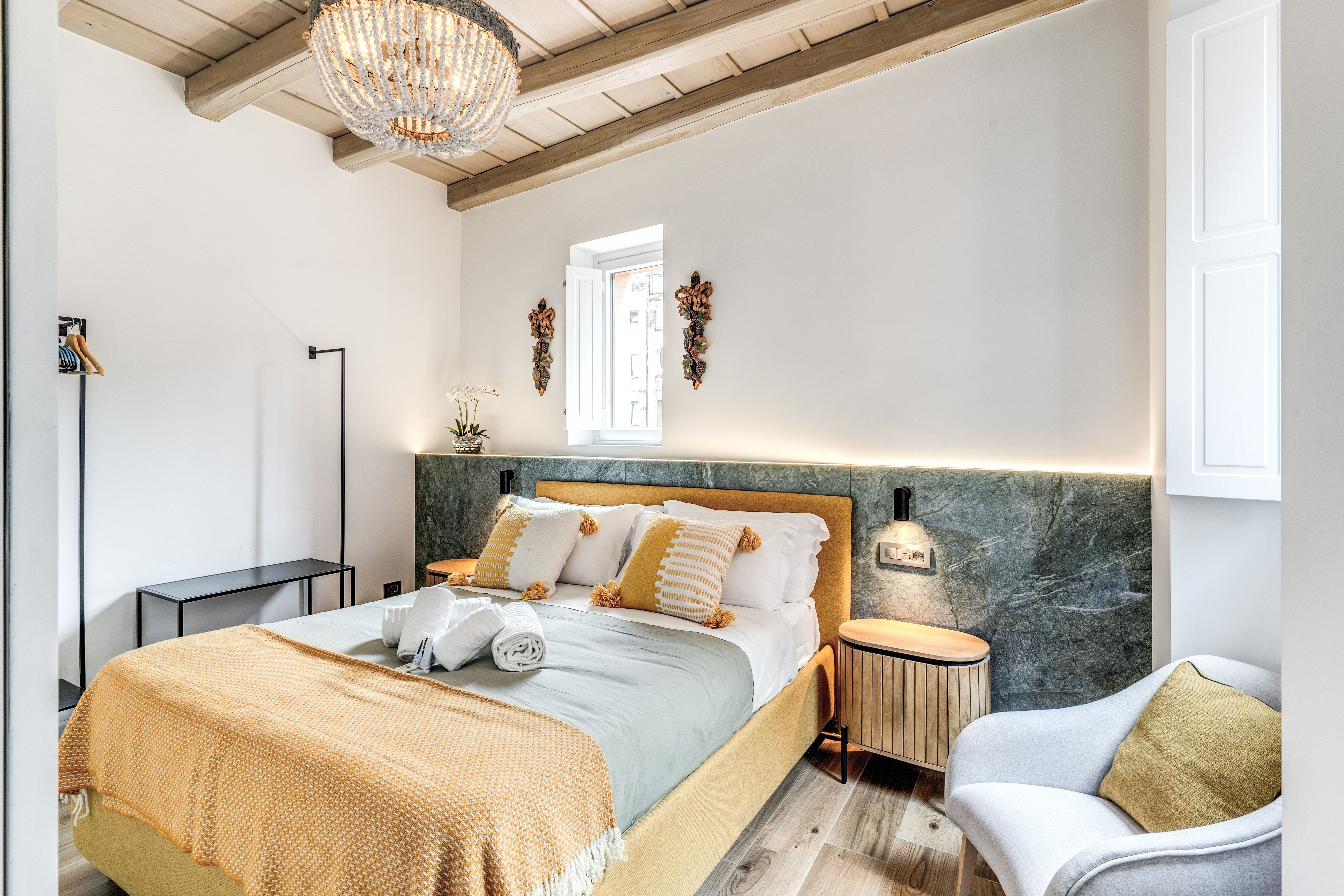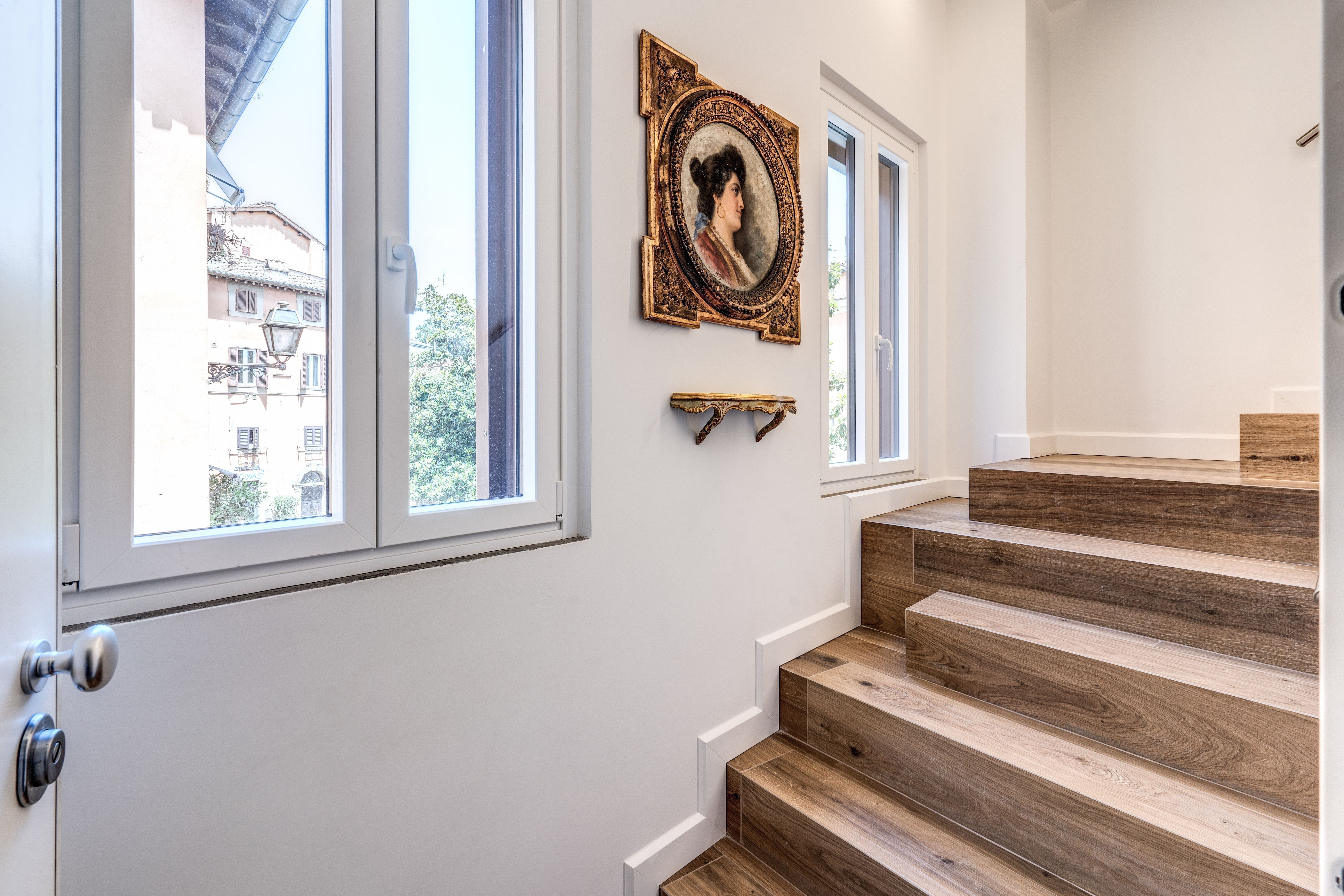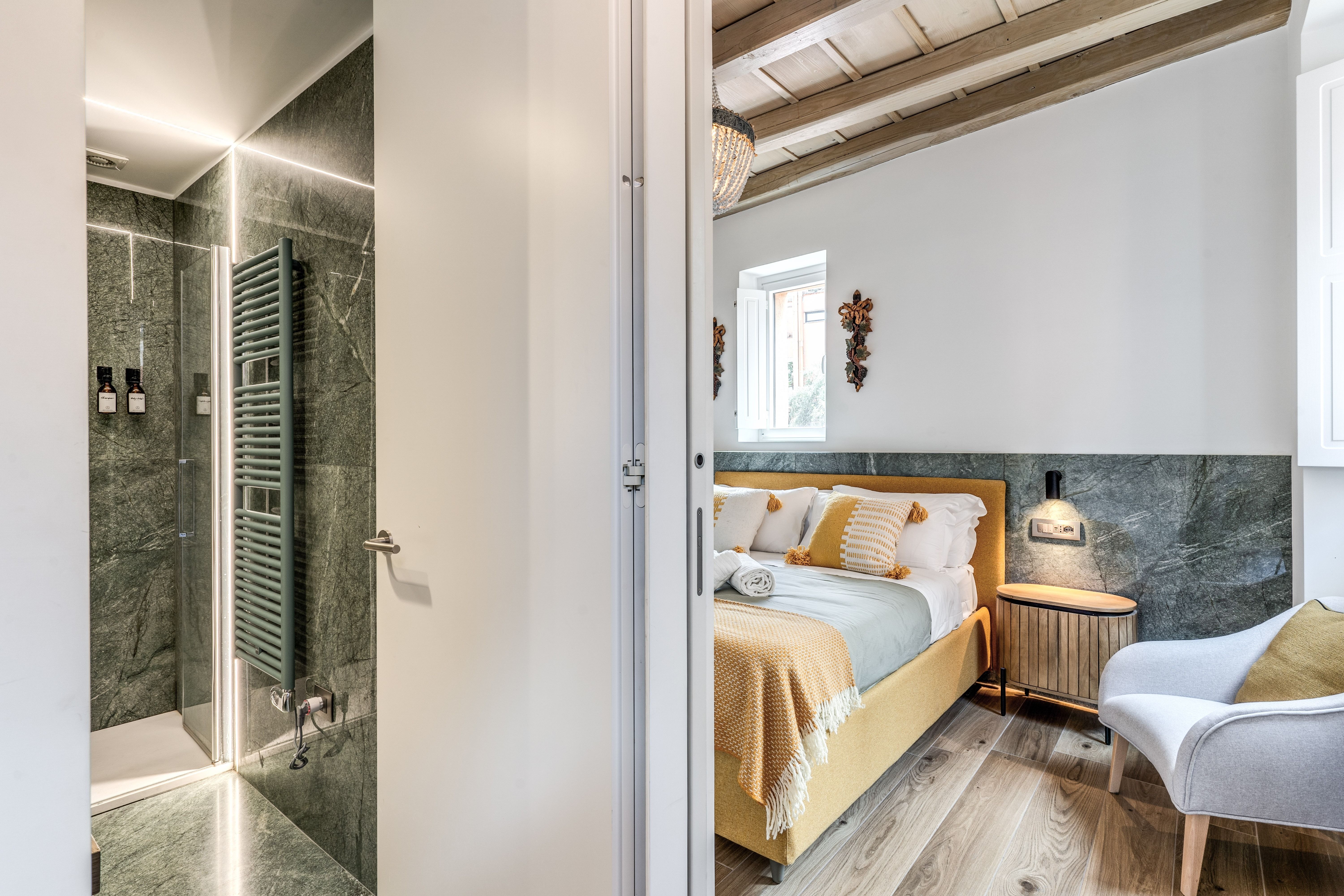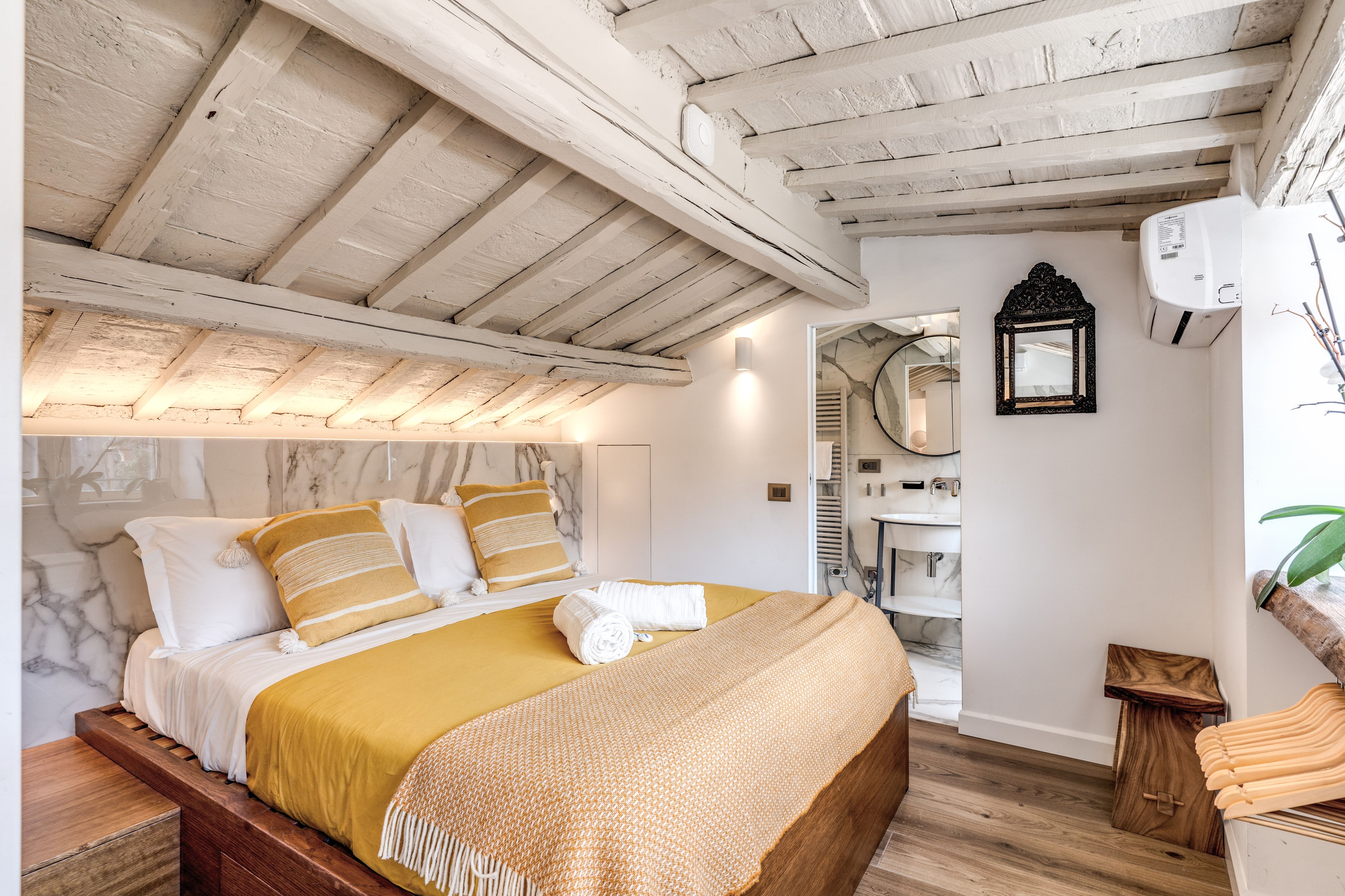 This contemporary Roman home feels like three homes in one – perfect for groups or families who like their own space. It's spread over four floors, with three modern kitchens and living areas. The top floor offers the most privacy, with an ensuite bathroom and dining room. It's also where you'll find the roof terrace, complete with a small dining table, seating for four and views of Trastevere rooftops. The central location is ideal for exploring – surrounded by authentic bars and restaurants – and Rome's most iconic sights, like the Colosseum or the Pantheon, are easy to reach on foot or by bus.