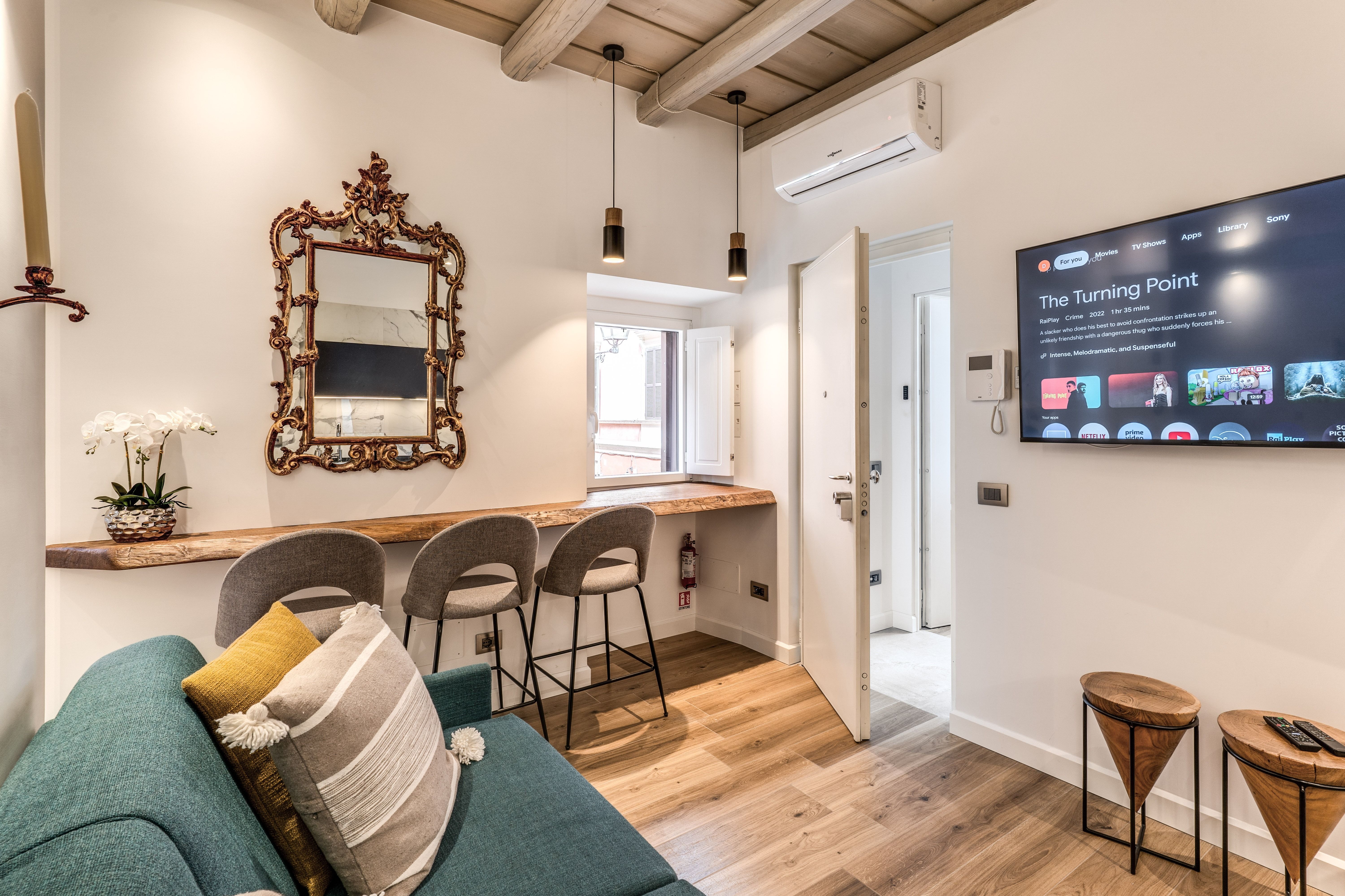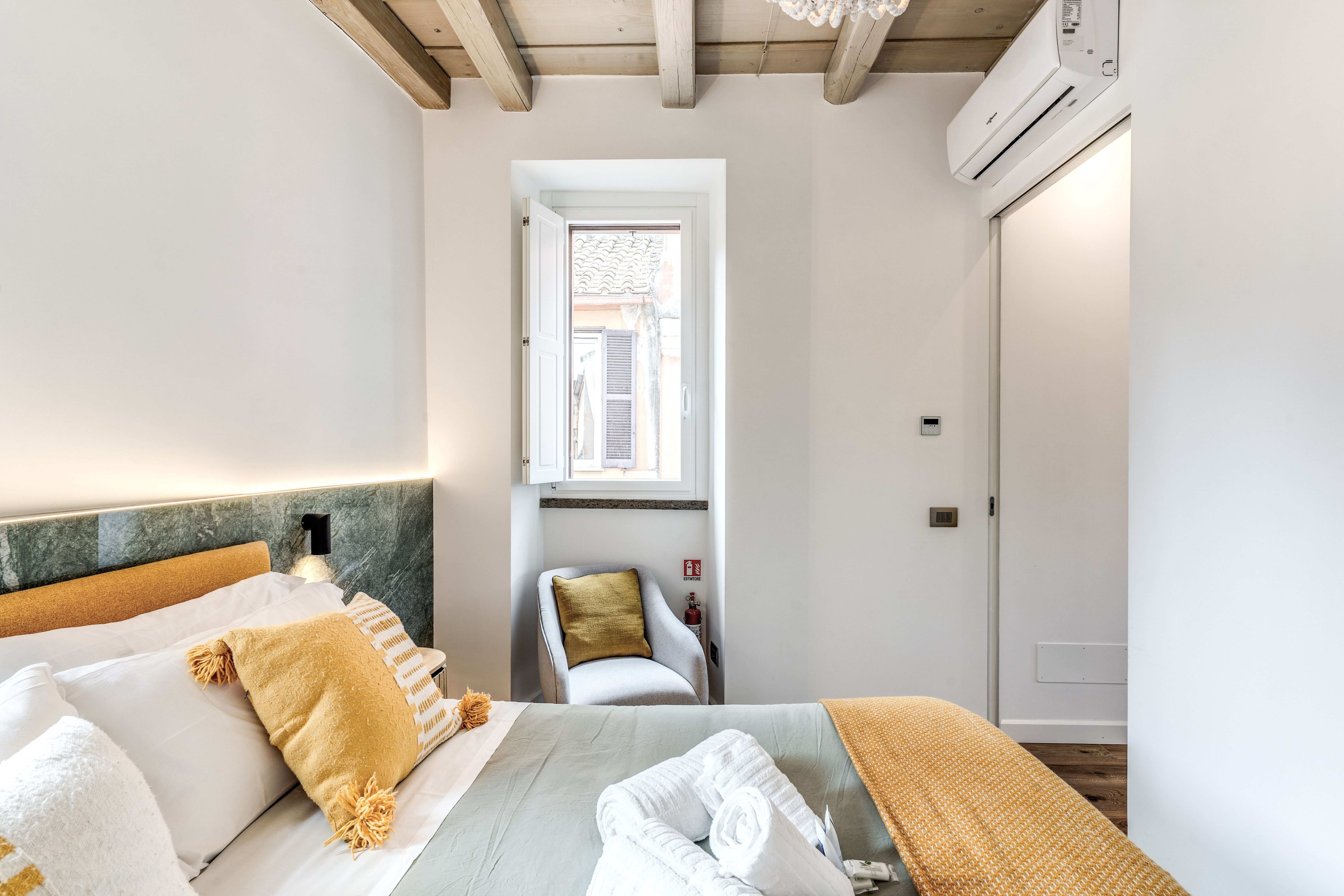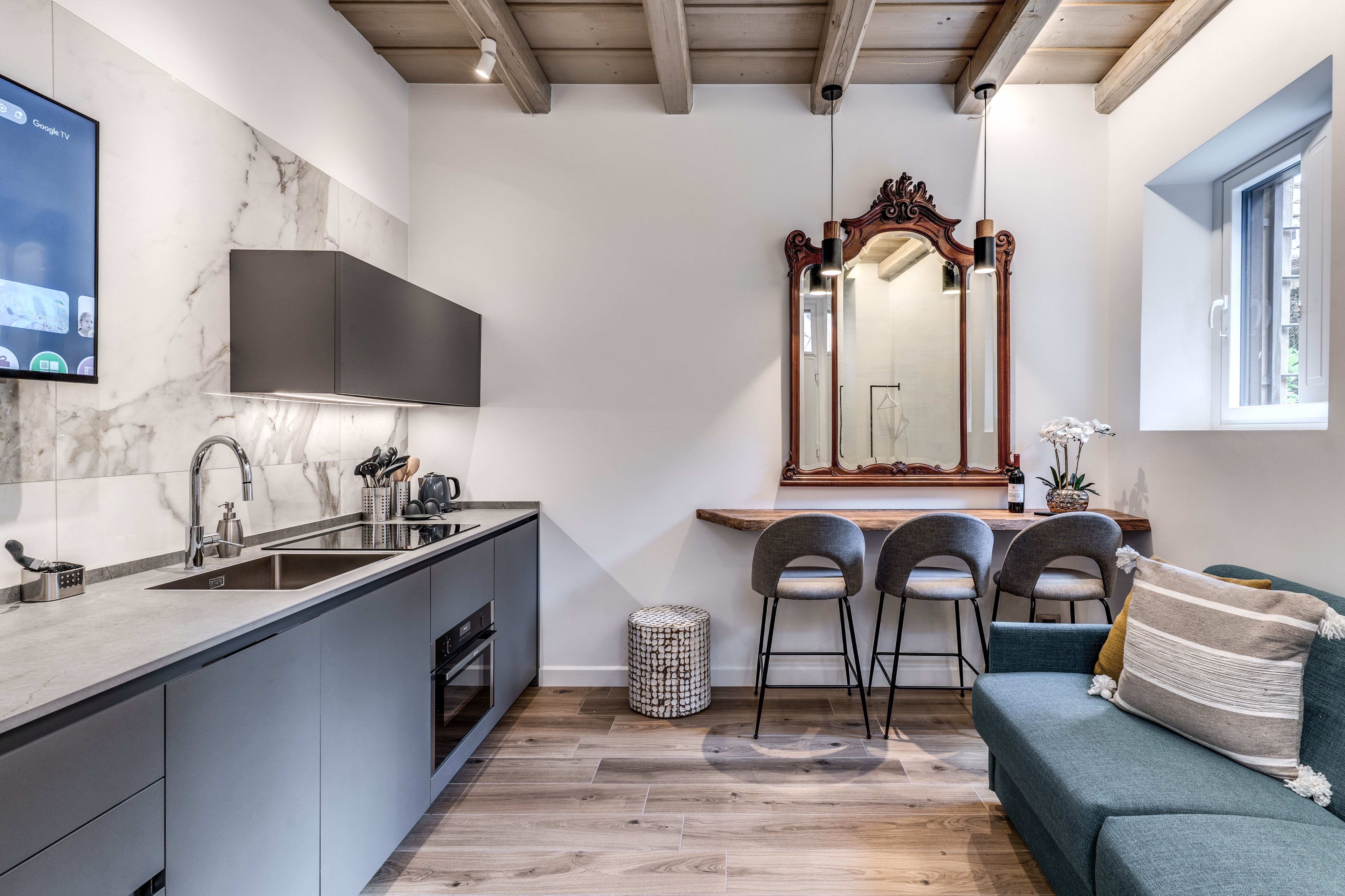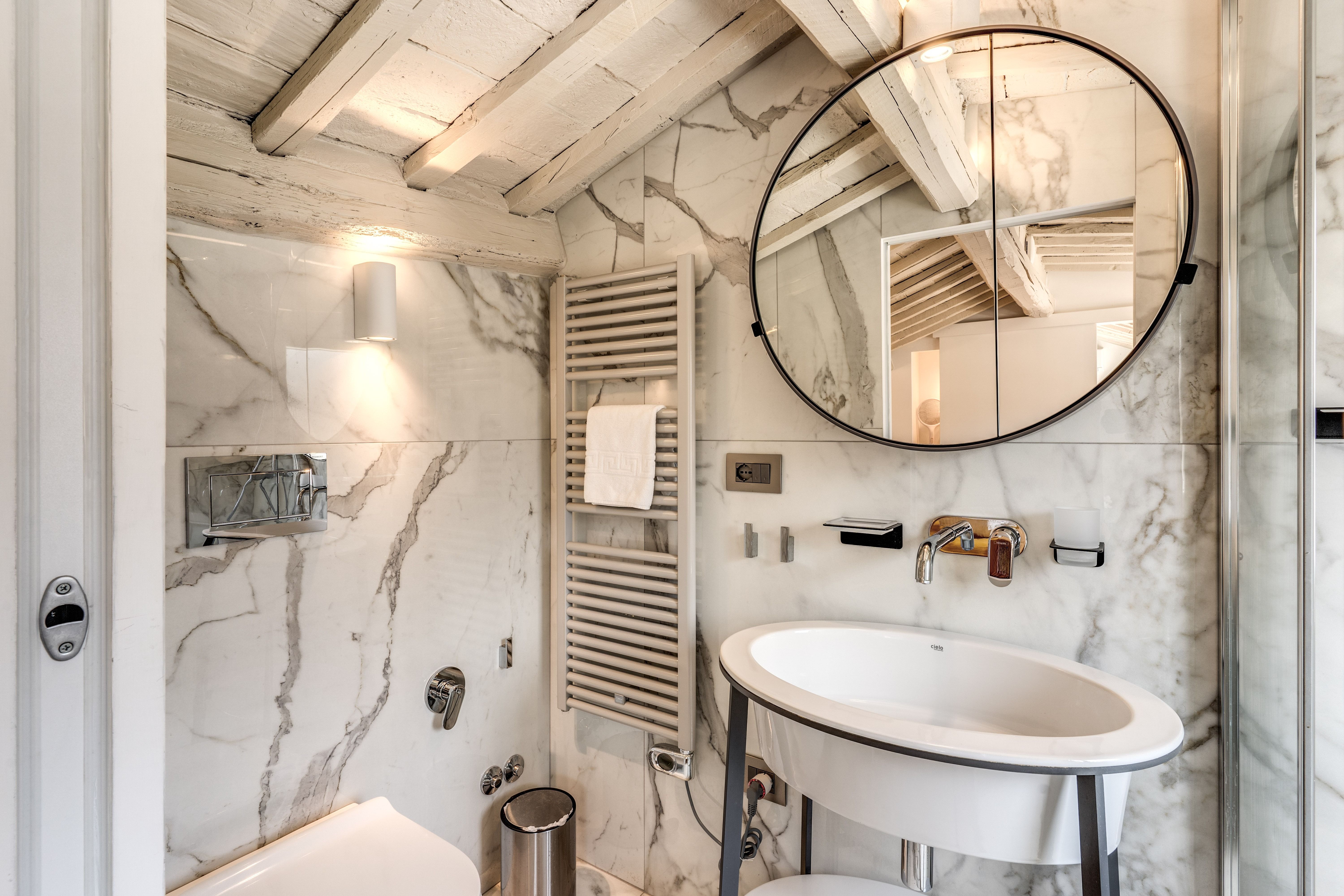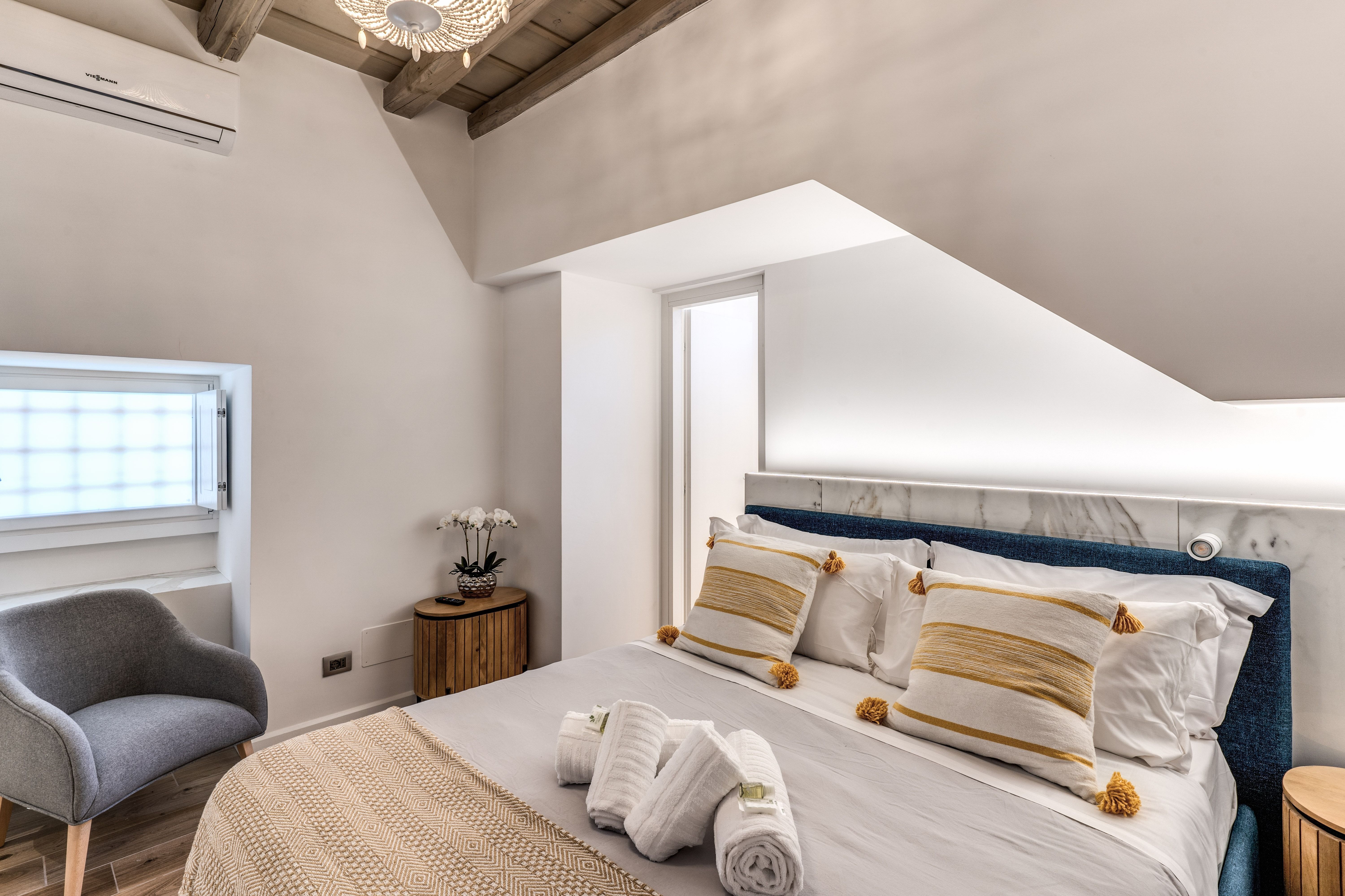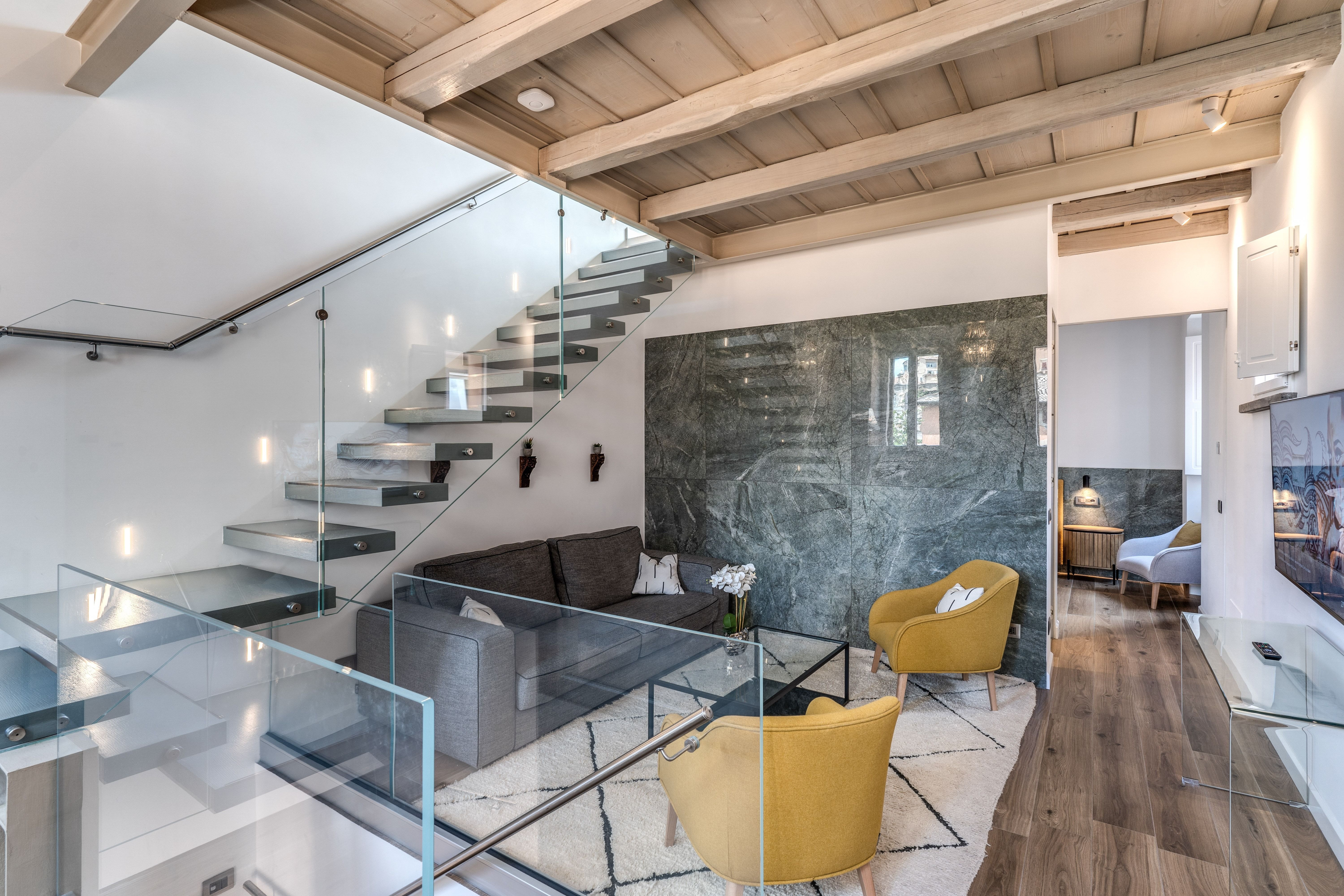 This contemporary Roman home feels like three homes in one – perfect for groups or families who like their own space. It's spread over four floors, with three modern kitchens and living areas. The top floor offers the most privacy, with an ensuite bathroom and dining room. It's also where you'll find the roof terrace, complete with a small dining table, seating for four and views of Trastevere rooftops. The central location is ideal for exploring – surrounded by authentic bars and restaurants – and Rome's most iconic sights, like the Colosseum or the Pantheon, are easy to reach on foot or by bus.