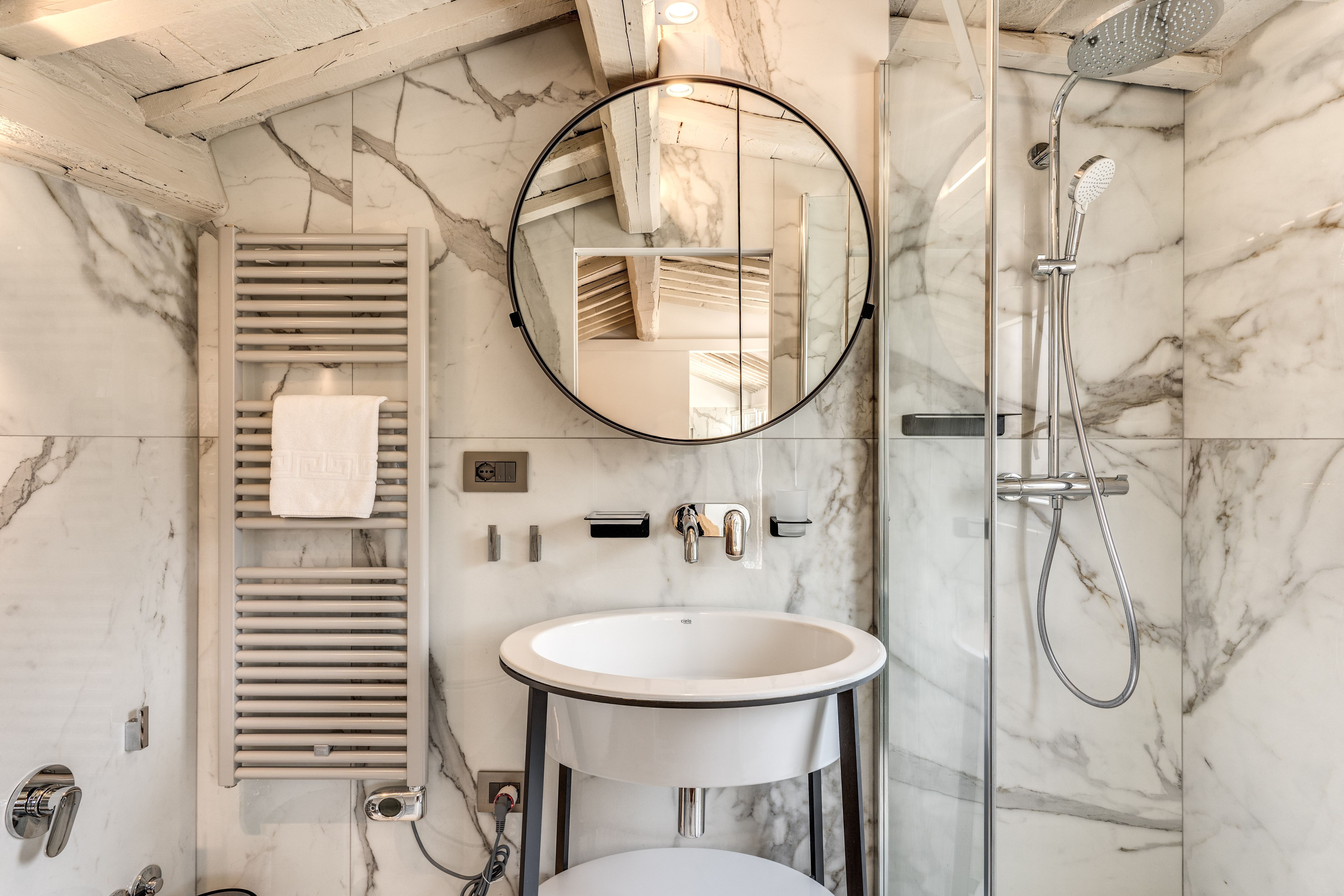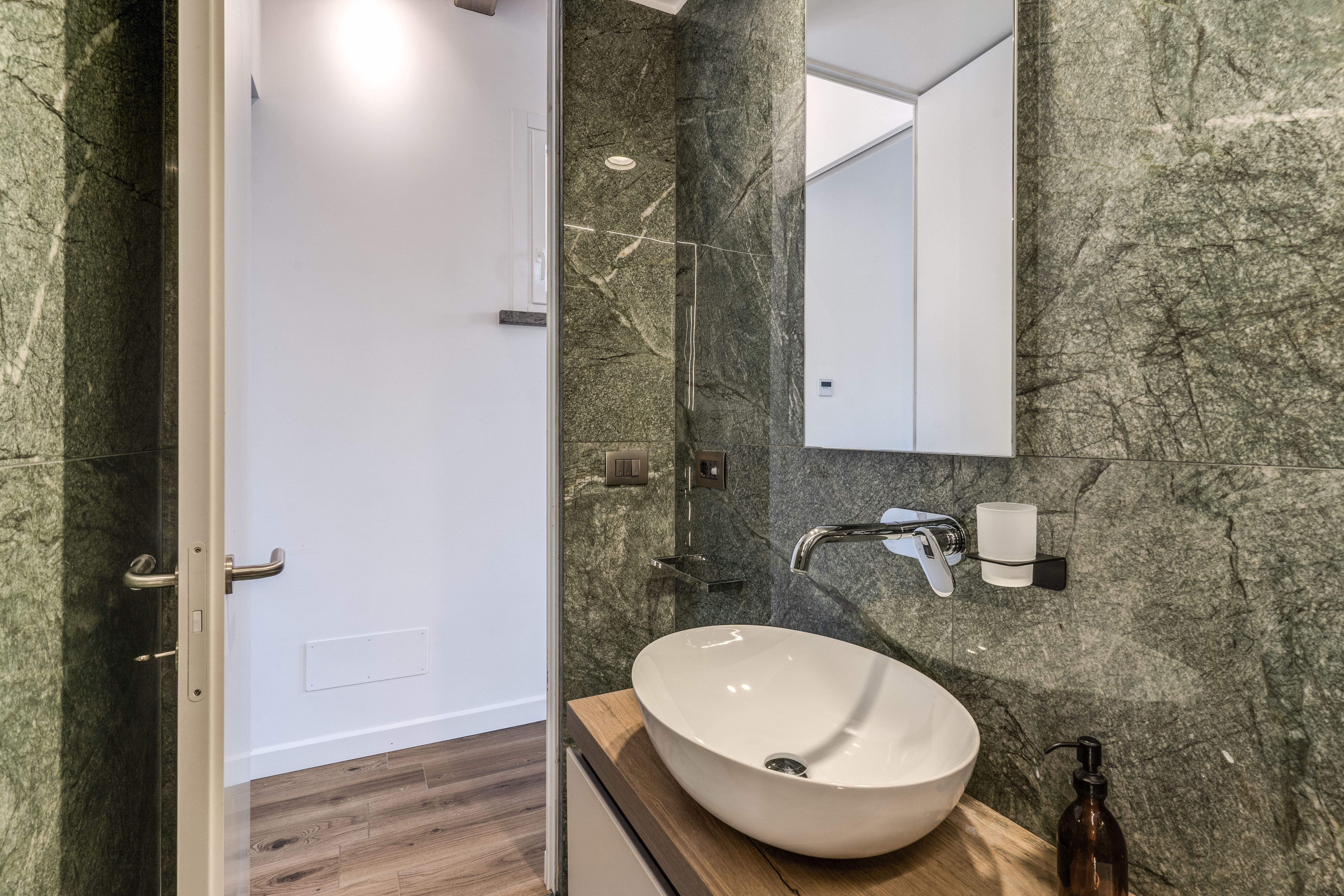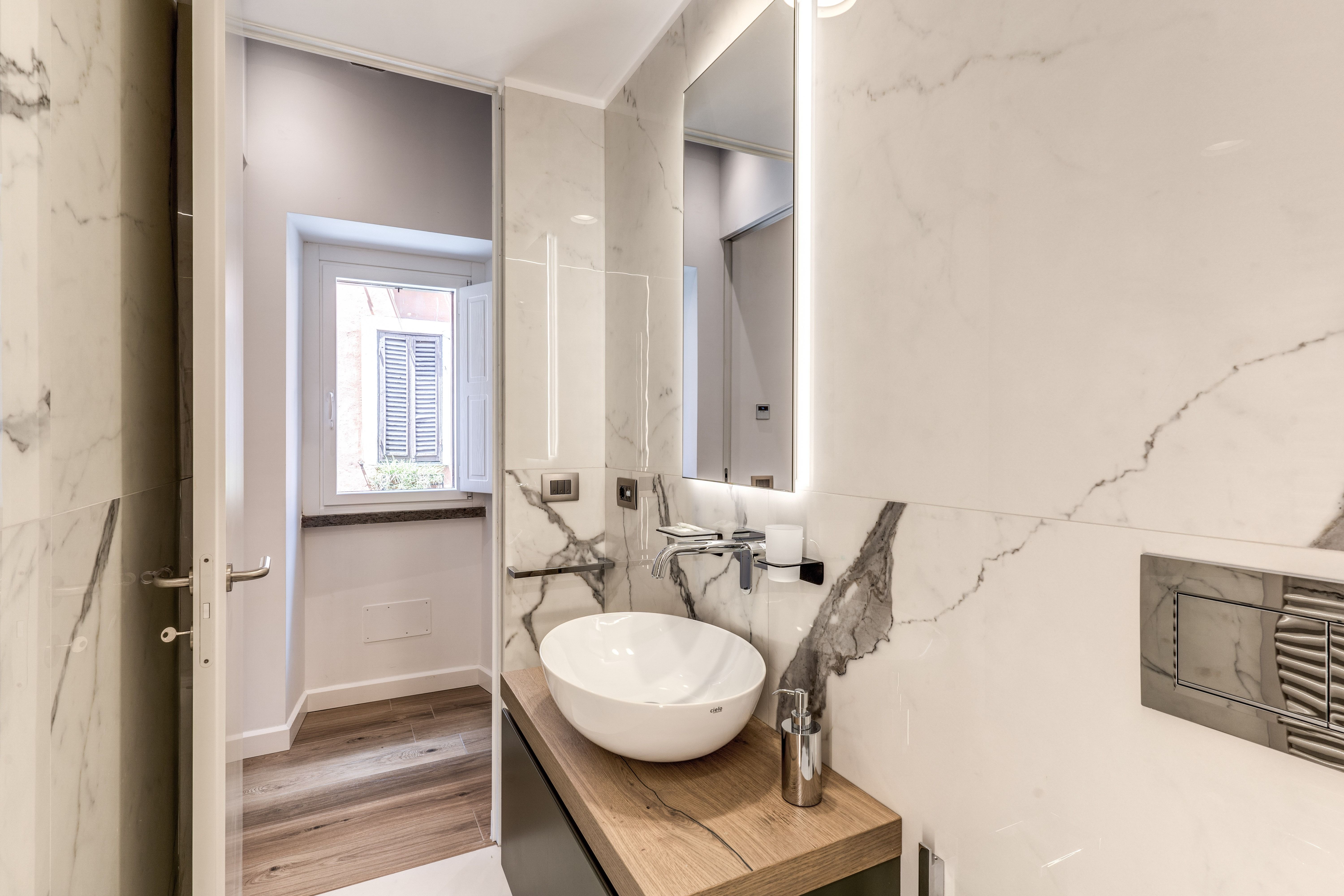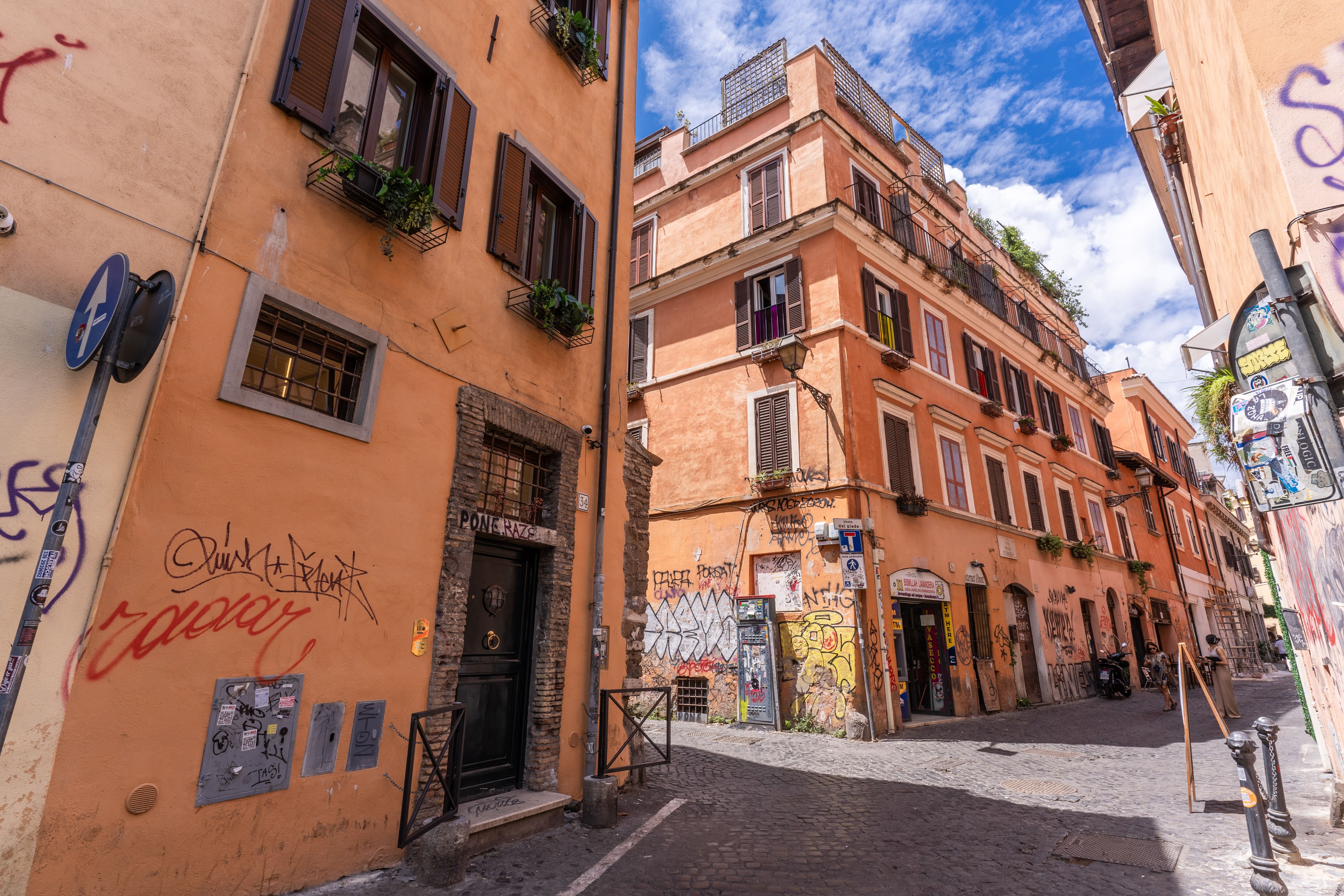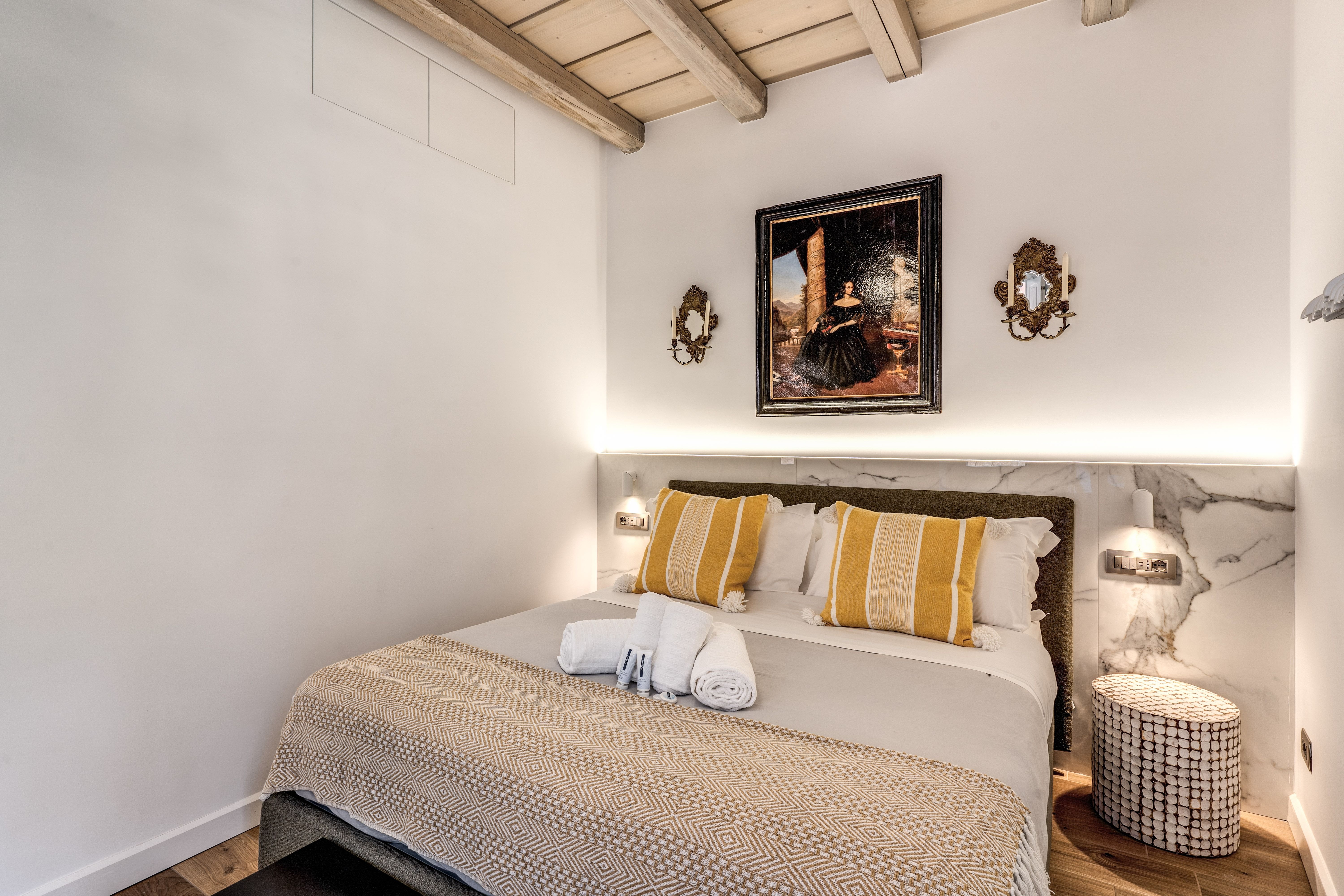 This contemporary Roman home feels like three homes in one – perfect for groups or families who like their own space. It's spread over four floors, with three modern kitchens and living areas. The top floor offers the most privacy, with an ensuite bathroom and dining room. It's also where you'll find the roof terrace, complete with a small dining table, seating for four and views of Trastevere rooftops. The central location is ideal for exploring – surrounded by authentic bars and restaurants – and Rome's most iconic sights, like the Colosseum or the Pantheon, are easy to reach on foot or by bus.