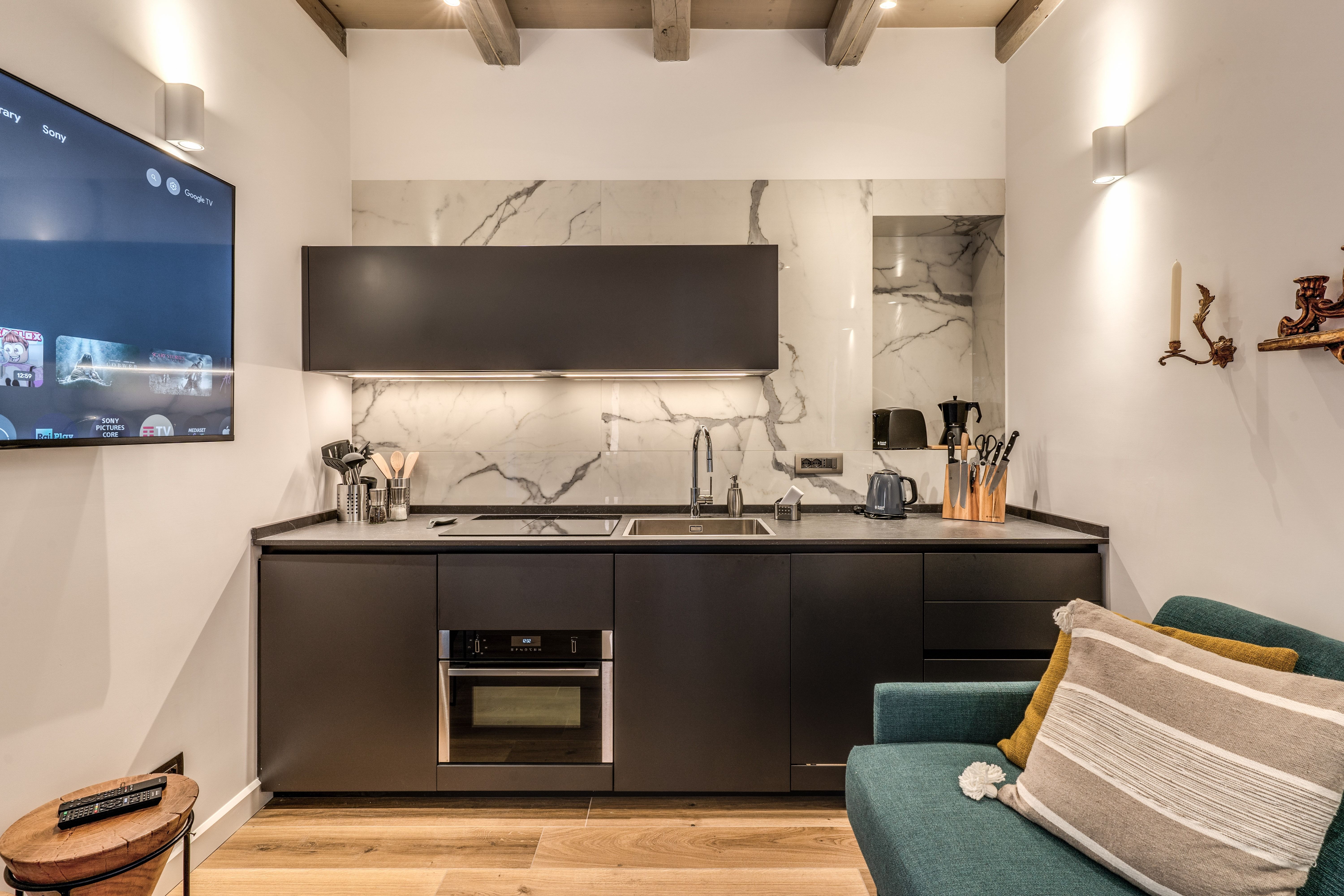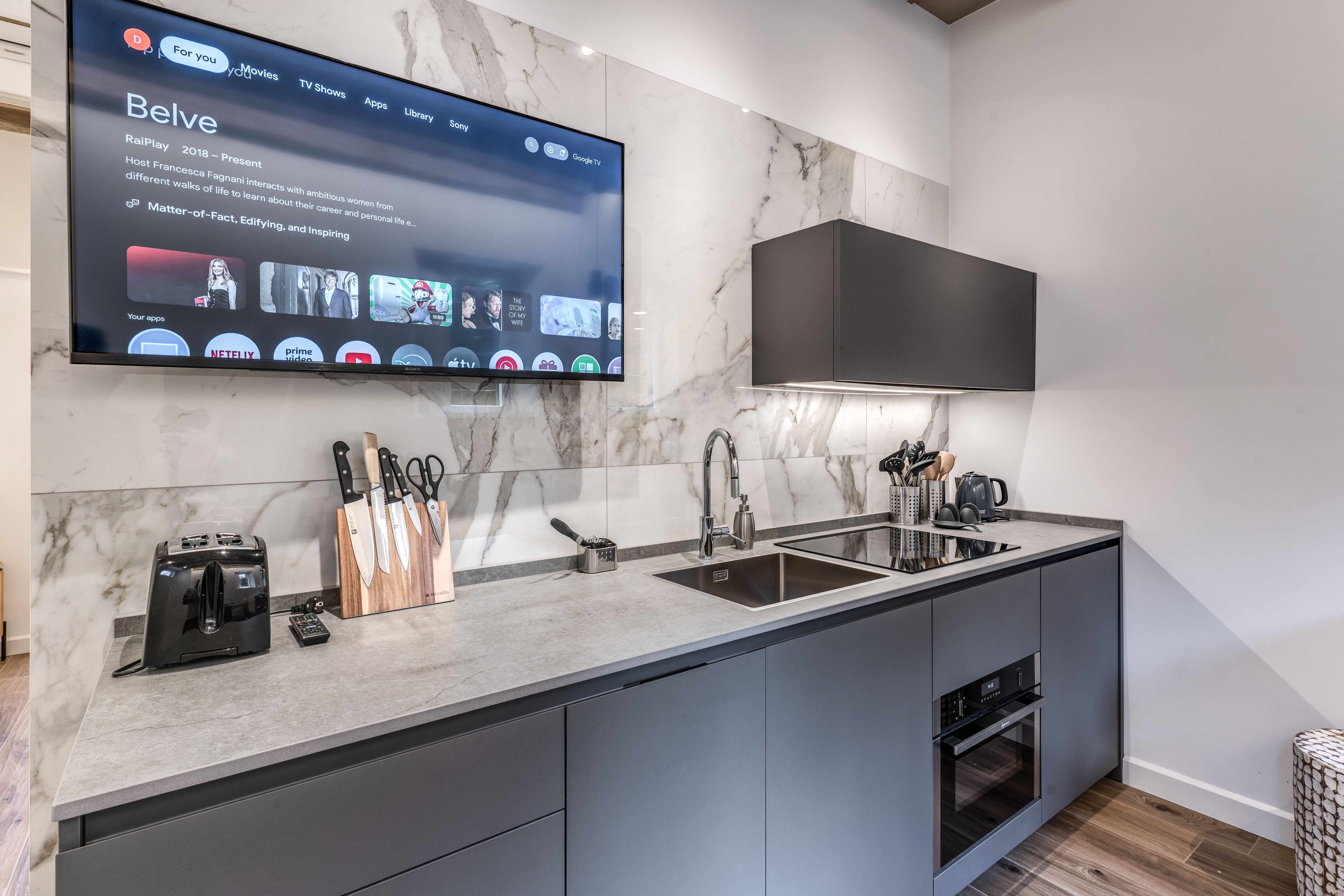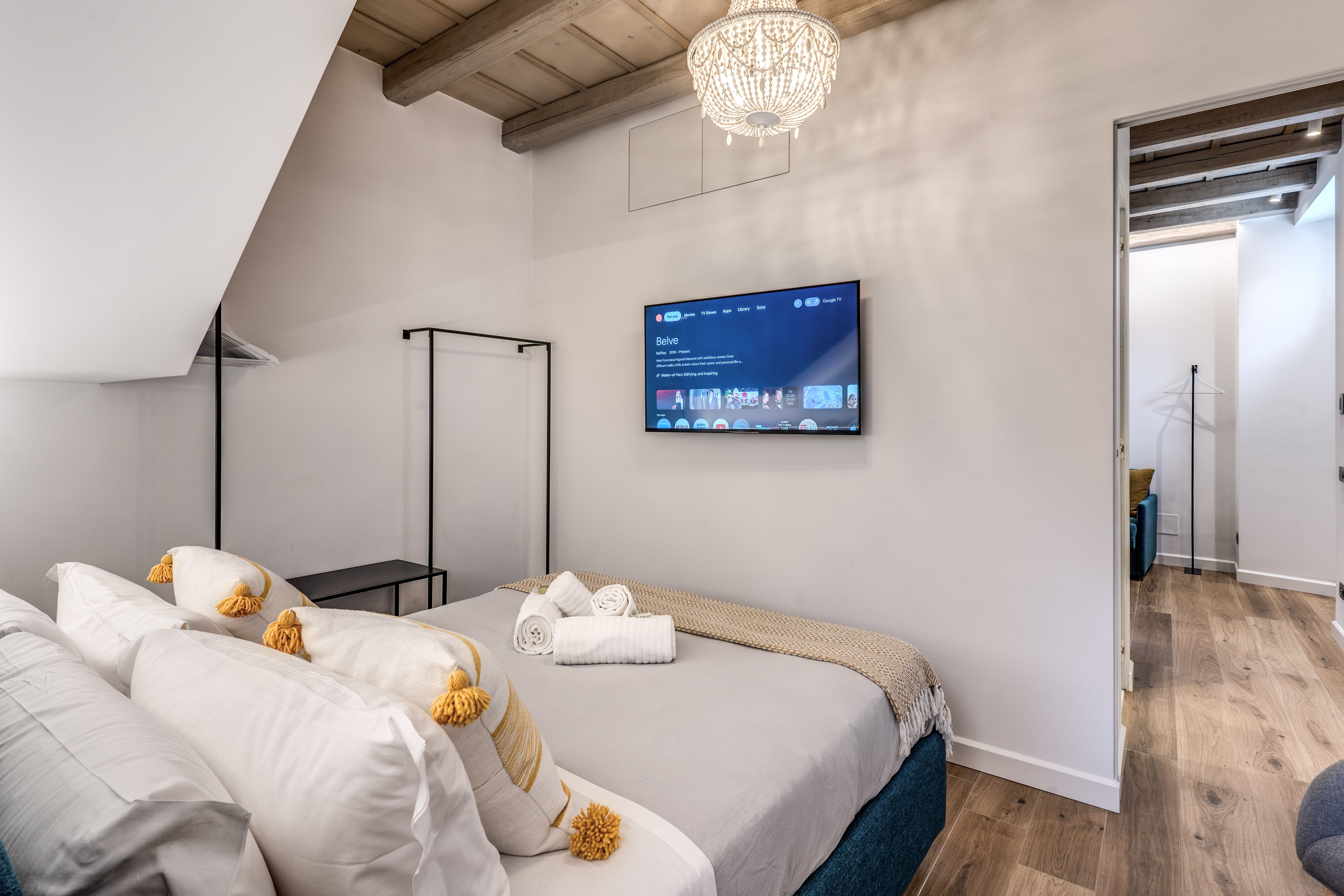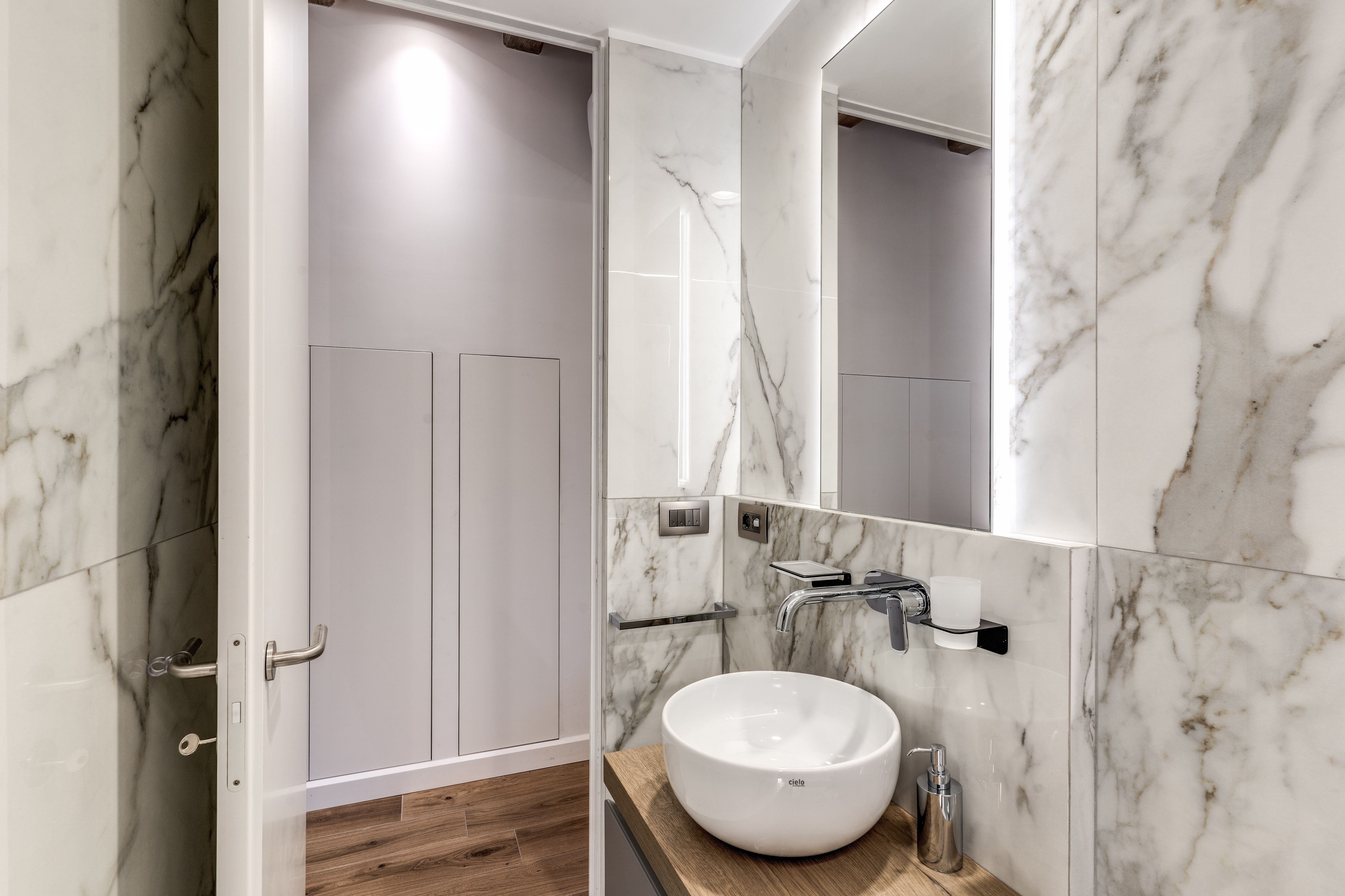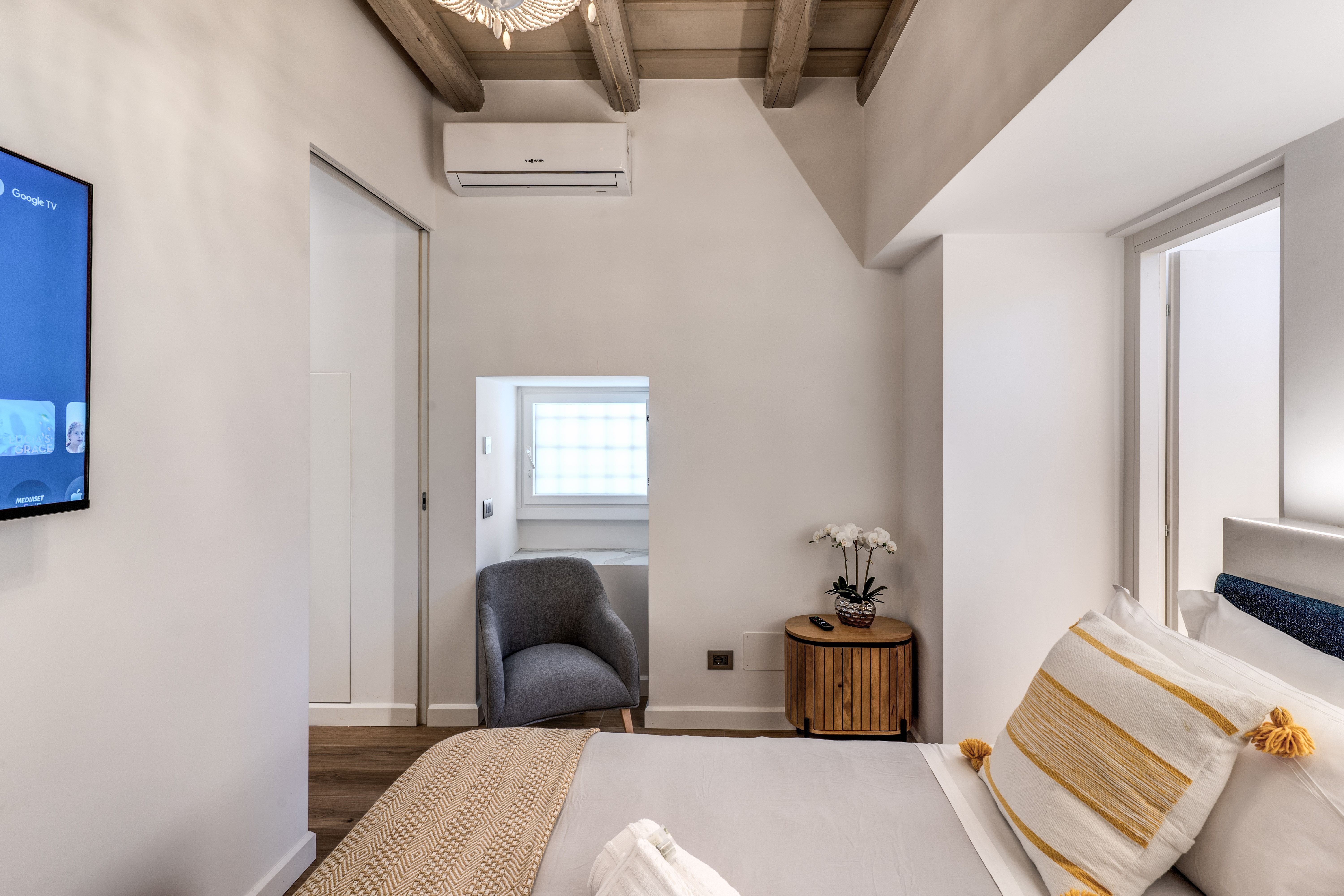 This contemporary Roman home feels like three homes in one – perfect for groups or families who like their own space. It's spread over four floors, with three modern kitchens and living areas. The top floor offers the most privacy, with an ensuite bathroom and dining room. It's also where you'll find the roof terrace, complete with a small dining table, seating for four and views of Trastevere rooftops. The central location is ideal for exploring – surrounded by authentic bars and restaurants – and Rome's most iconic sights, like the Colosseum or the Pantheon, are easy to reach on foot or by bus.