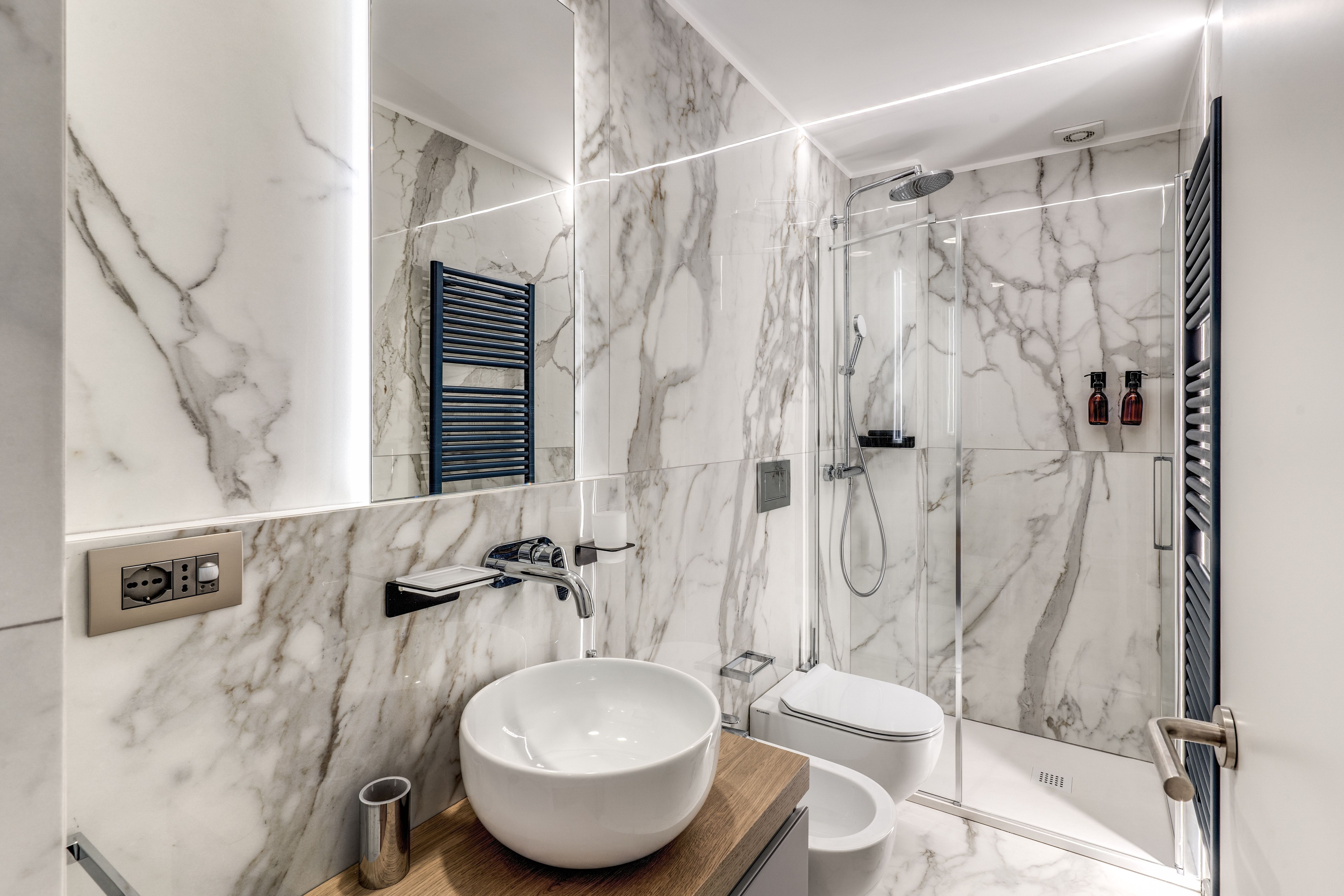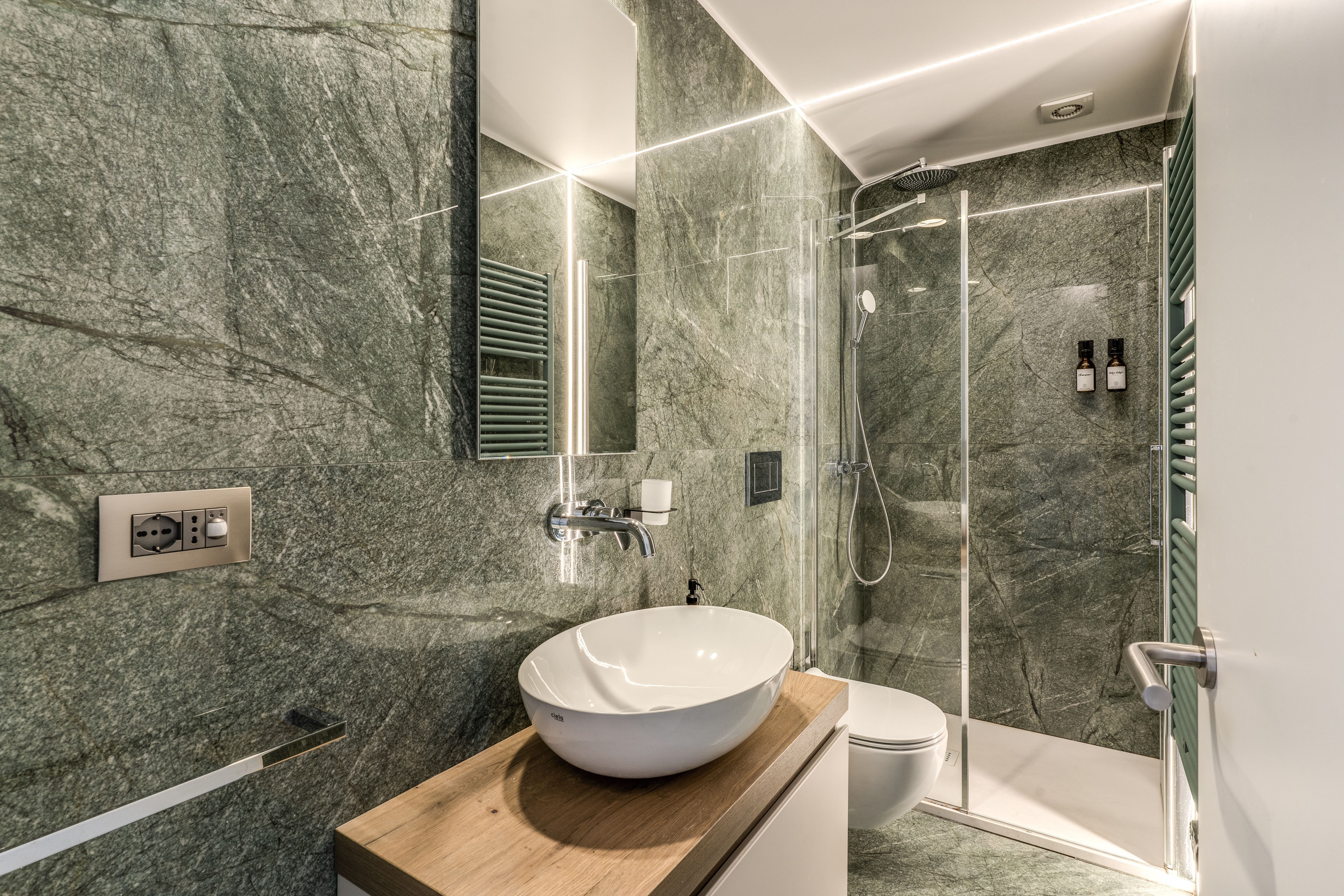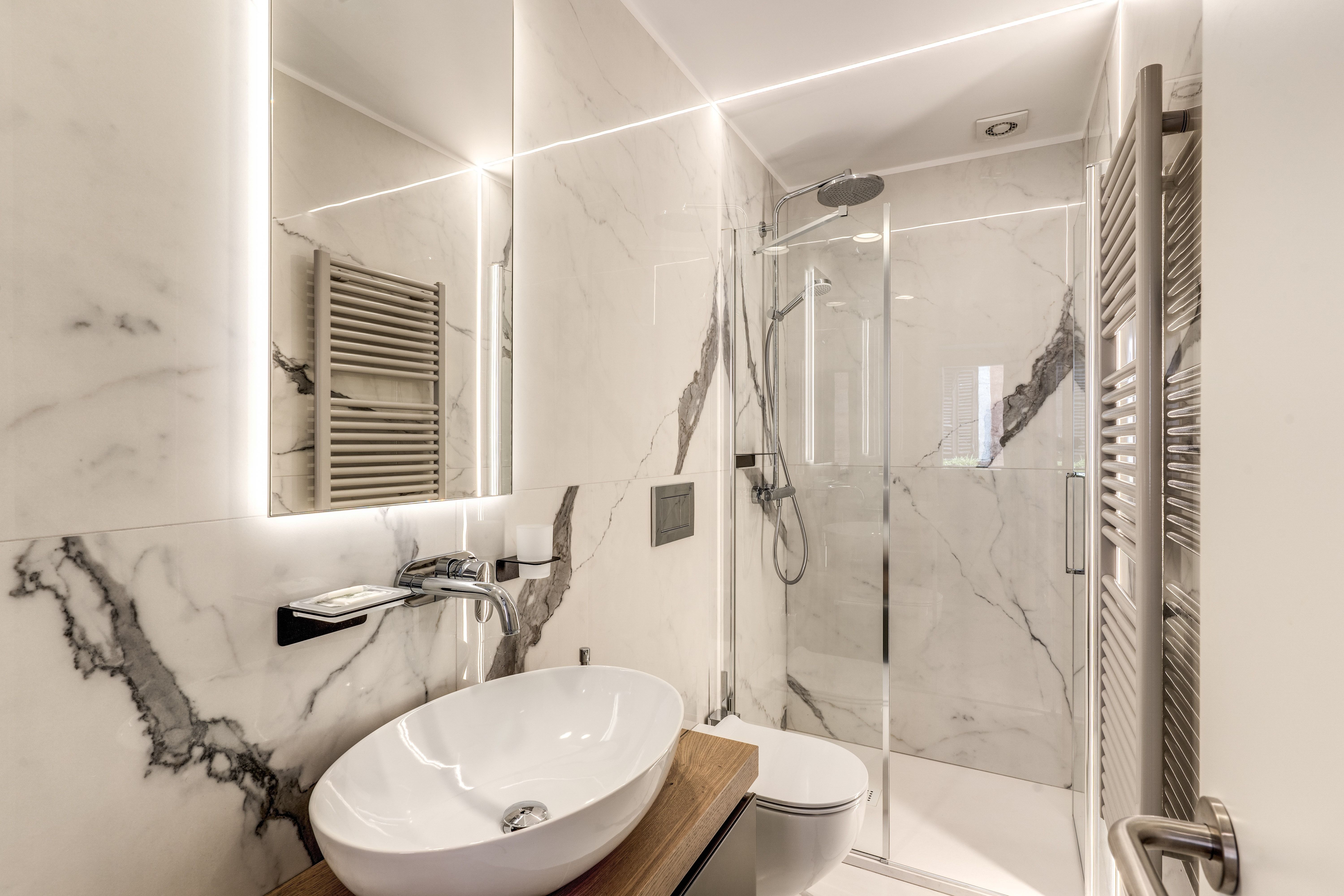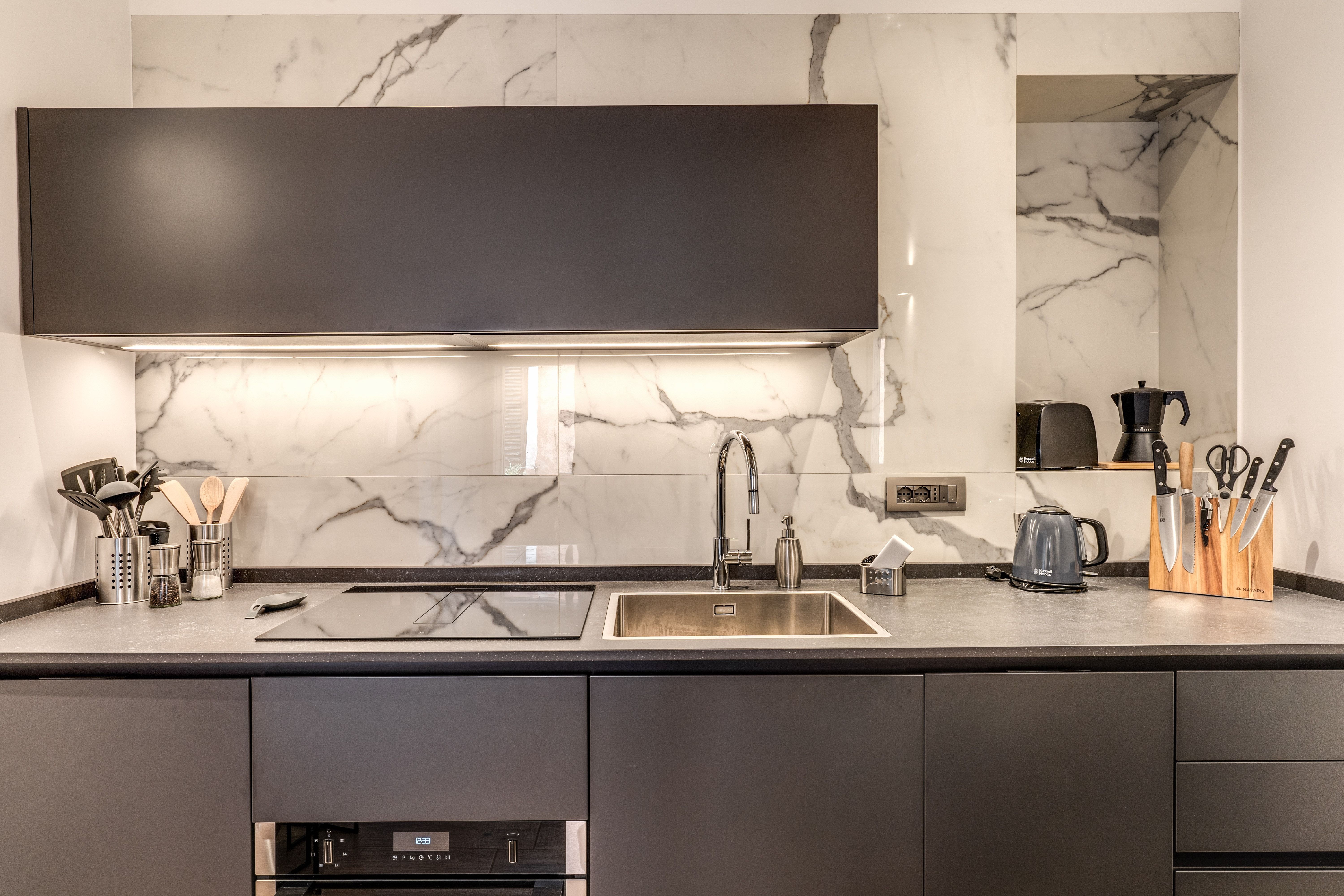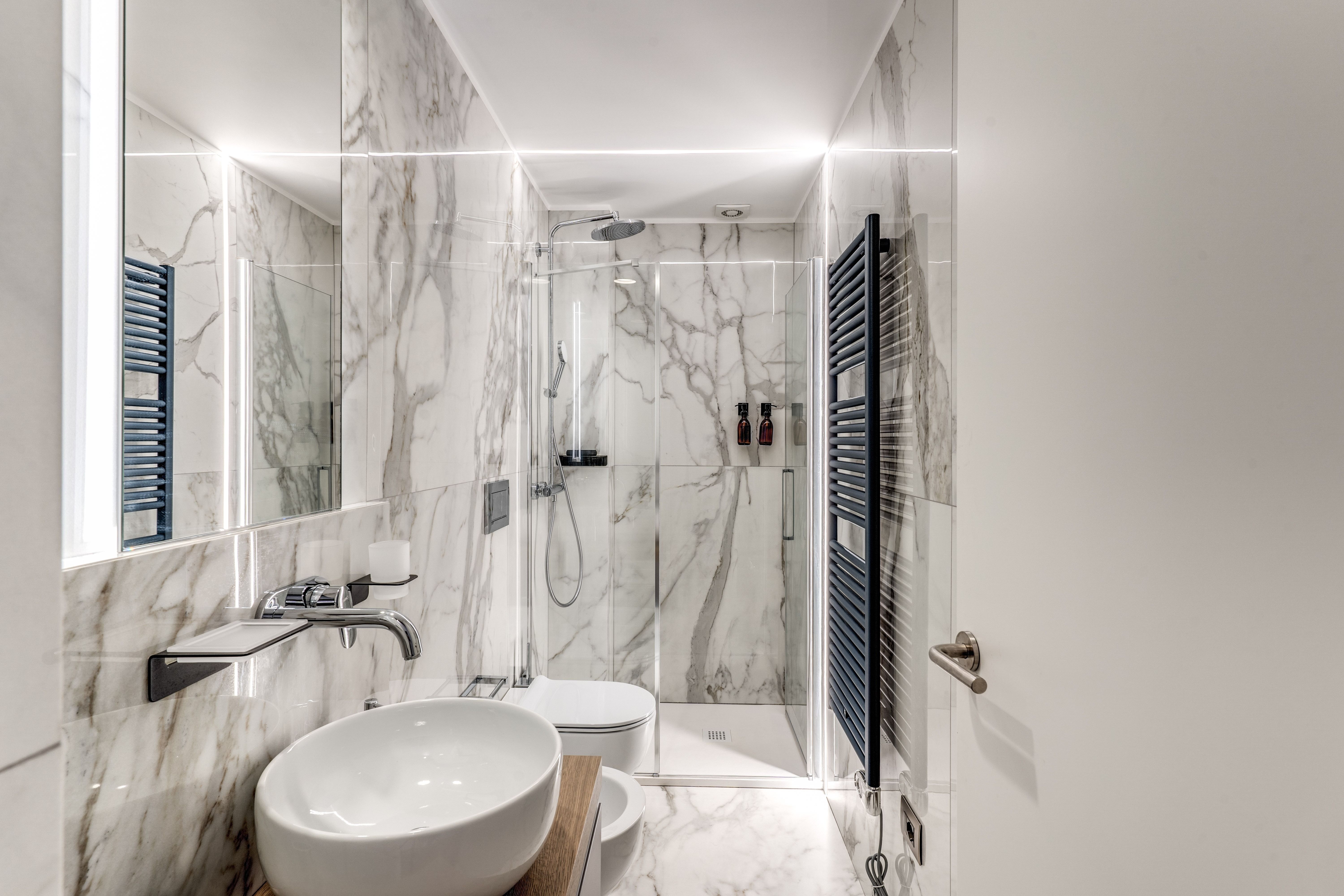 This contemporary Roman home feels like three homes in one – perfect for groups or families who like their own space. It's spread over four floors, with three modern kitchens and living areas. The top floor offers the most privacy, with an ensuite bathroom and dining room. It's also where you'll find the roof terrace, complete with a small dining table, seating for four and views of Trastevere rooftops. The central location is ideal for exploring – surrounded by authentic bars and restaurants – and Rome's most iconic sights, like the Colosseum or the Pantheon, are easy to reach on foot or by bus.