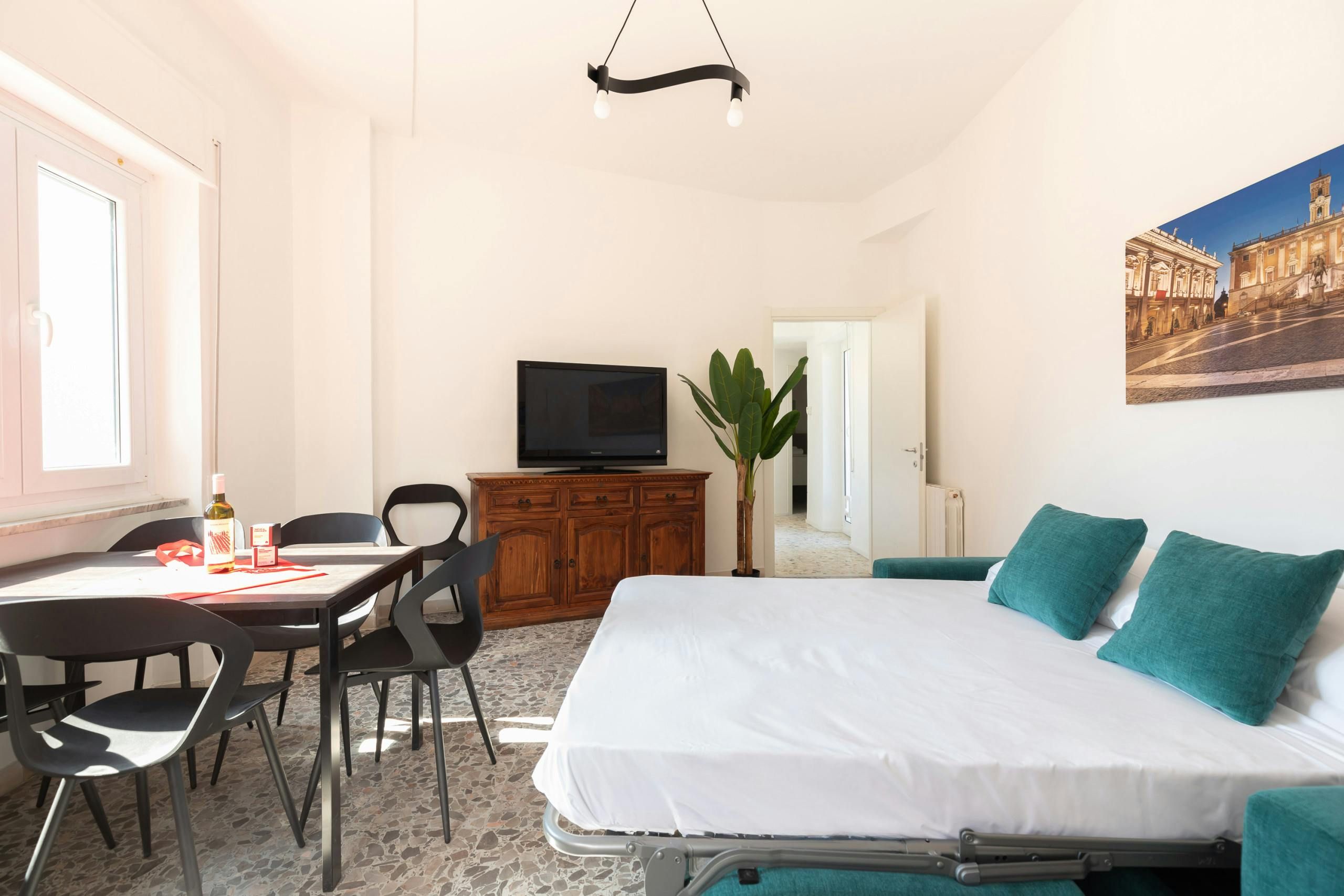 The interiors of this apartment may not be memorable, but the views certainly are. St Peter's Basilica appears on the horizon from your private balcony, and it's just a twenty-minute walk to see it up close. In fact, the outdoor space might be the best thing about this practical apartment – the sunny terrace has a small dining table, where you can enjoy meals with a sunset view of the Vatican. The location is also handy for exploring nearby destinations – San Pietro station is just down the road, where you can catch trains to Civitavecchia and even Florence. On this side of Rome, you're also off the tourist trail, so you can experience restaurants and cafes as the locals do.