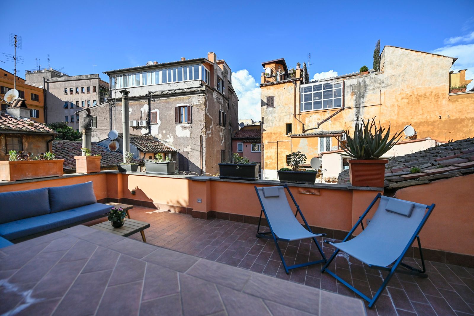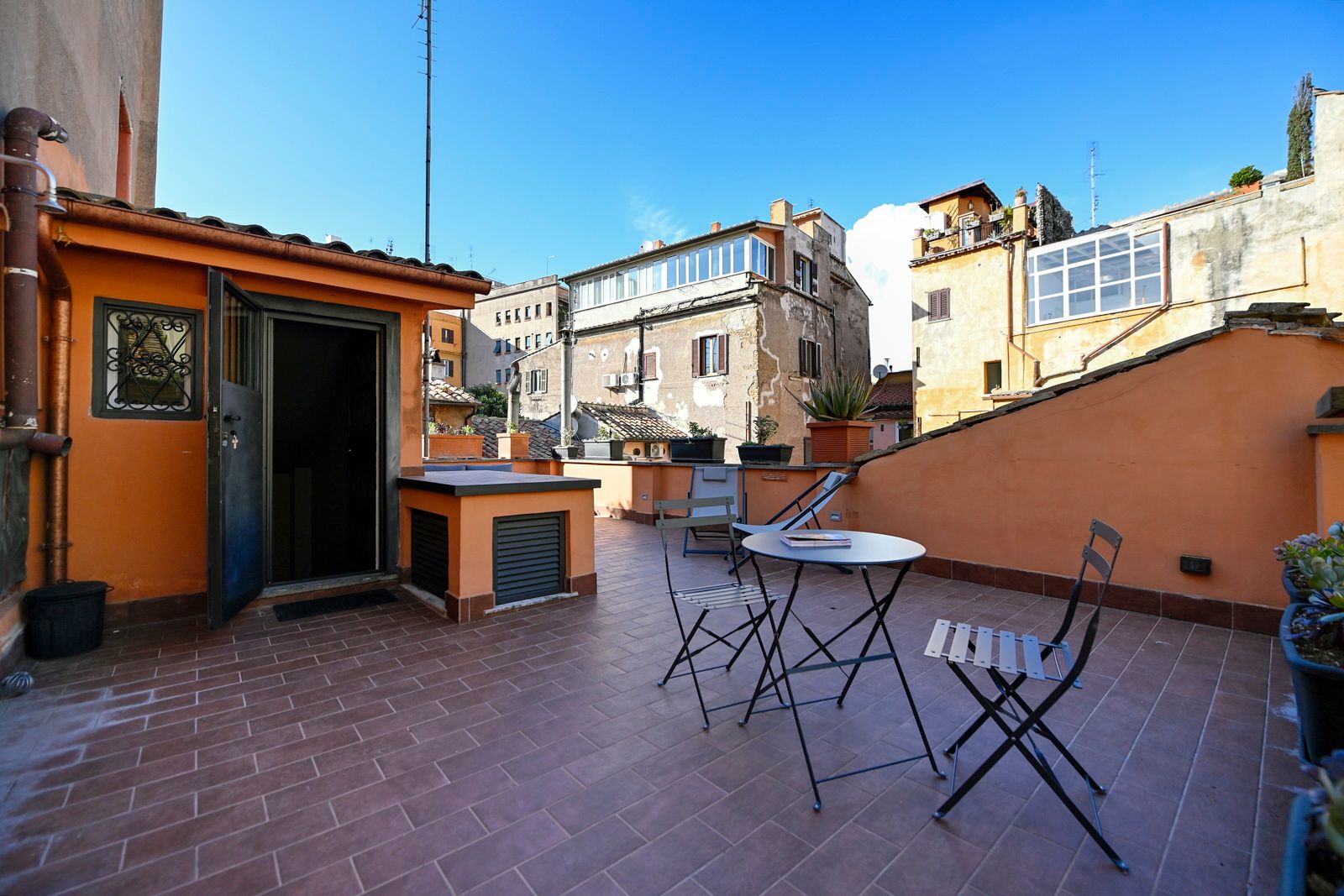 This charming detached home is in a prime location for a relaxed Roman retreat. Surrounded by authentic eateries in the Trastevere district, it's within walking distance to the capital's top attractions like the Colosseum and the Pantheon. The home comes with plenty of private outdoor spaces – a rarity for such a central location – including balconies with each room, a roof terrace, and a garden. There's even an outdoor shower for those who can brave the cold water. Spread over three floors with several dining areas, this is a great spot for families or small groups exploring Rome.