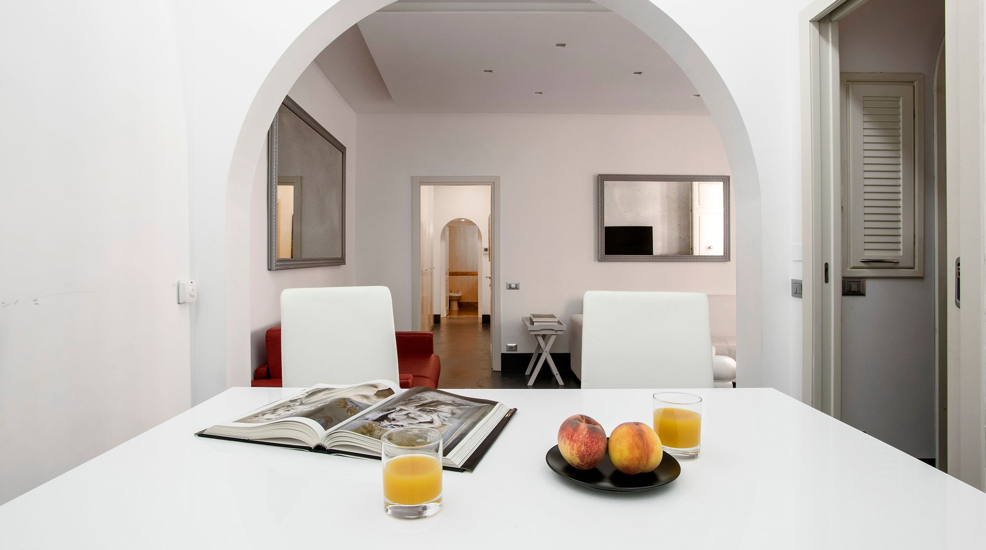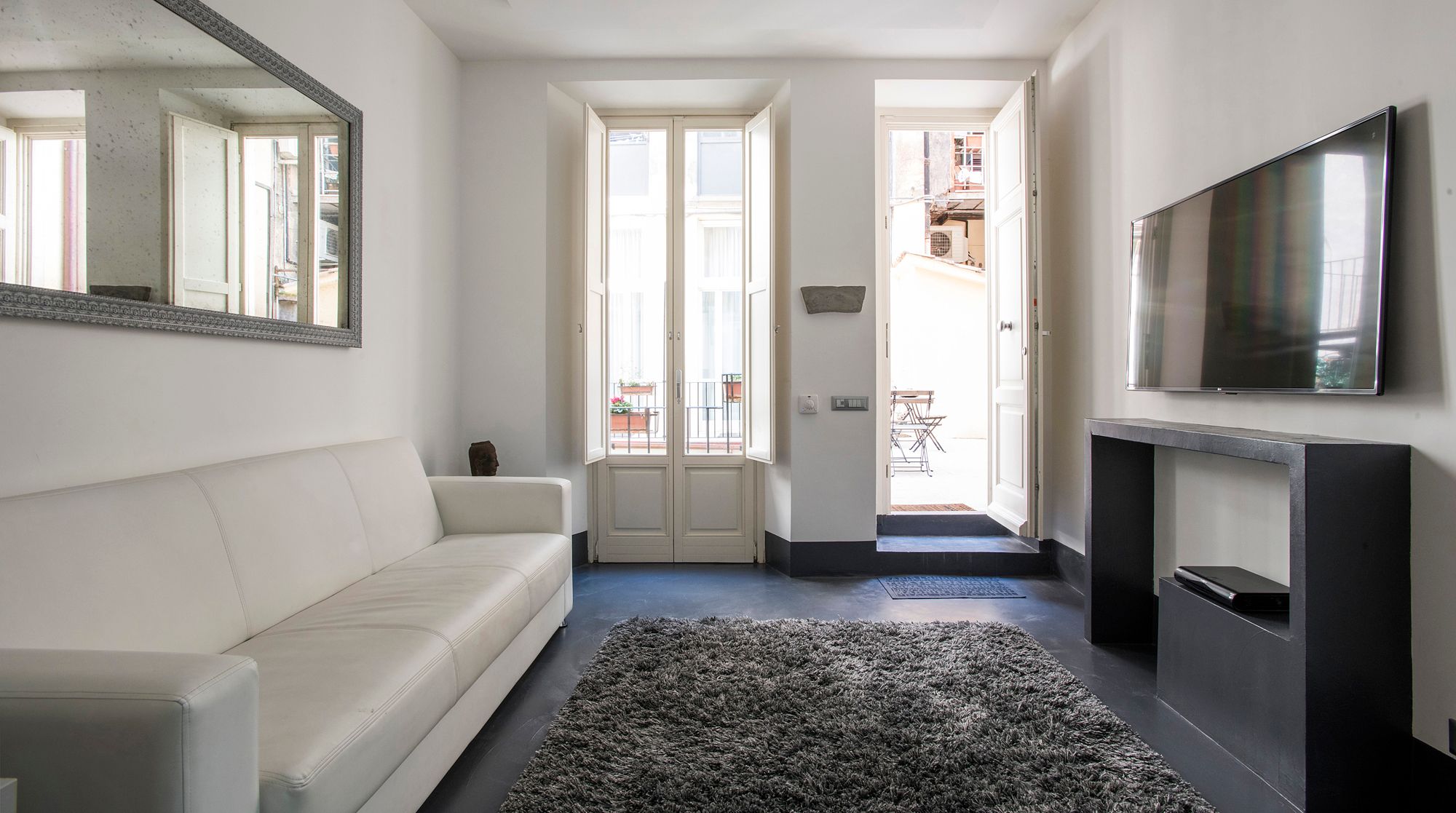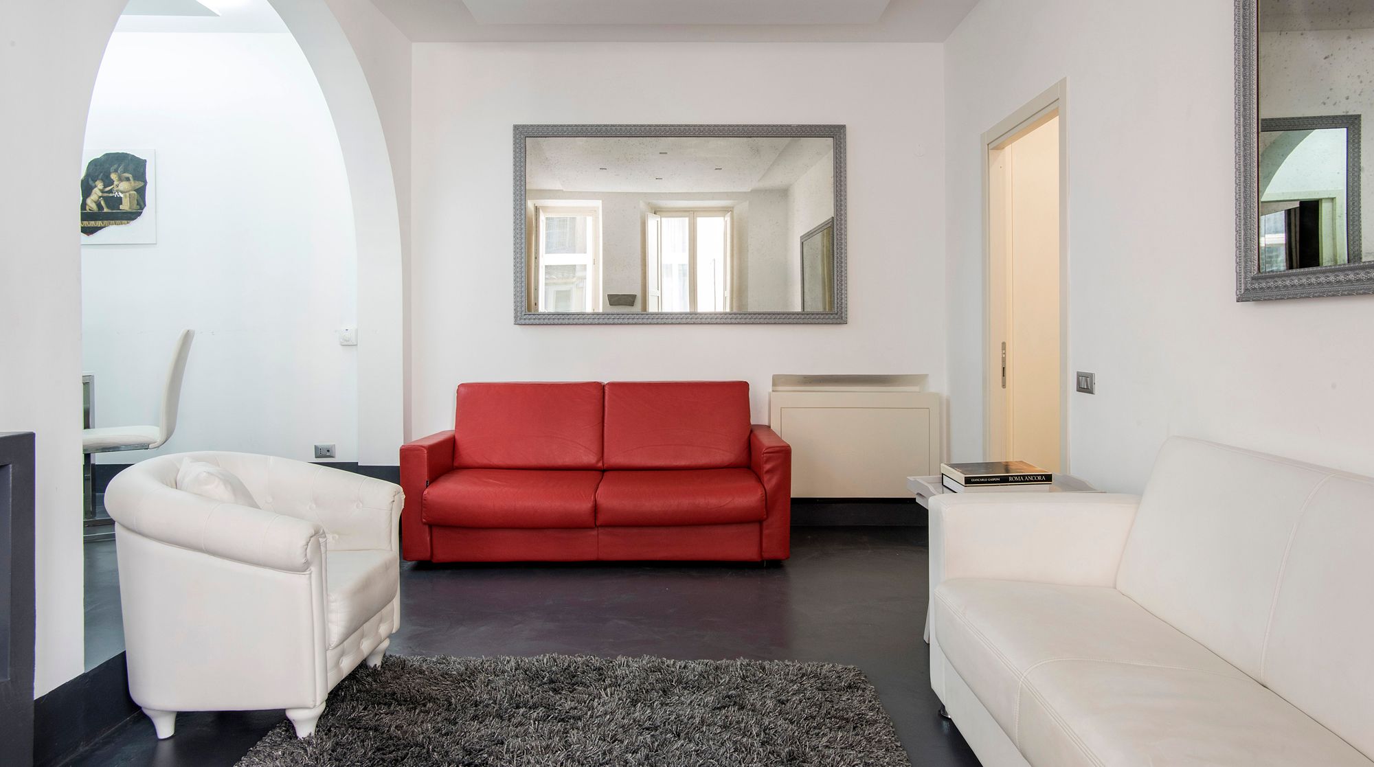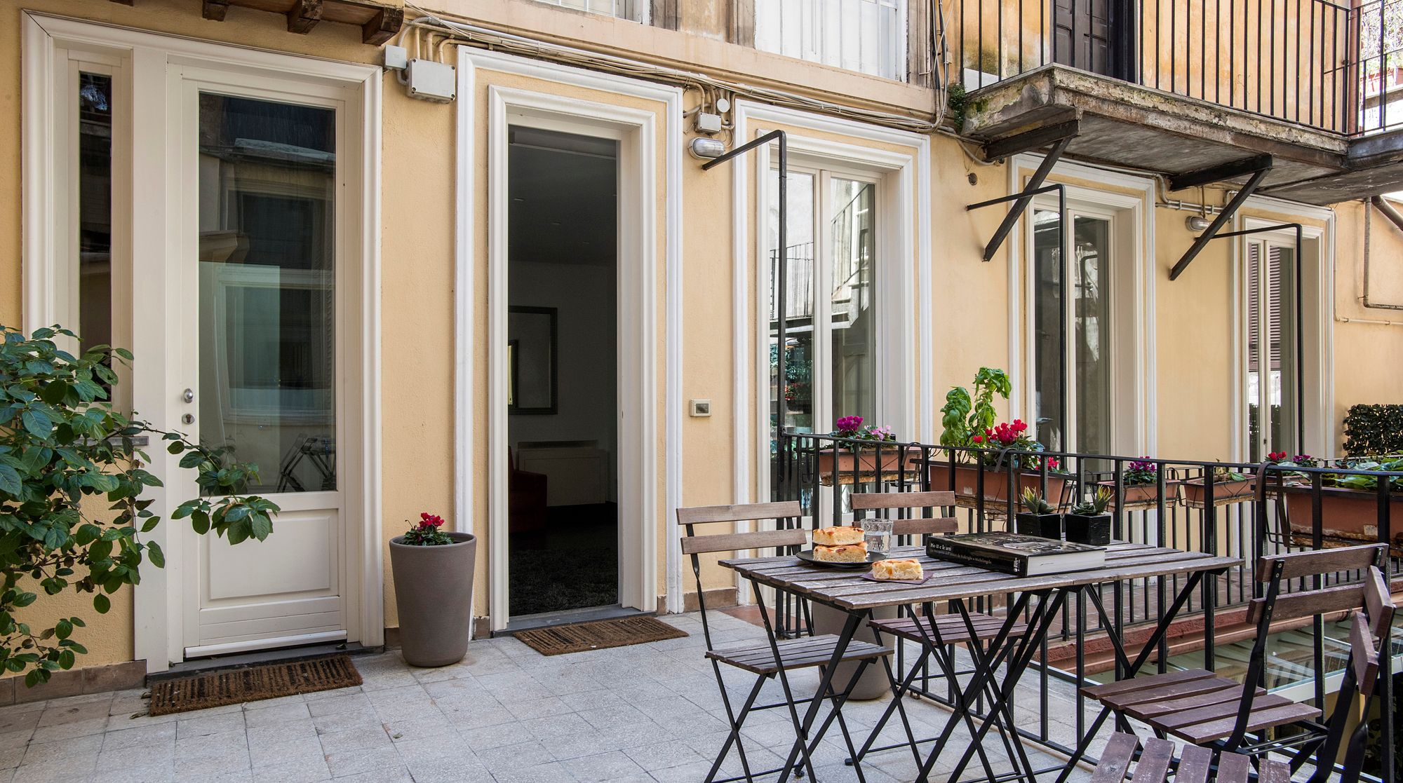 Modern and minimalist, this Art Deco-inspired apartment is a well-designed pocket of calm in the heart of Rome. Just a seven-minute walk to Trevi Fountain and the famous Spanish Steps – you really couldn't be better placed in the Eternal City. A wander around the immediate neighbourhood will take you to designer shops and hidden wine bars for a glass of Barolo. In a quiet courtyard that's away from the bustling tourists, there's a local and authentic feel to the home while still being close to the city's most beloved attractions. Back inside, you'll find a fresh and functional space benefitting from plush leather sofas and a stylish white dining area with tasteful artwork adorning the walls. But the real draw of this home is the shaded terrace – complete with an elegant dining area. We can think of no better way to start the day than with a basket of pastries and your morning coffee out here.