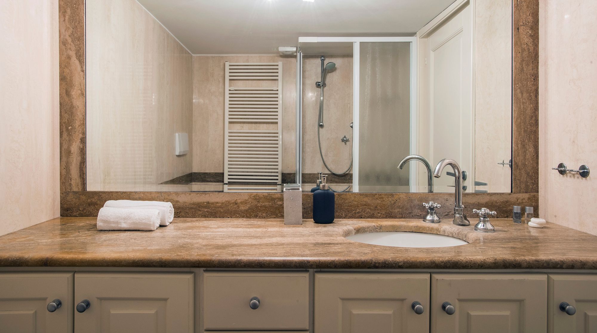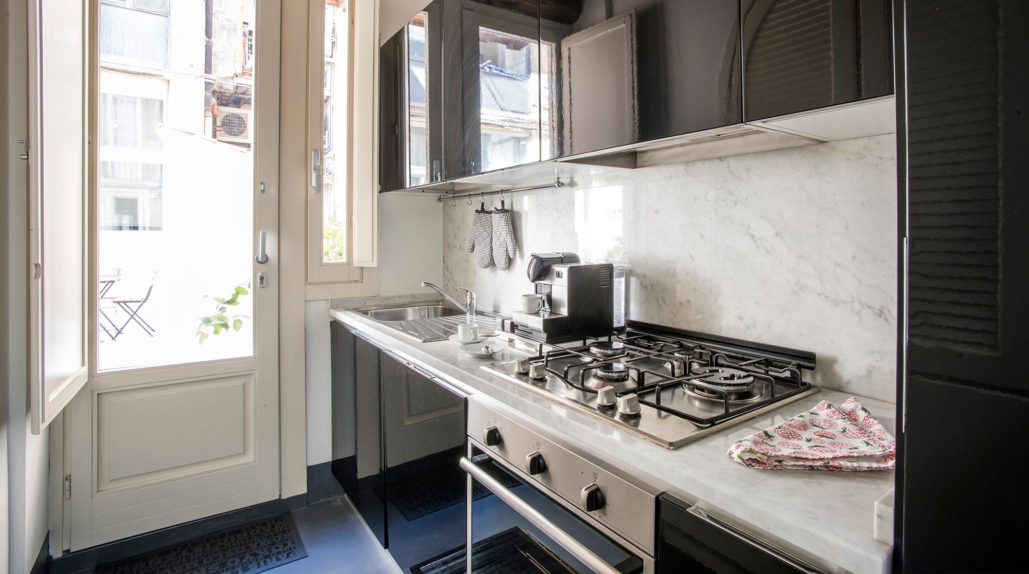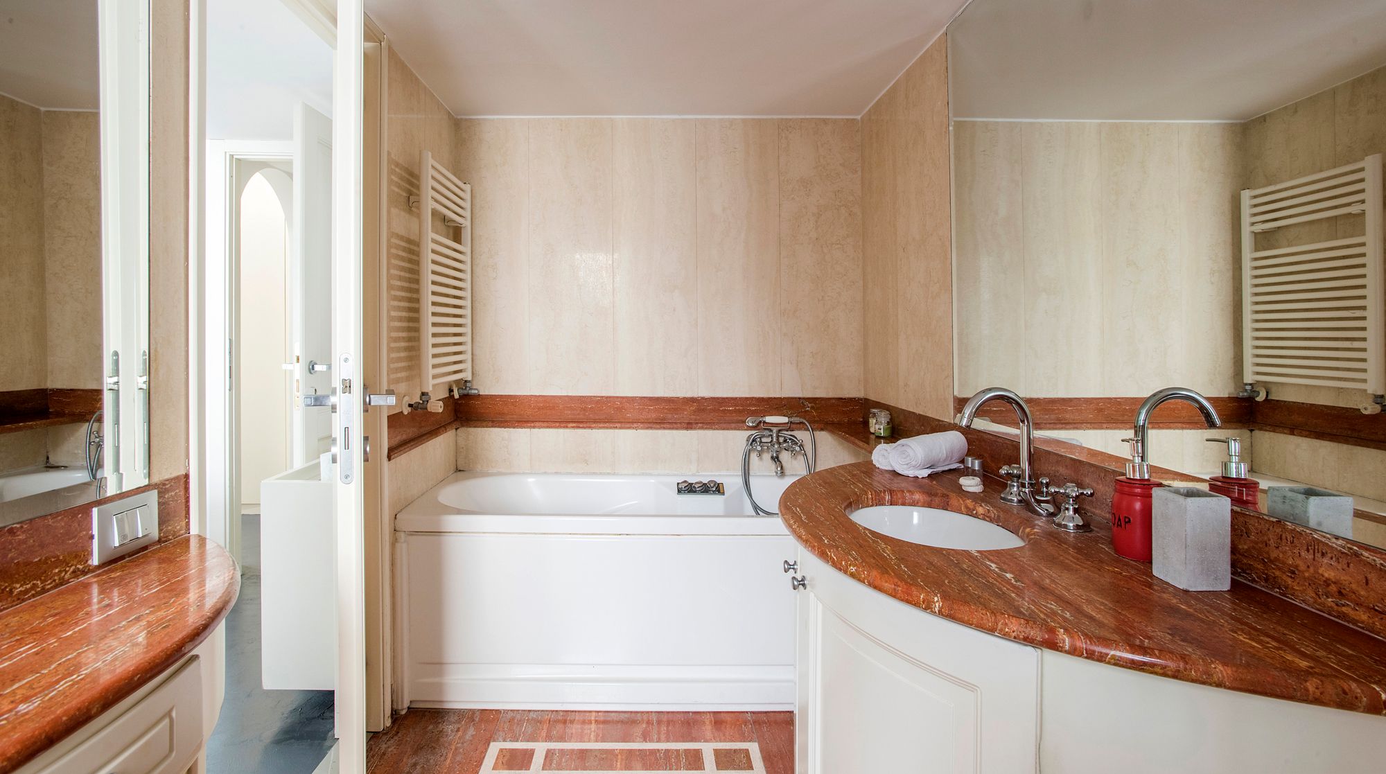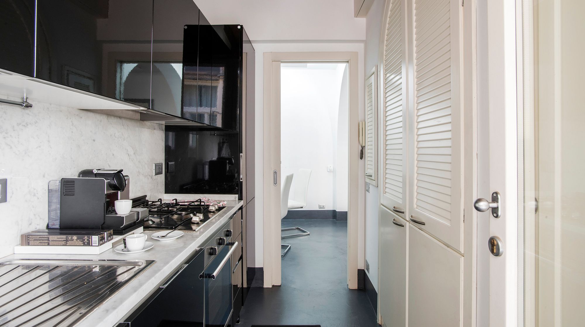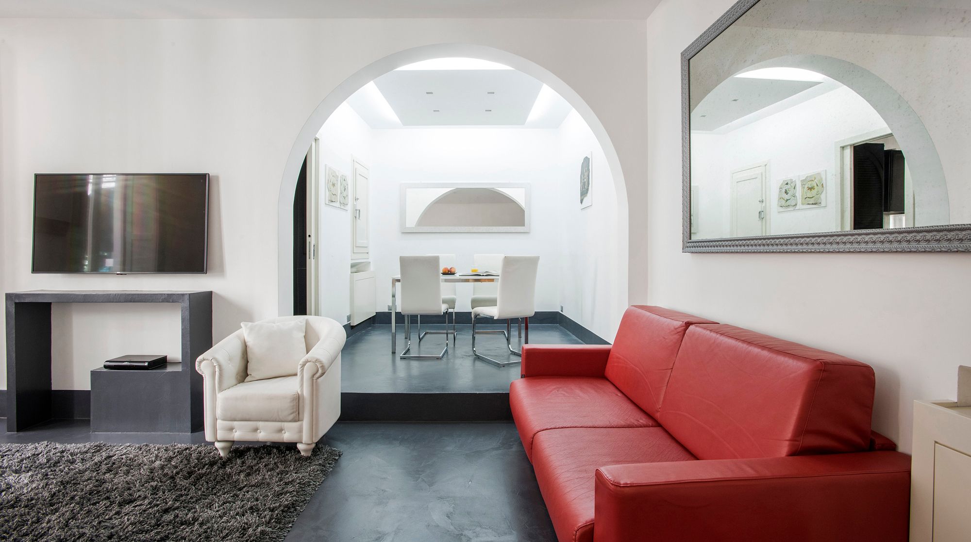 Modern and minimalist, this Art Deco-inspired apartment is a well-designed pocket of calm in the heart of Rome. Just a seven-minute walk to Trevi Fountain and the famous Spanish Steps – you really couldn't be better placed in the Eternal City. A wander around the immediate neighbourhood will take you to designer shops and hidden wine bars for a glass of Barolo. In a quiet courtyard that's away from the bustling tourists, there's a local and authentic feel to the home while still being close to the city's most beloved attractions. Back inside, you'll find a fresh and functional space benefitting from plush leather sofas and a stylish white dining area with tasteful artwork adorning the walls. But the real draw of this home is the shaded terrace – complete with an elegant dining area. We can think of no better way to start the day than with a basket of pastries and your morning coffee out here.