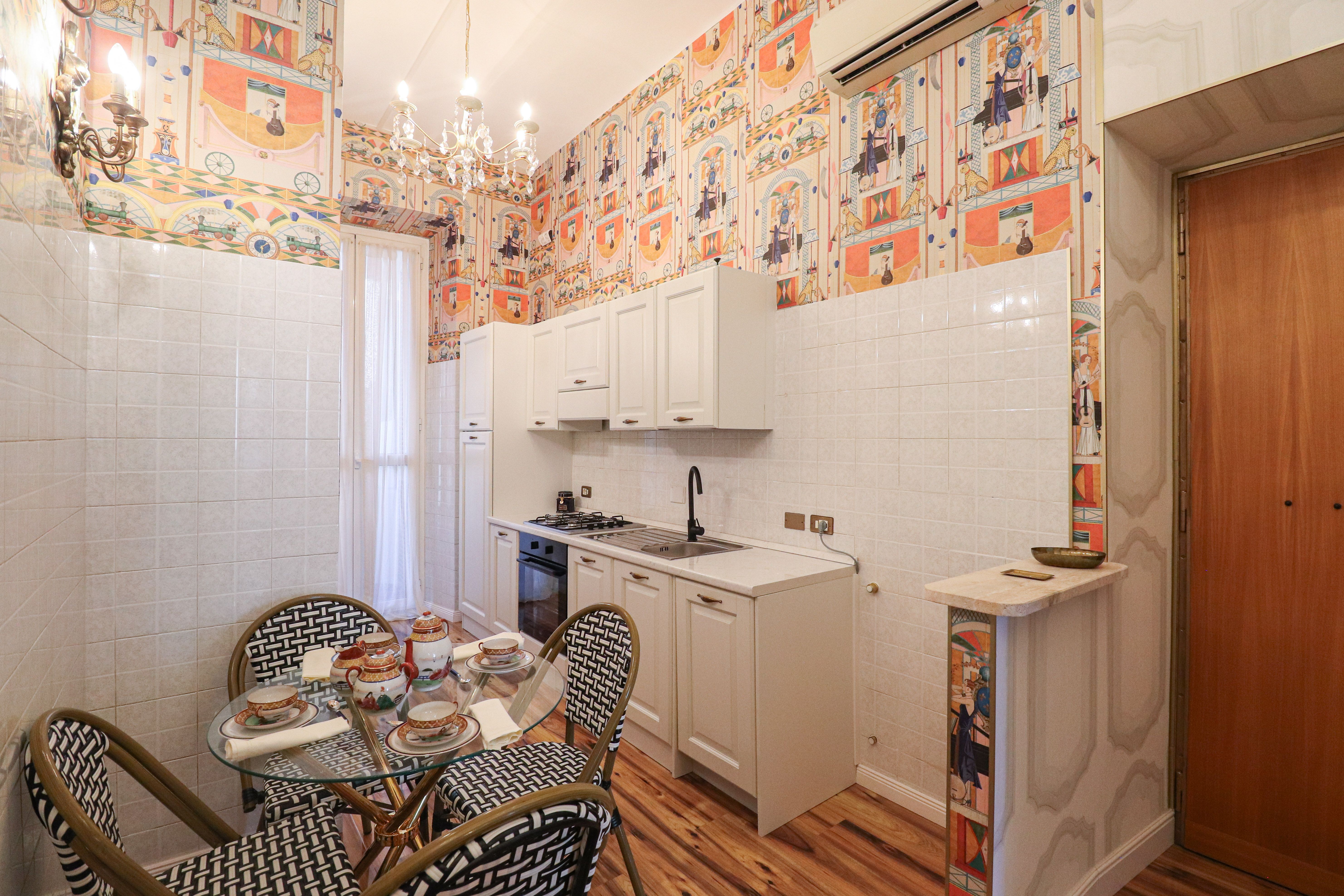 This apartment is a true work of art, where designer flair meets Art Deco. Nestled in Rome’s Coppedè neighbourhood (a UNESCO-recognised gem renowned for its Art Nouveau architecture) you’re surrounded by intricate facades, breathtaking buildings, and a quiet, village-like atmosphere. From here, stroll to Villa Torlonia, sip espresso at local cafes or wander to the buzzing streets near Piazza Bologna. After a day exploring Rome’s landmarks, return to an interior full of bold wallpapers, stucco ceilings, and curated touches that make every moment feel exceptional.