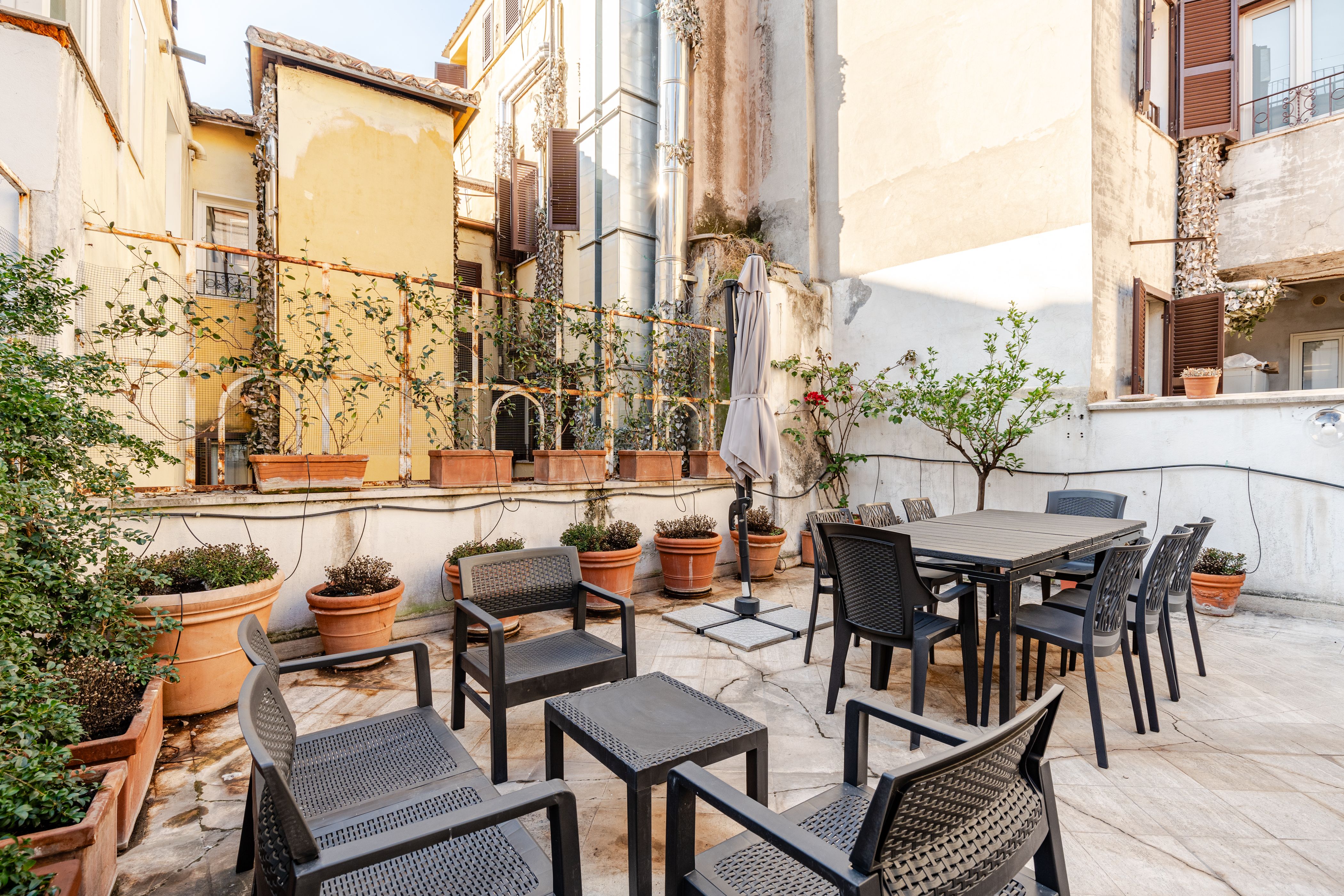 Tucked away in a historic building once belonging to a famous Baroque painter, this apartment offers a refreshing city sanctuary. There’s a private terrace for laidback gatherings. Inside, the rooms are well suited to families and groups in search of simplicity, ease and comfort. You’ll find all the essentials you could need and the location couldn’t be better. From here, it’s just a short stroll to the famous Piazza di Campo de Fiori, while iconic sights like the Piazza Navona and the Pantheon are within easy reach.