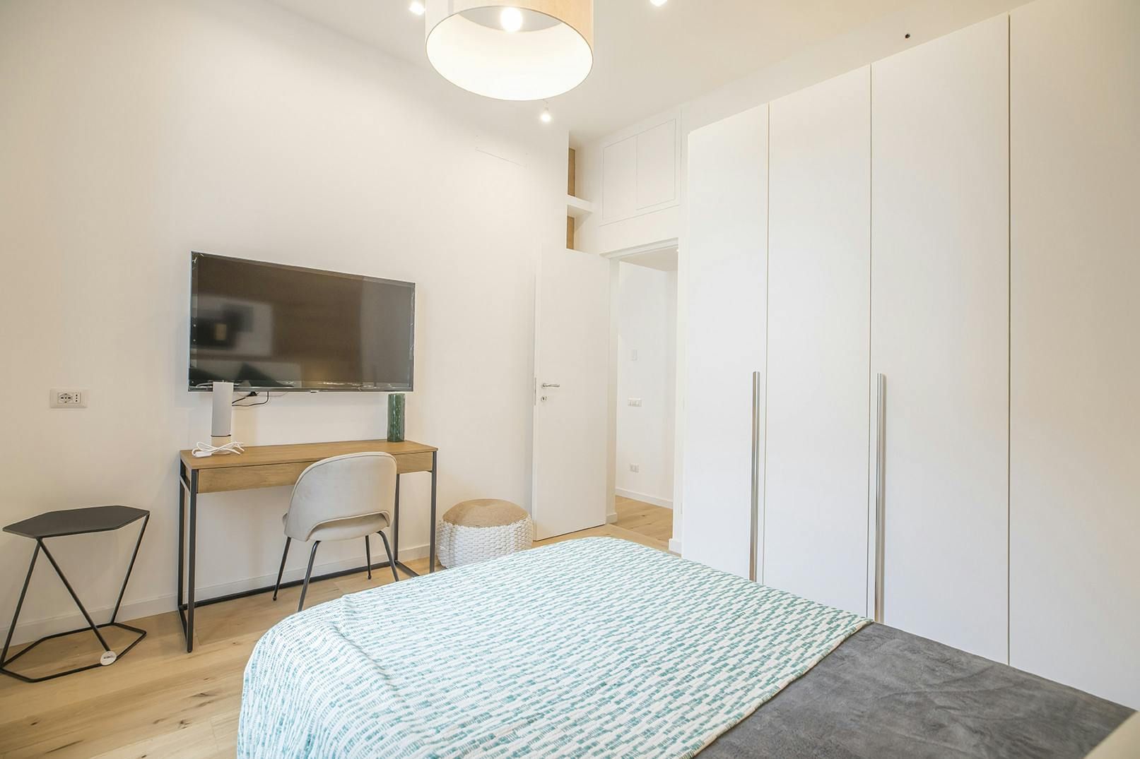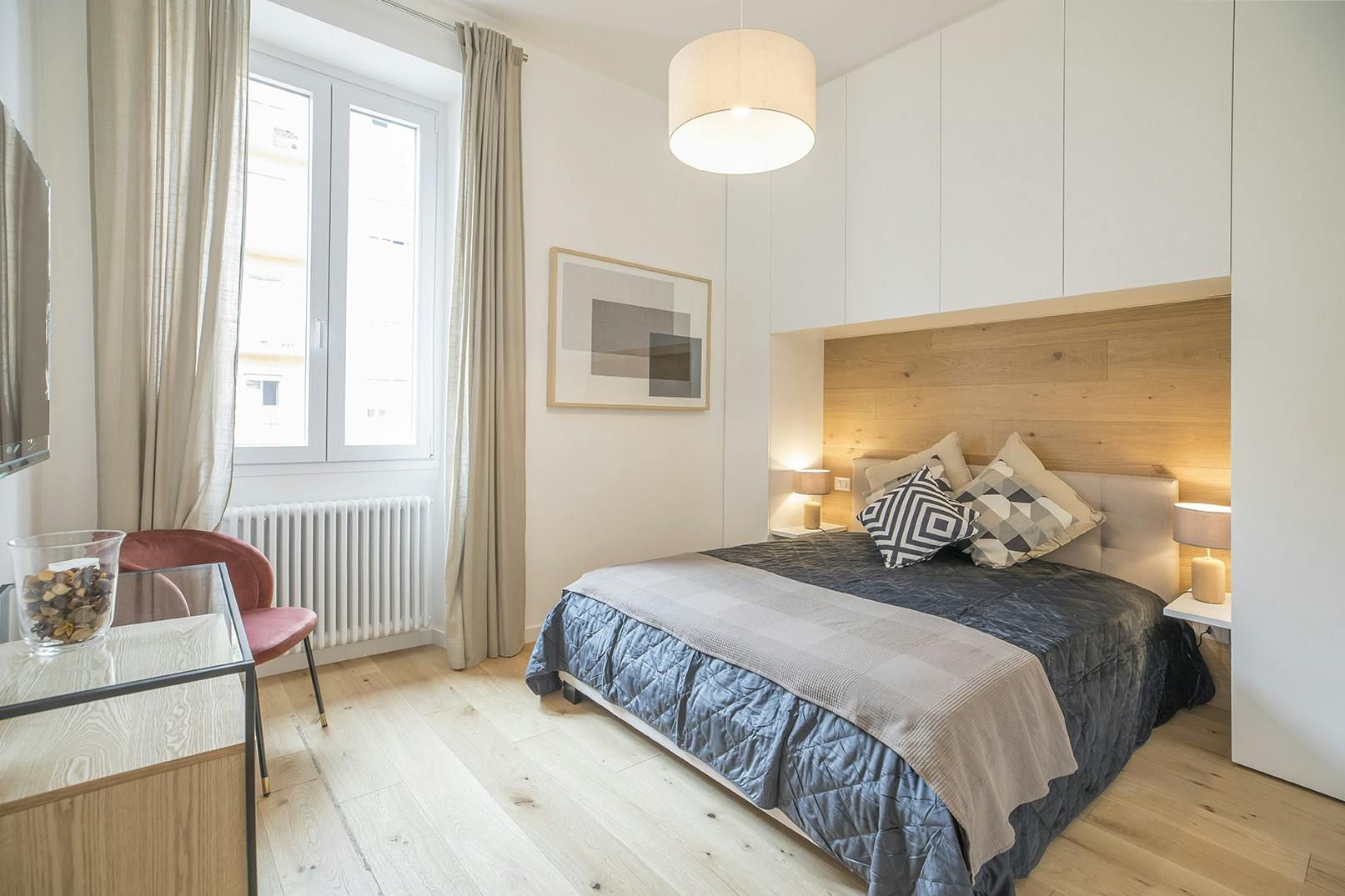 You’ll find this apartment in a characterful period building in authentic Testaccio. It’s a vibrant, historic district of Rome known for its culinary culture, full of trattorias, restaurants, and markets. The apartment building has an internal courtyard that makes it a peaceful base, perfect for a city break. The neutral hues of this home add to the restful vibe – you can relax here. There’s a kitchen to cook in, and a bright, welcoming living and dining space where you can spend time together.