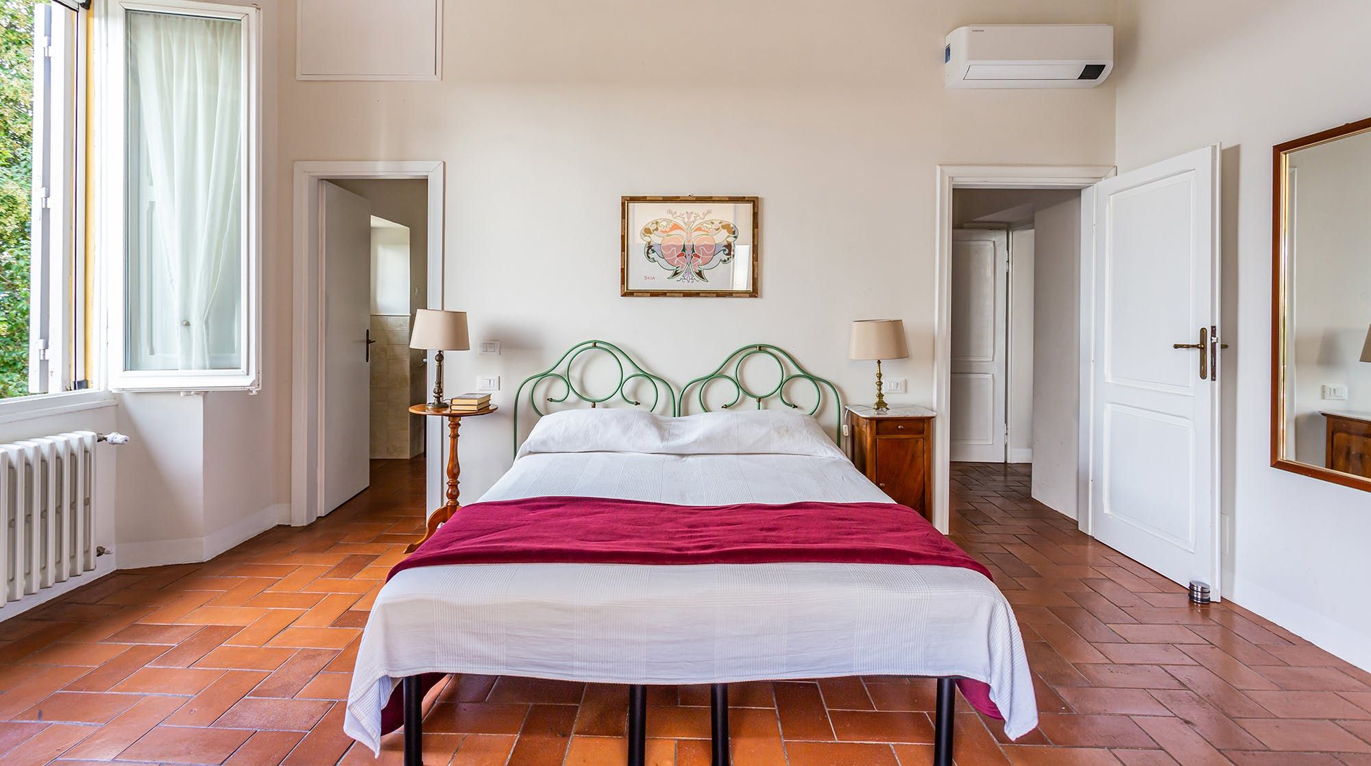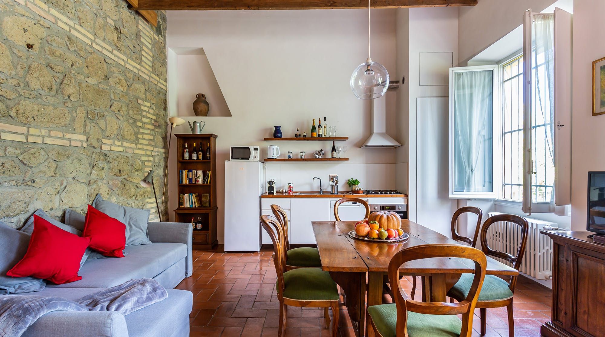 Built in the 19th century and touched with modern comforts, this quaint home is authentic Roman design at its very best. Exposed brick walls and wood ceilings lace the home with a homespun vibe that makes you feel instantly at home.