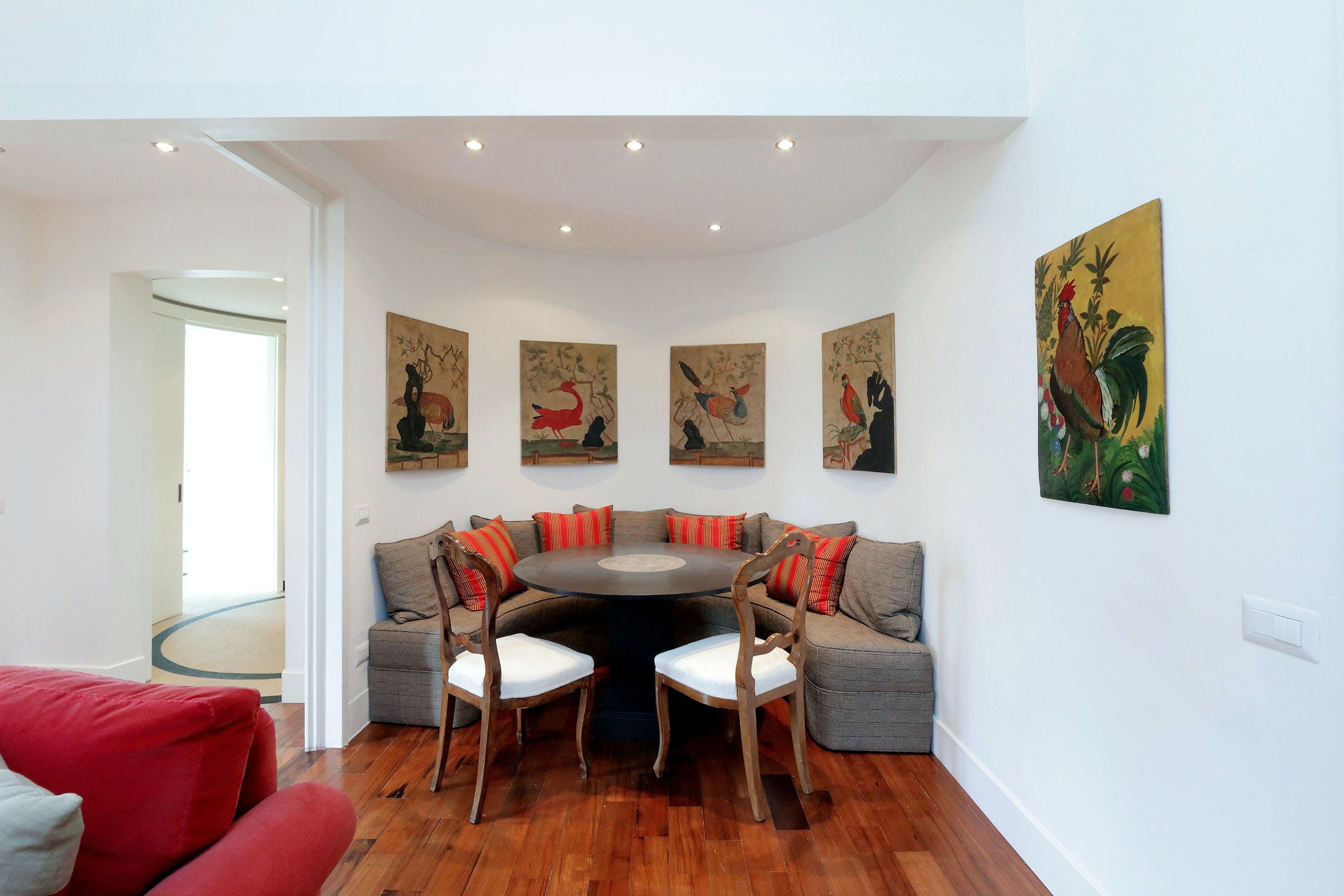 Positioned between the Spanish Steps and the Pantheon, this apartment is a hidden gem. It’s housed in a famous palazzo with a beautiful courtyard, right in the heart of Rome’s historic centre. The apartment boasts remarkable views of the Eternal City, which can be admired from the balcony, terrace, and from the third-floor tower-like living room. When you’re not admiring the vista, you’ll appreciate the comfort this home offers – everything you need is close to hand, though there are quite a few stairs to navigate.