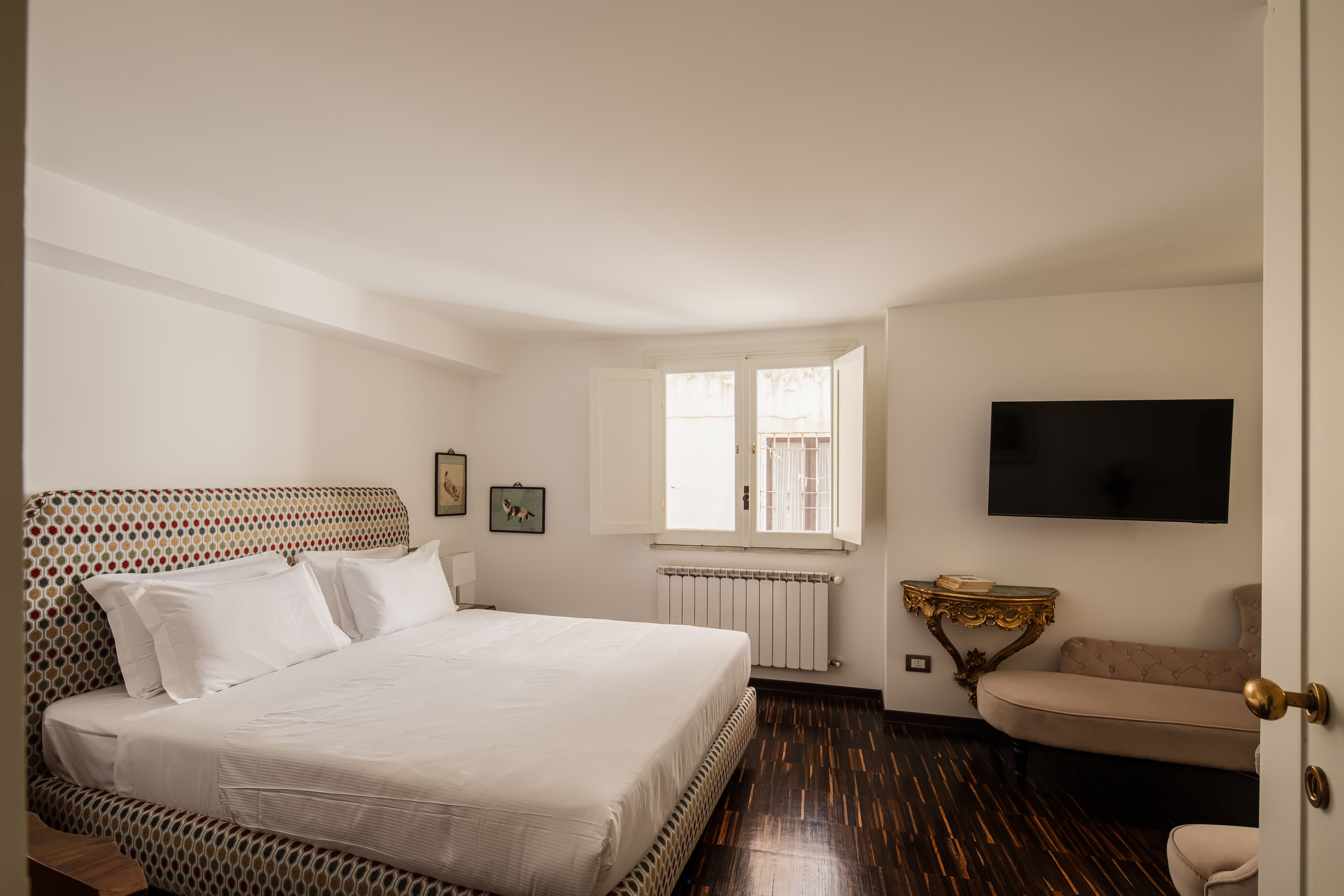 With an address in the heart of Rome on the beautiful Via Di Monserrato, you’ll be a short walk to the River Tiber and the Campo de' Fiori. Also within walking distance is the Museo di Roma and plenty of restaurants, cafes and shops. The apartment itself is spread over two floors – there’s a mezzanine library which also houses a sofa bed for guests five and six. There’s also a small terrace off the kitchen diner – the well-equipped kitchen is ideal for creating some classic Roman dishes too.