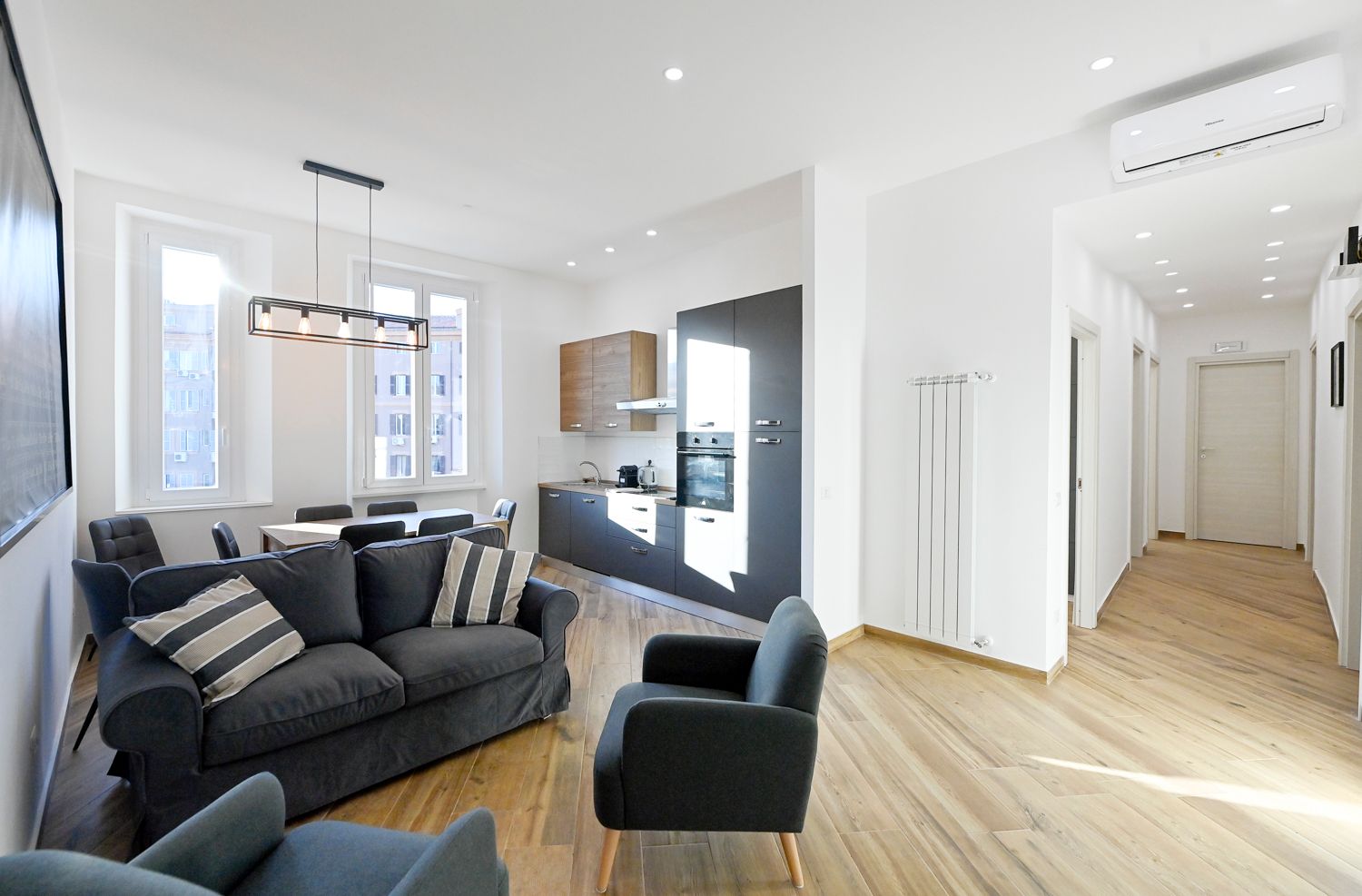 This city apartment may lack character, but if you can look beyond the minimal furnishings, you'll find an ideal bolthole for exploring Rome – you're just steps away from the Vatican City. The open-plan living space catches the sunshine, and there's plenty of space to enjoy dinners together with friends or family – though, with traditional neighbourhood restaurants in Trastevere on your doorstep, you might not cook at home much. From here, you can reach Castel Sant'Angelo in twenty minutes, but the nearby bus stop makes it easy to explore the rest of Rome.