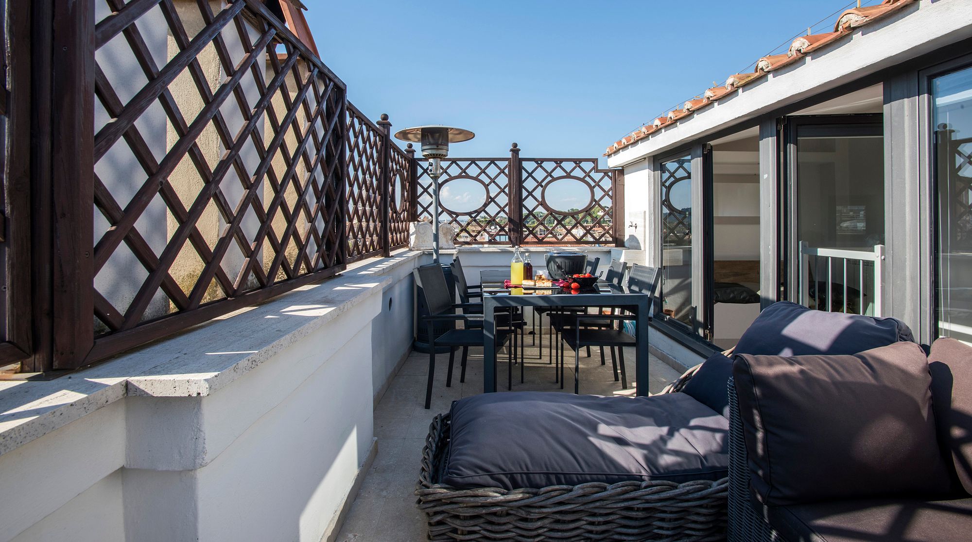 Colonna Heights certainly has the wow-factor. Right on the corner of Rome's main drag, Via del Corso, this triplex apartment's crown jewel is the rooftop terrace, which boasts 360º views of the city, as well as a dining table, sofas and a barbecue. Inside, the décor is unique, although it is distinct enough that it might not be to everyone’s taste. You should be prepared for stairs, some of which are quite steep, but if you can reach the top, the reward is worth it.