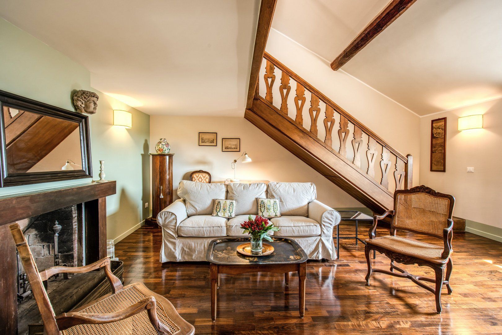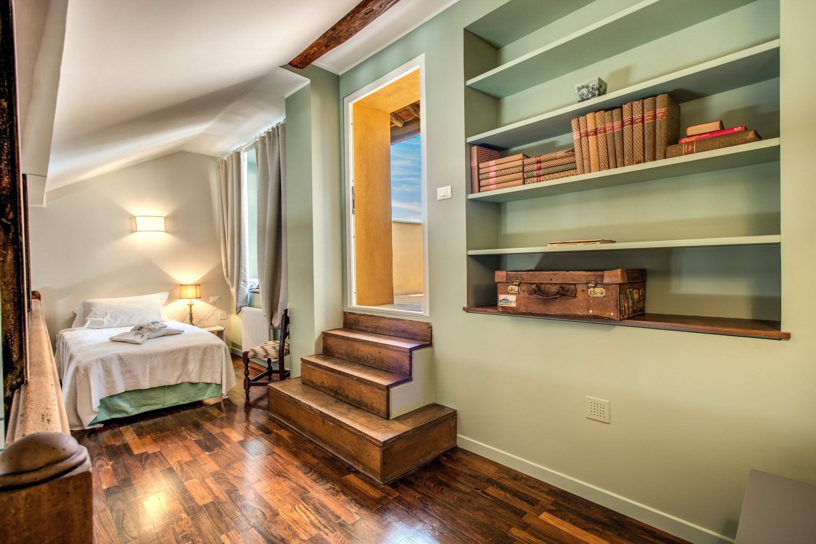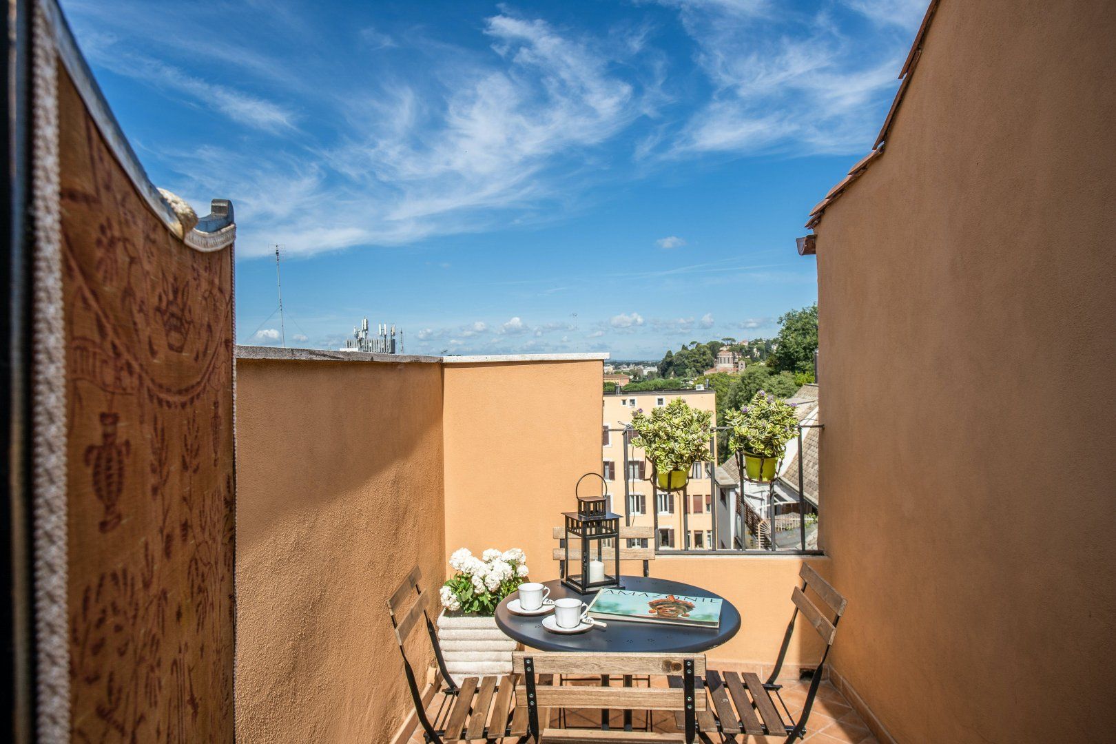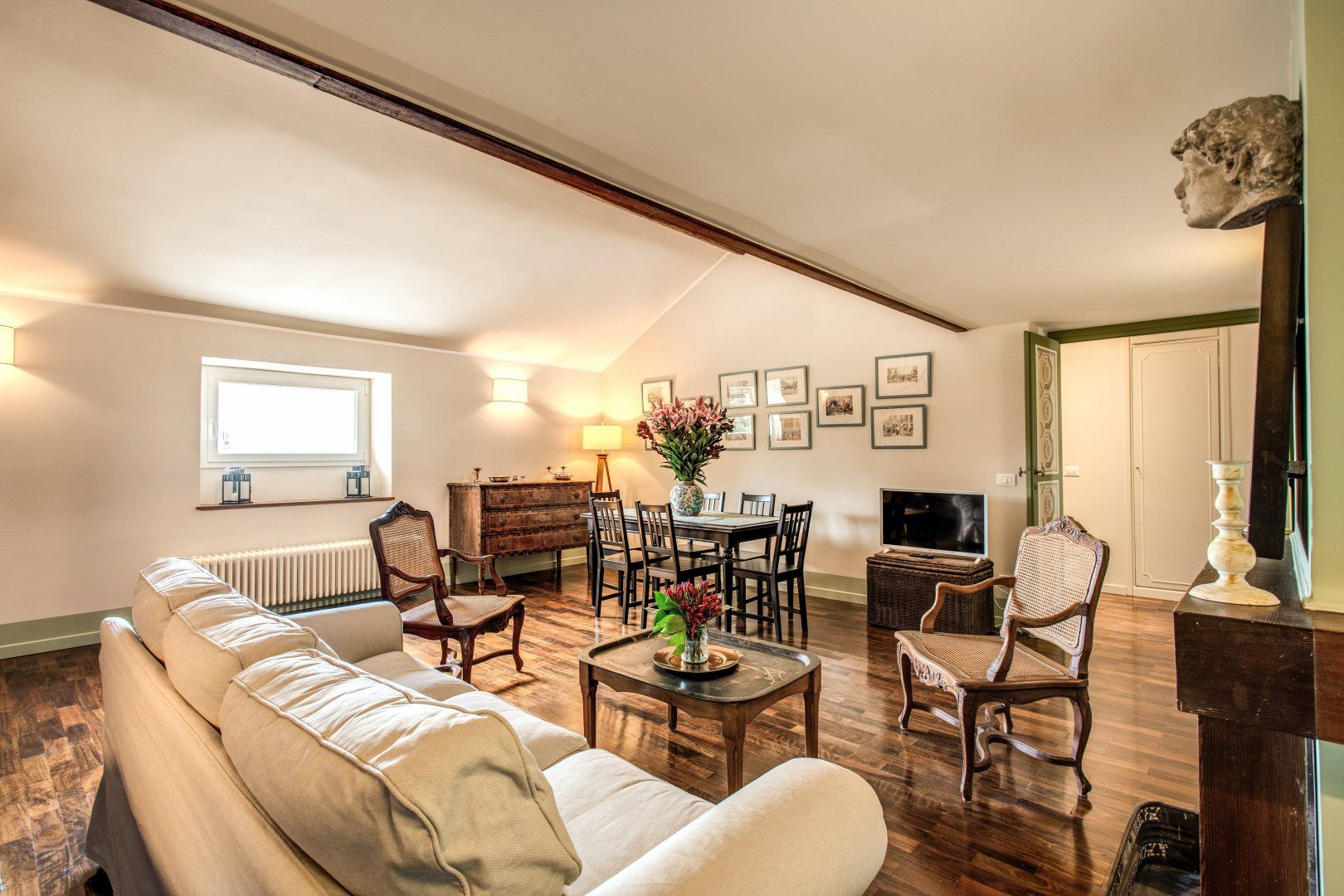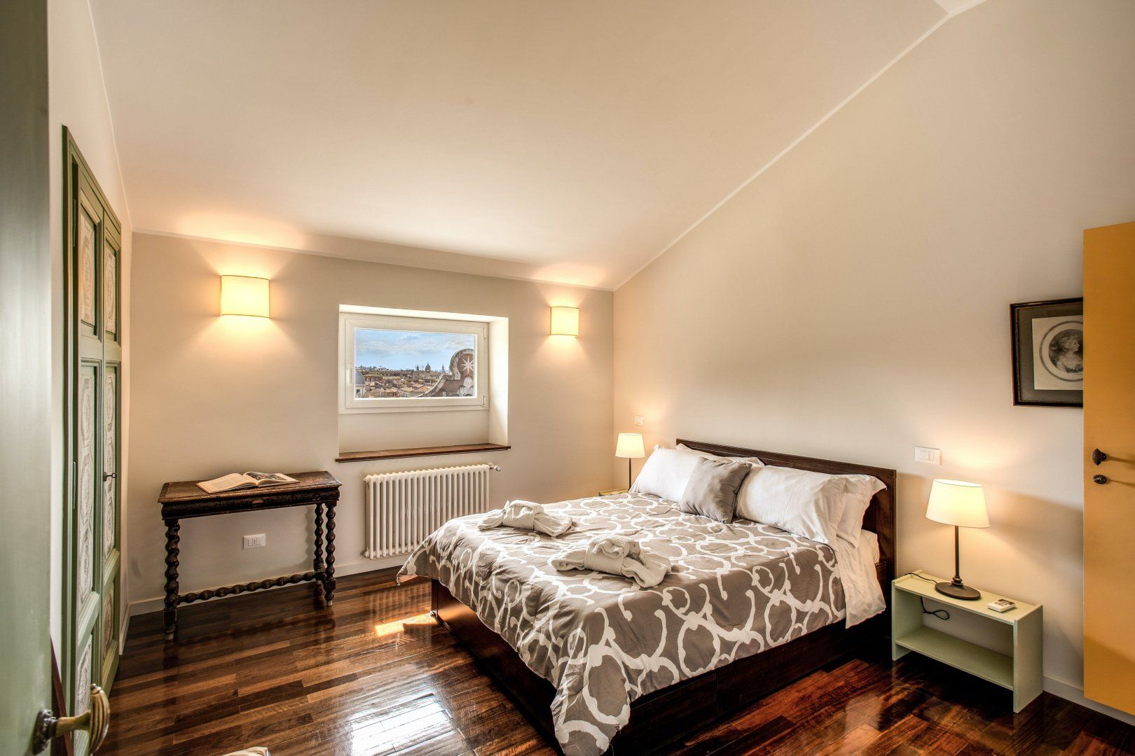 Sip a negroni cocktail on this home's private terrace right in front of Piazza Del Popolo, with its stunning panoramic views of Rome's historical heart – this is la dolce vita. Inside there are more of those inspiring views of the Eternal City to admire – they stopped us in our tracks when we visited – they look like paintings. The classic style living space has lovely polished wood floors, a feature fireplace and an ornate galleried landing. This home is ideal for a couple, business professional or family of three.