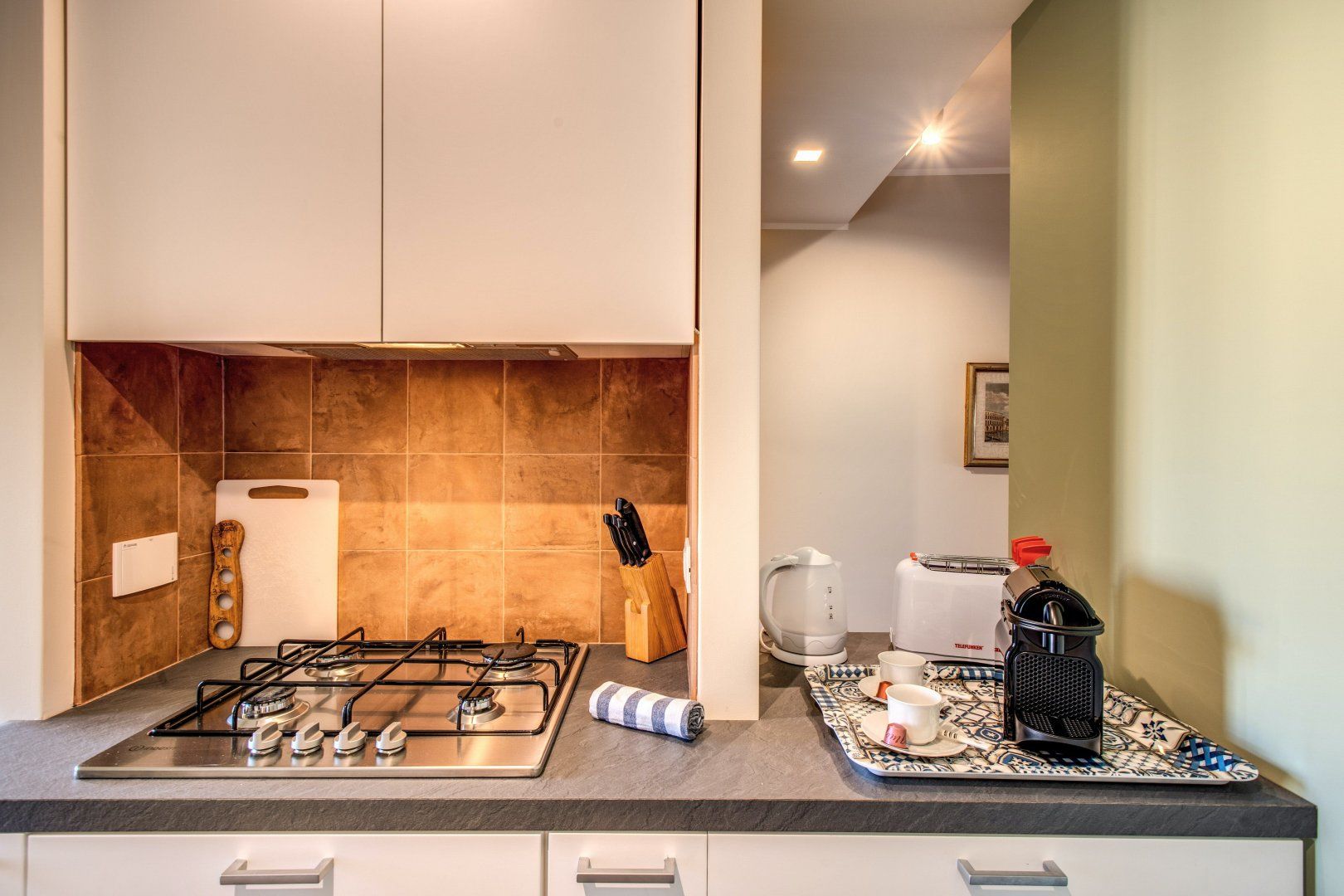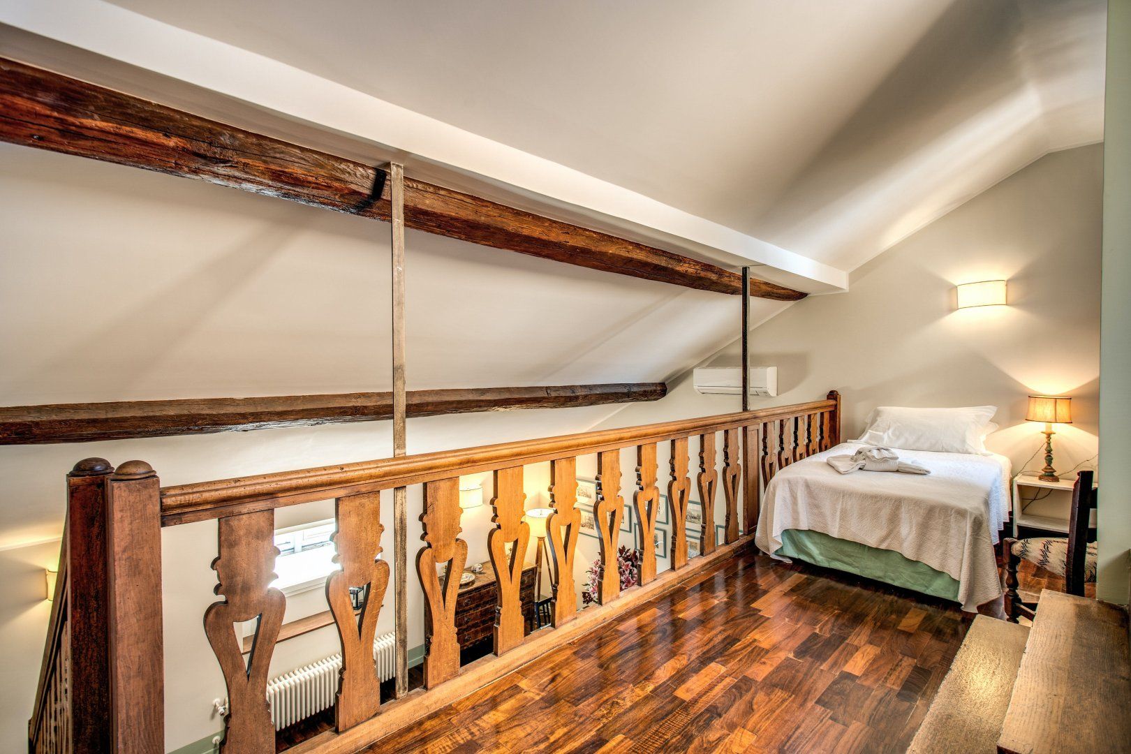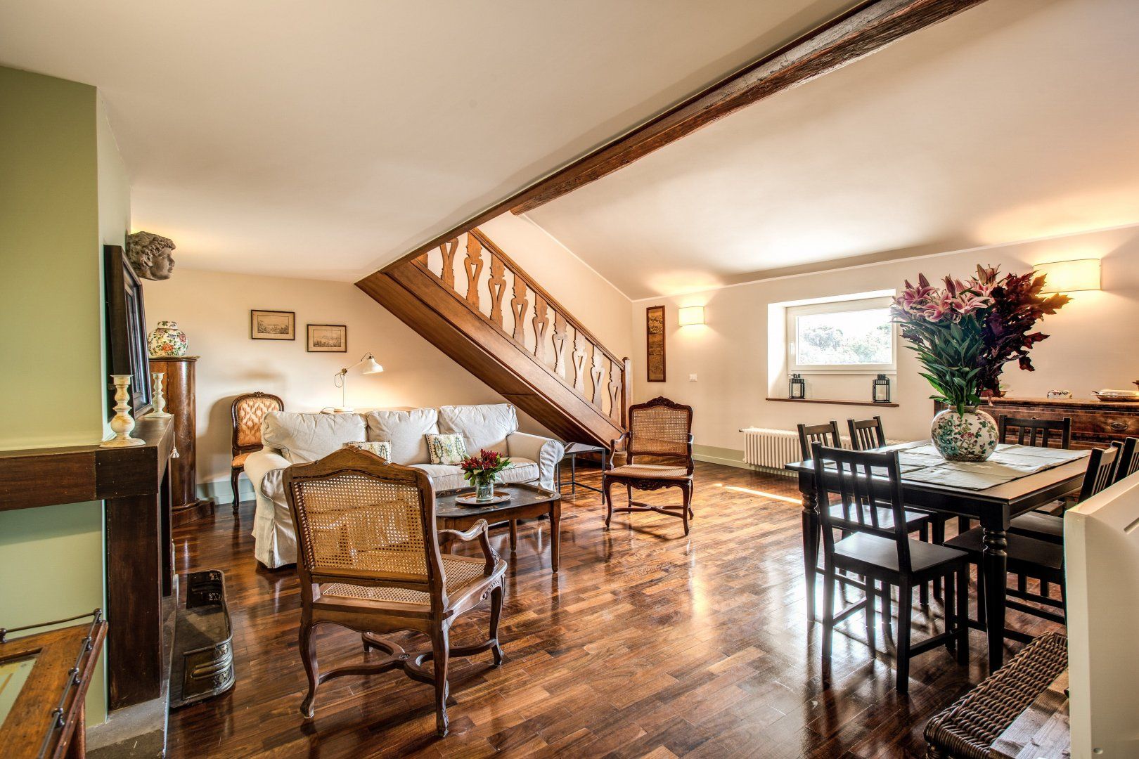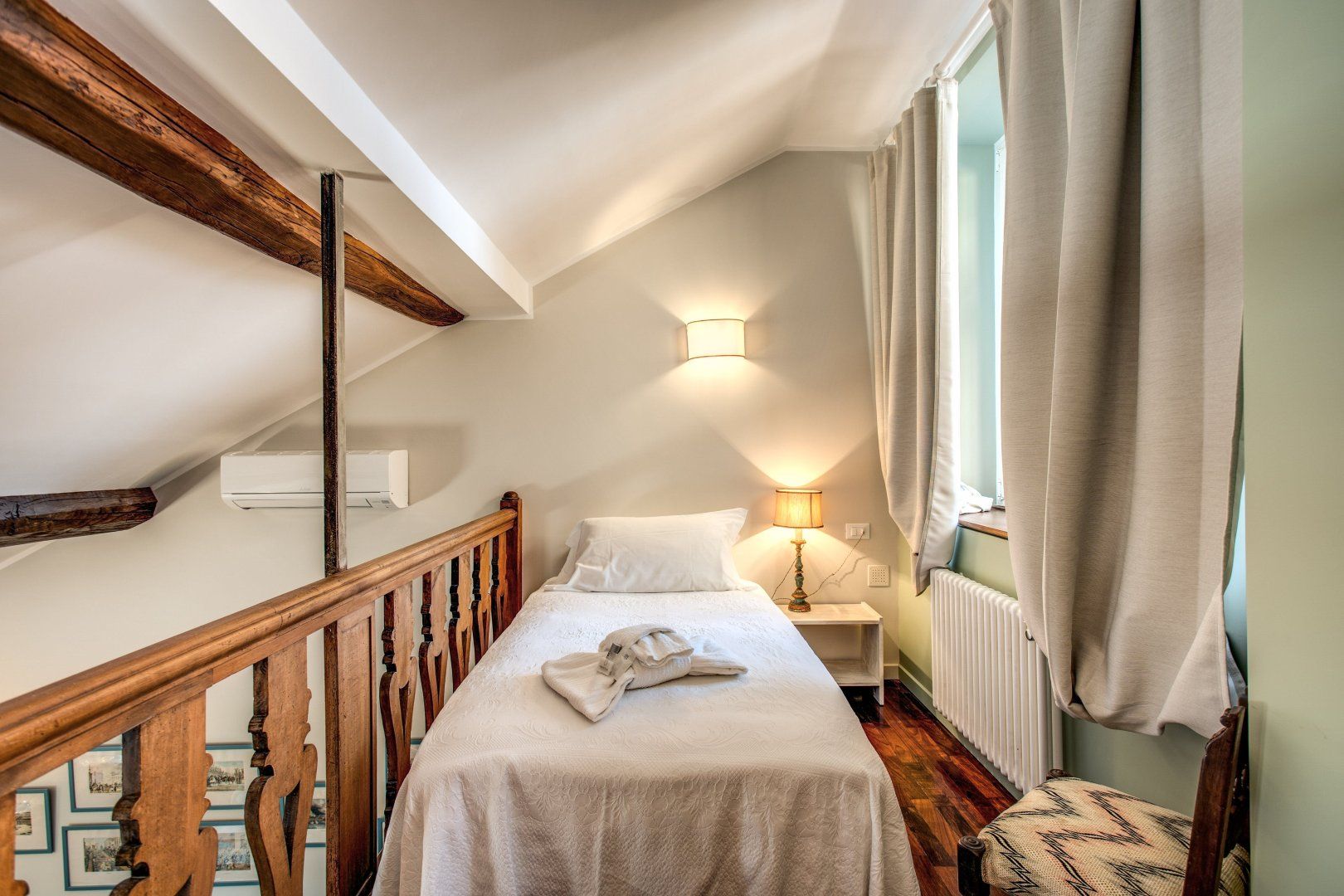 Sip a negroni cocktail on this home's private terrace right in front of Piazza Del Popolo, with its stunning panoramic views of Rome's historical heart – this is la dolce vita. Inside there are more of those inspiring views of the Eternal City to admire – they stopped us in our tracks when we visited – they look like paintings. The classic style living space has lovely polished wood floors, a feature fireplace and an ornate galleried landing. This home is ideal for a couple, business professional or family of three.