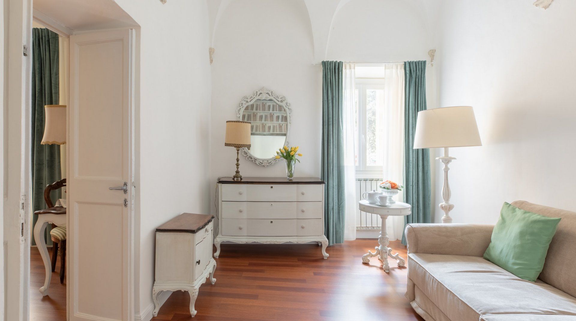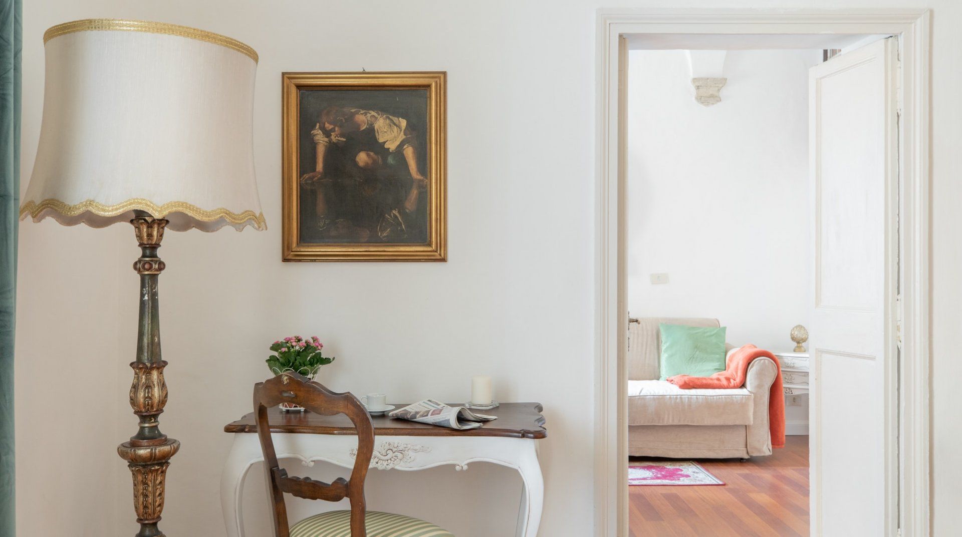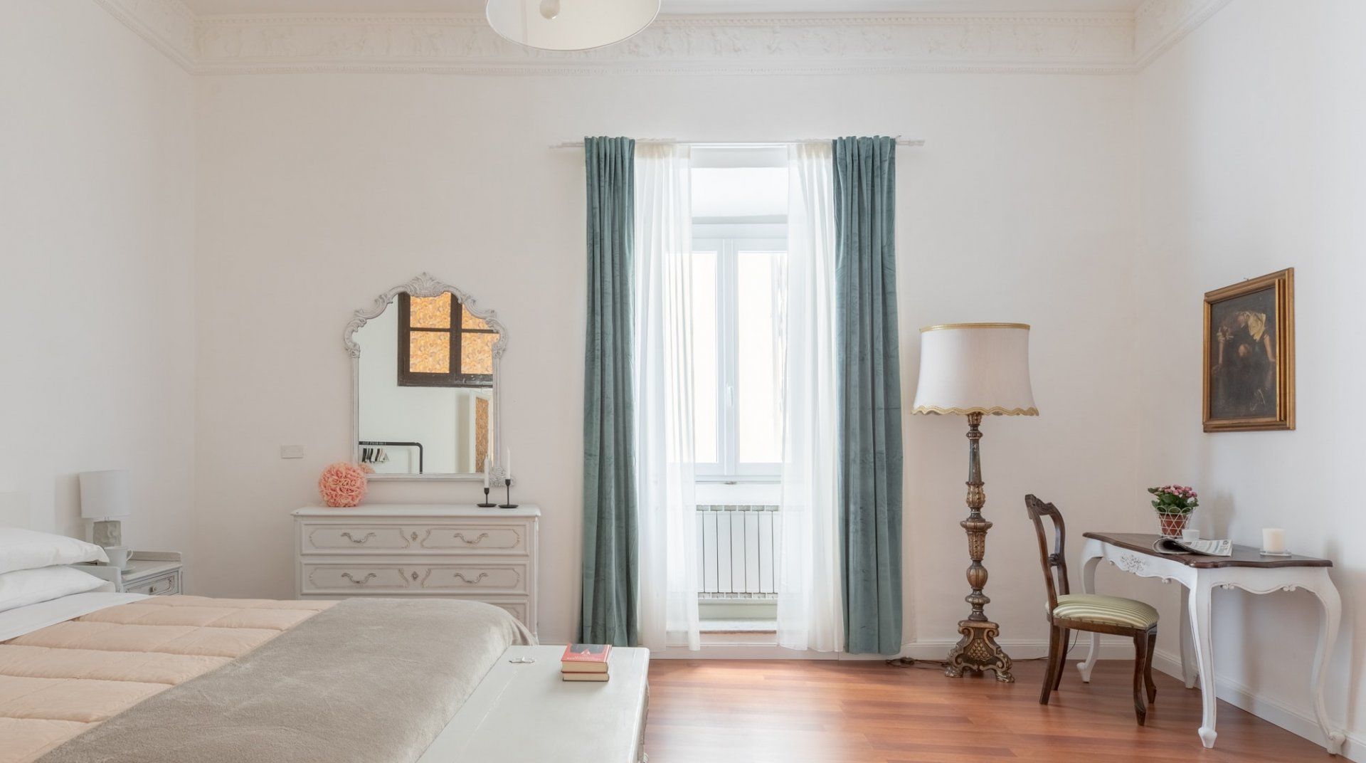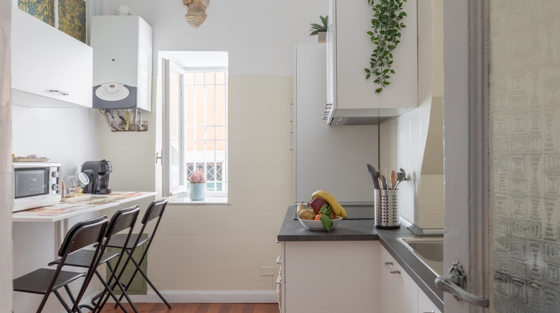 Fingertips is in a great position, close to both the Jewish Quarter and Campo de’ Fiori, the home of Rome’s most famous market. The layout of the flat makes it quite a flexible proposition – if the living room needs to be used as a bedroom, it can be closed off from the other communal areas, and you wouldn’t know it wasn’t permanent (except for the sofa bed). All in all, it’s a cute flat, with some nice period furniture, but it’s the location that really lifts it to the next level.