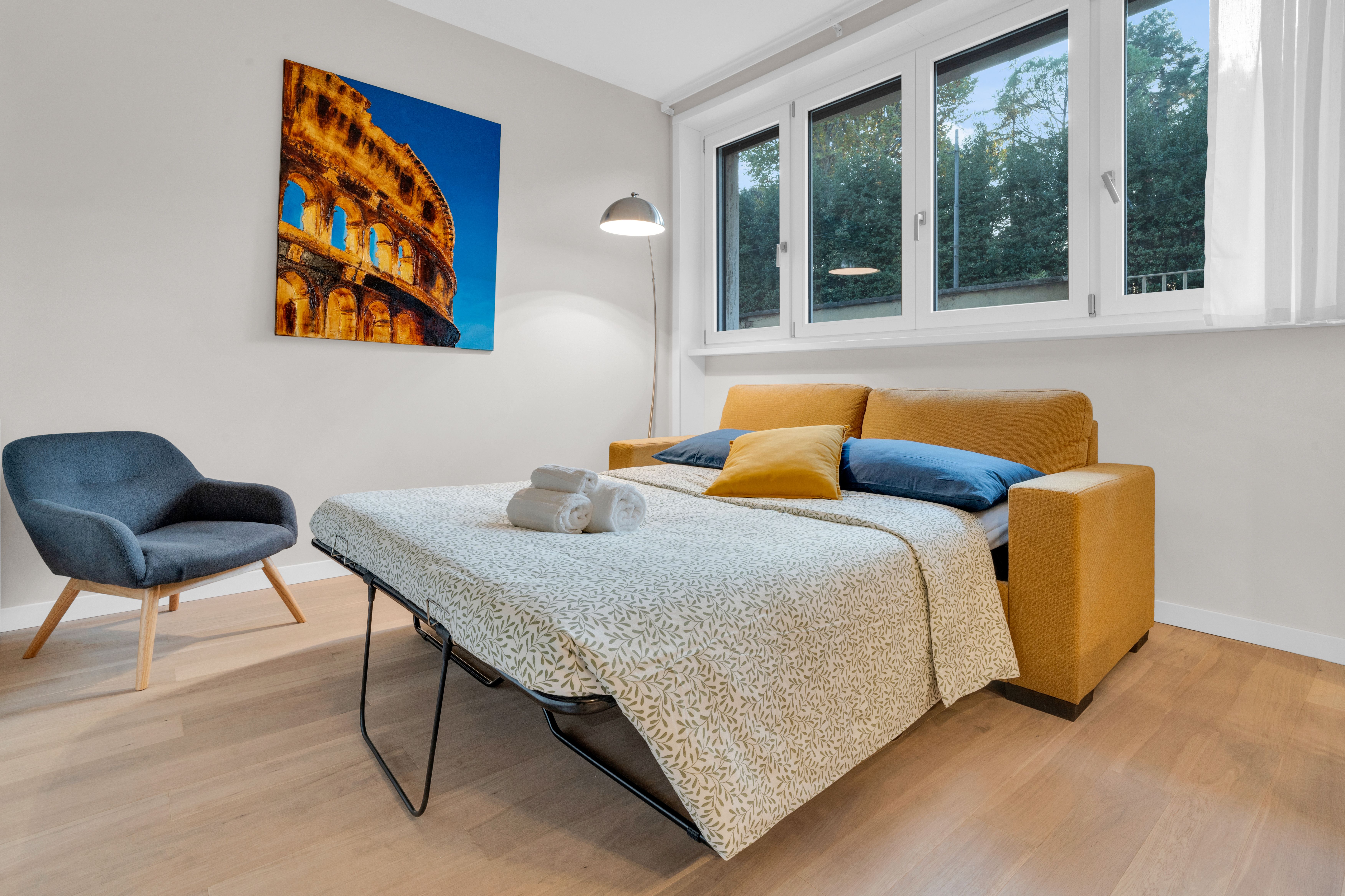 This practical apartment is in the Flaminio district of Rome. Tram 2 departs just 200 metres away, whisking you to Piazza del Popolo in no time. You’ll be within easy reach of the City’s restaurants and shops, as well as iconic sights and tourist attractions. The apartment is comfortable and convenient, though with six guests, two will sleep on a sofa bed in the living space. There’s a desk in bedroom one for those working remotely during their stay.