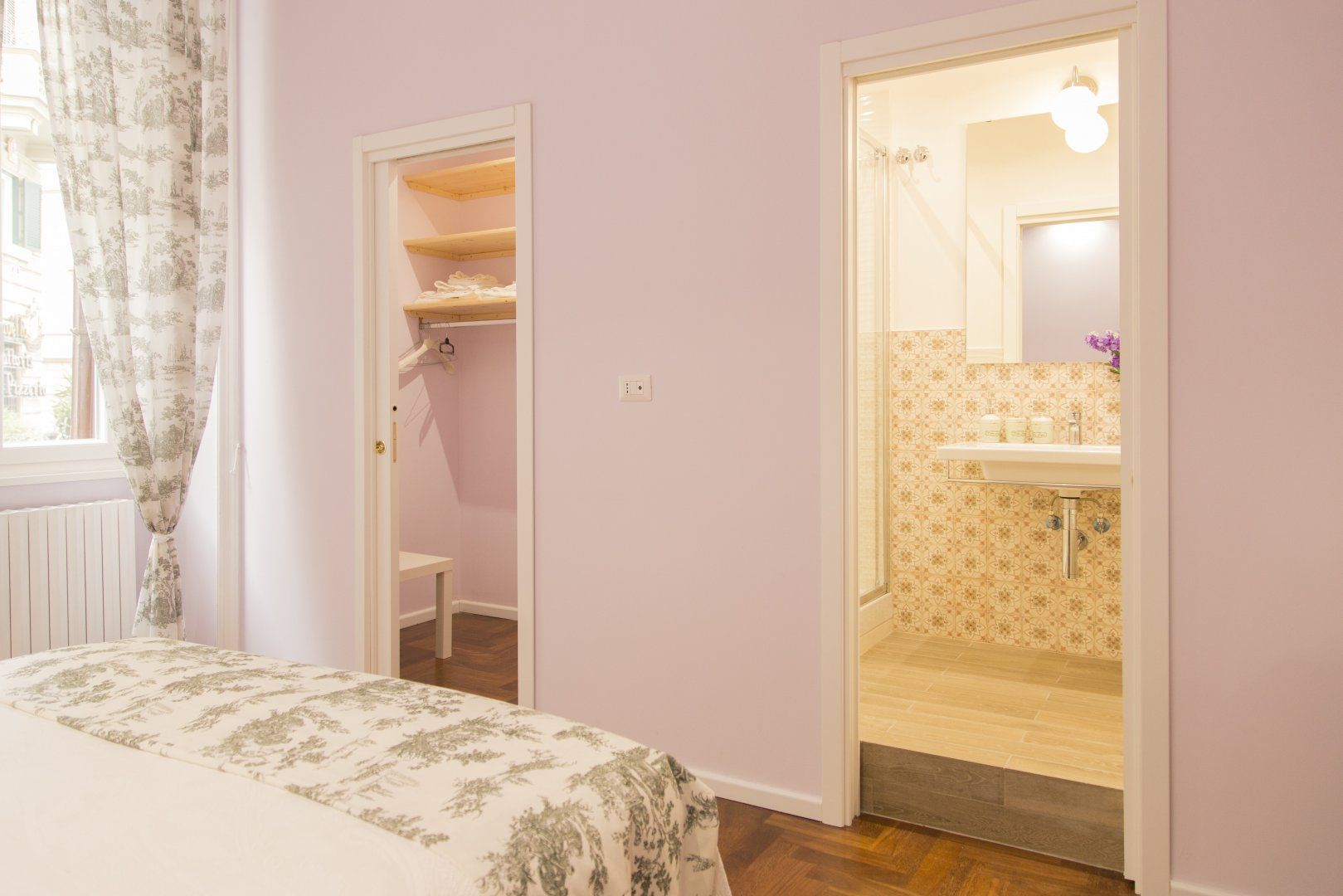 Located inside a beautiful, early 20th Century building, lies this charming Italian apartment. This home provides an authentic Roman experience with ornate bed frames, original tiling, and swallowtail parquet floors.