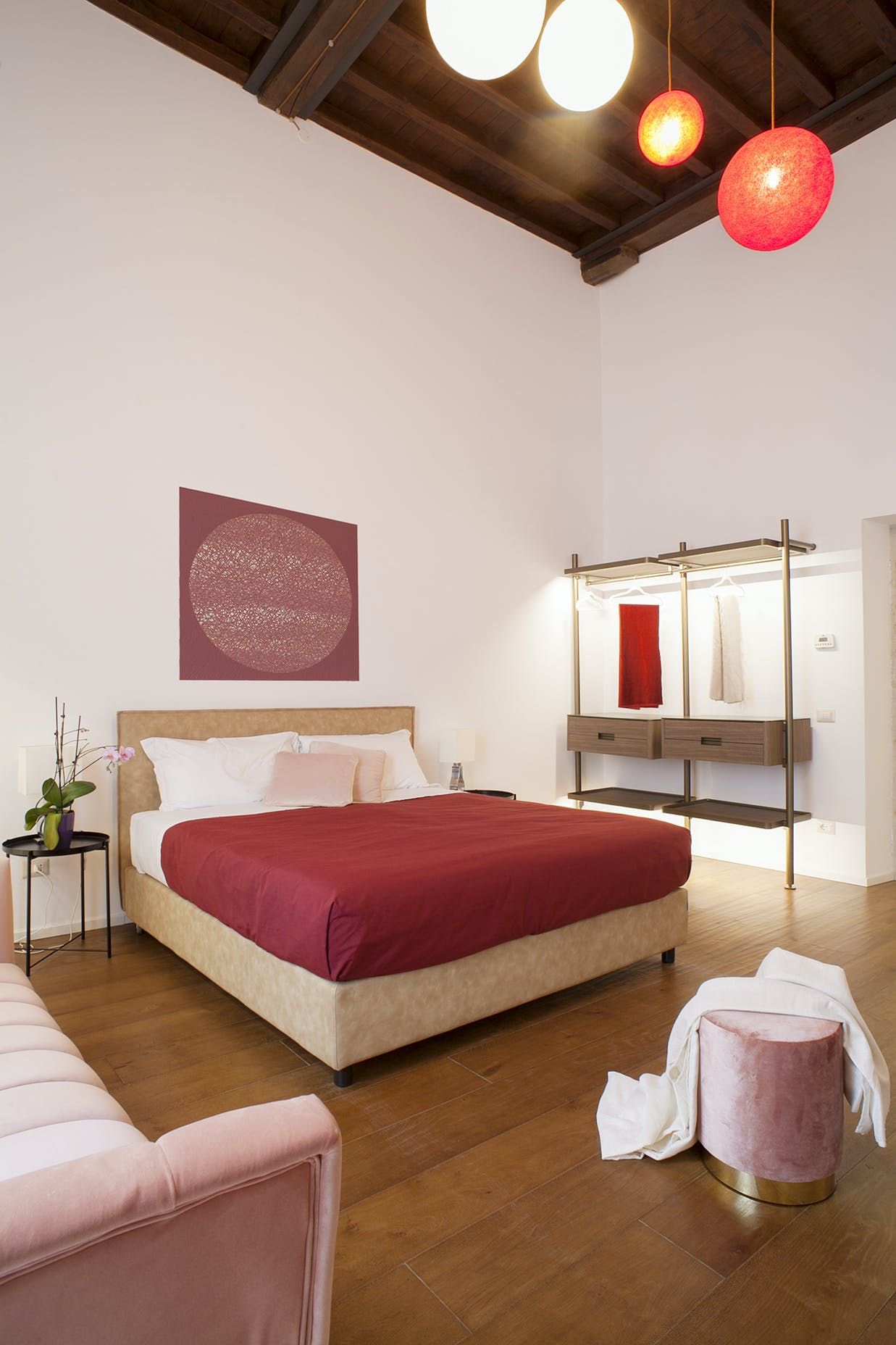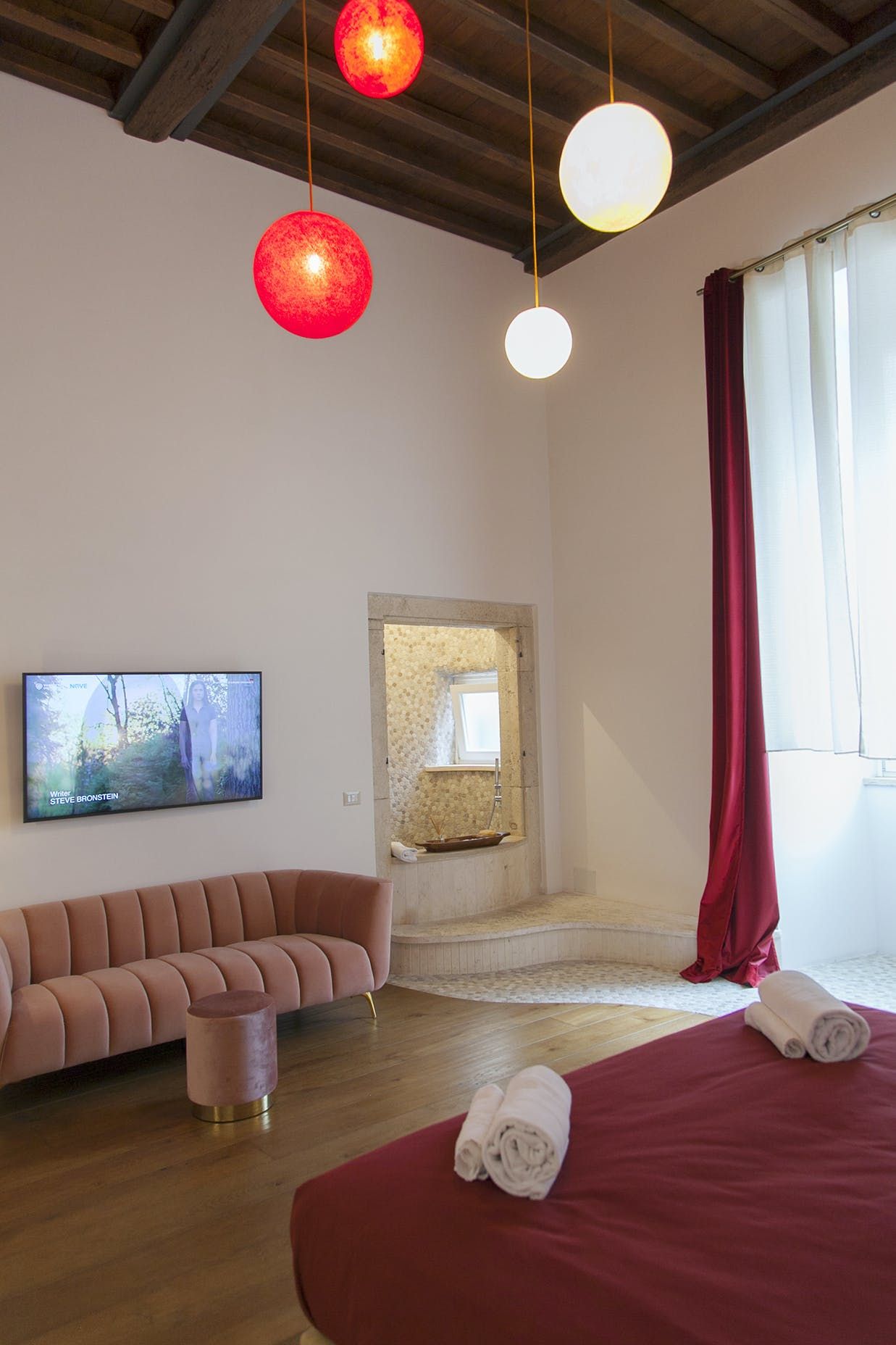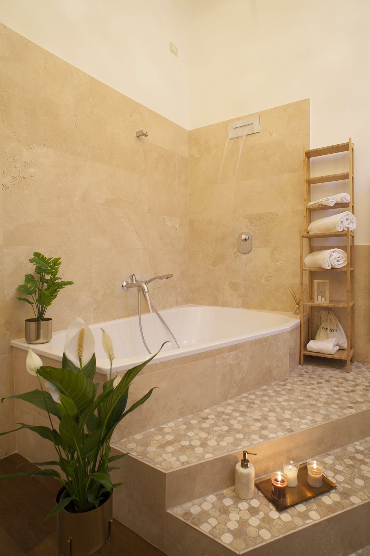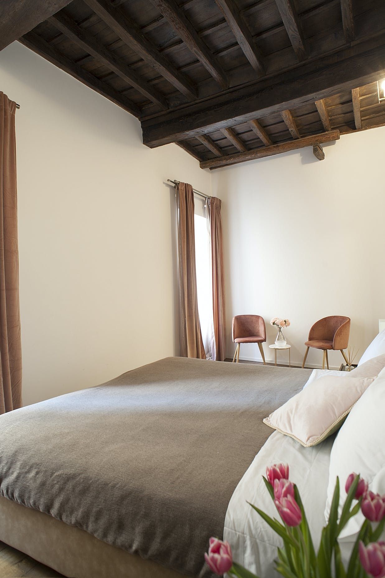 This unique home is ideal for large groups. It’s a whole building divided into four separate apartments, so up to eighteen guests can stay together while also having their own space – though four guests will be sleeping on sofa beds. The steep stone stairs aren’t suitable for those with reduced mobility – or heavy suitcases – but those stairs mean that the views from the outside spaces are pretty special. Best of all, you’re just a short stroll from the Pantheon and Piazza Navona, with all the sights of the city within easy reach.