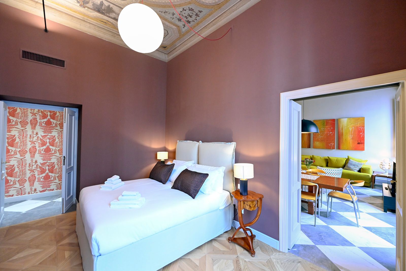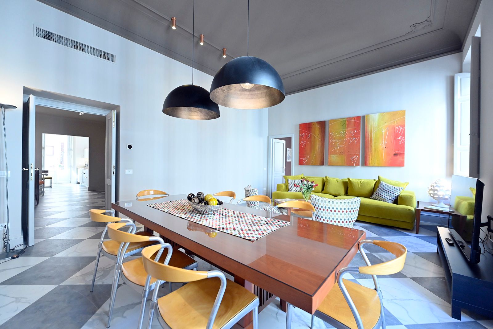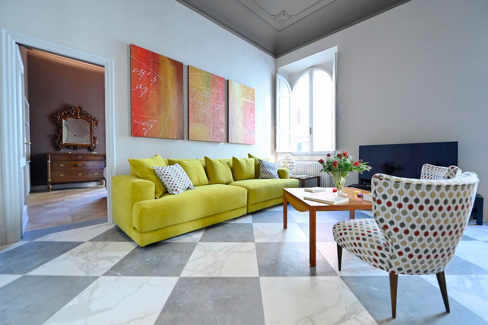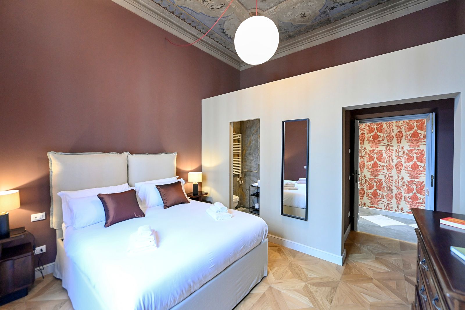 This elegant apartment offers a unique stay in Rome. It’s centrally located between major sights including the Trevi Fountain and the Basilica Papale di Santa Maria Maggiore, with a Metro station just four minutes away – you can easily explore the city. The apartment is quiet and comfortable, an elegant escape in a bustling capital city. We love the classic architectural elements, including stunning frescoed ceilings, juxtaposed with bold splashes of colour and modern art.