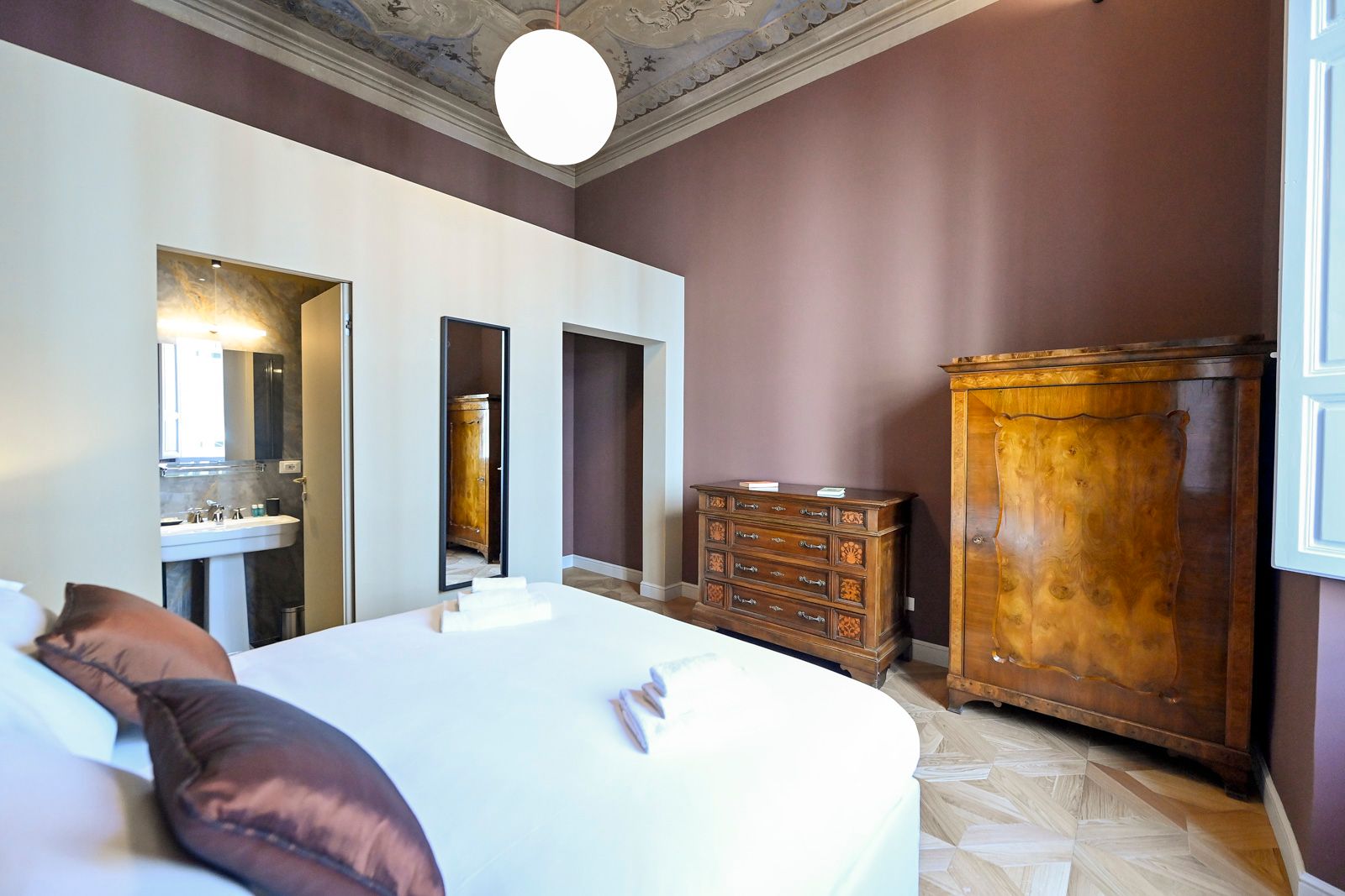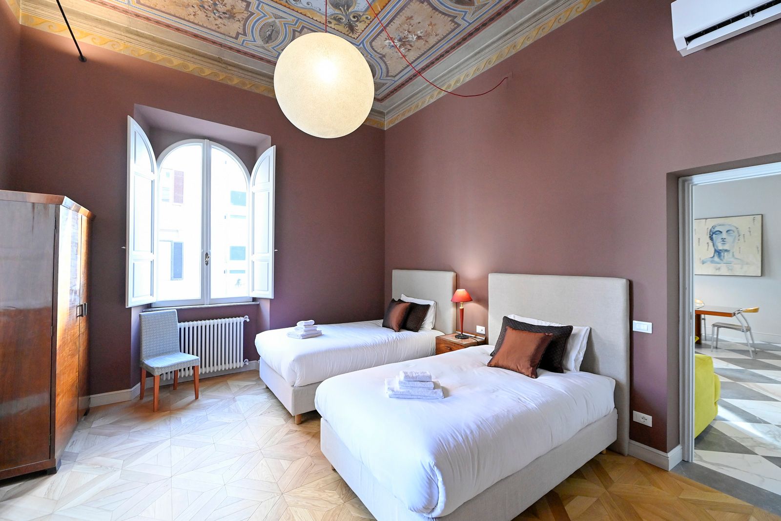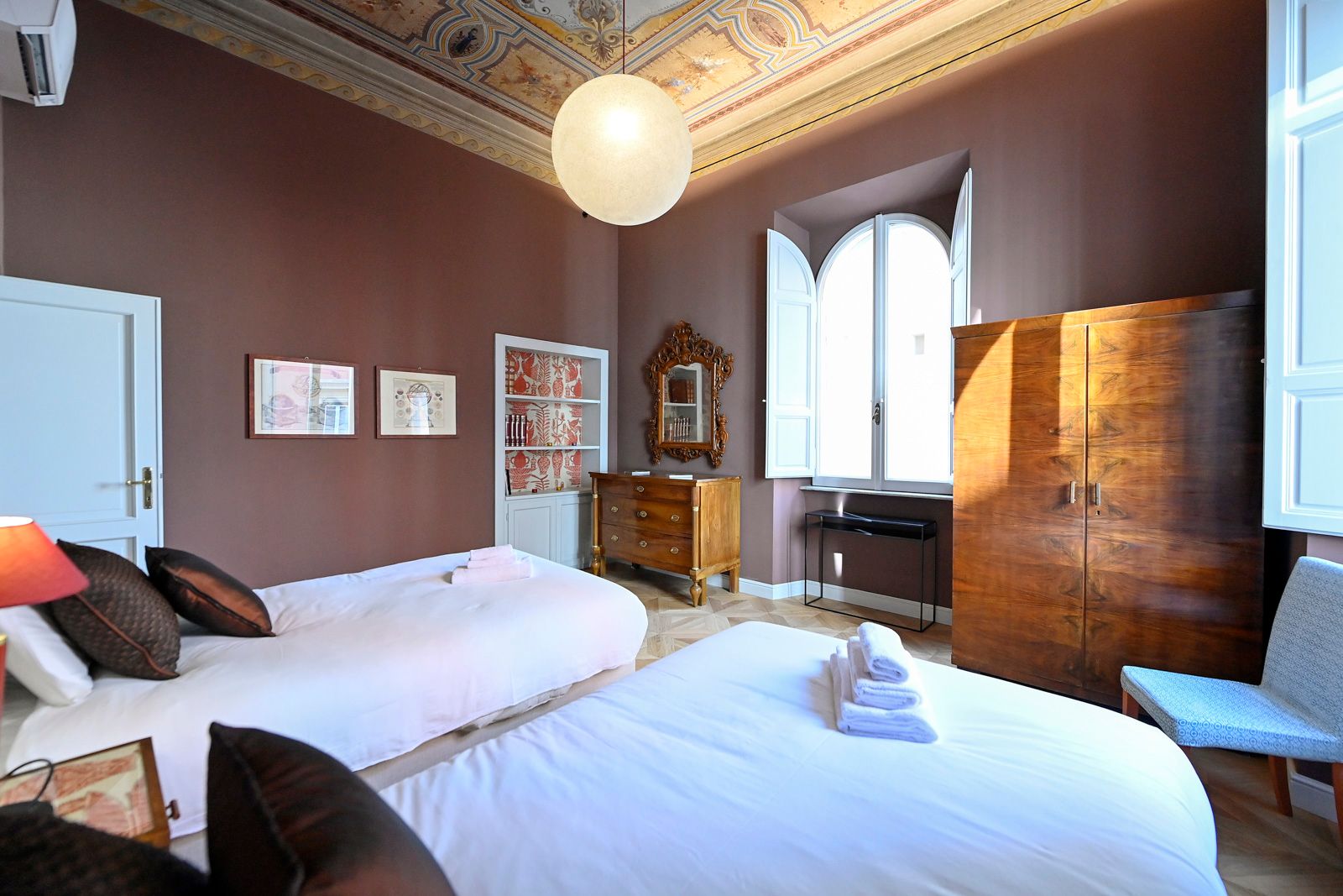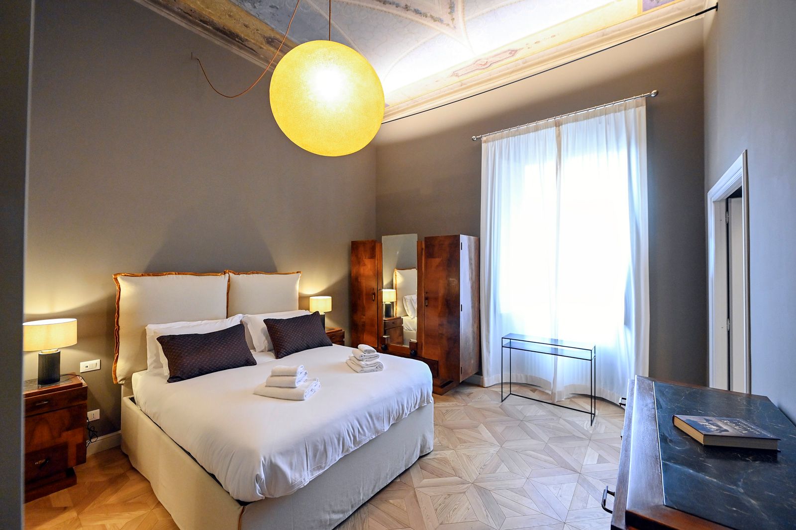This elegant apartment offers a unique stay in Rome. It’s centrally located between major sights including the Trevi Fountain and the Basilica Papale di Santa Maria Maggiore, with a Metro station just four minutes away – you can easily explore the city. The apartment is quiet and comfortable, an elegant escape in a bustling capital city. We love the classic architectural elements, including stunning frescoed ceilings, juxtaposed with bold splashes of colour and modern art.