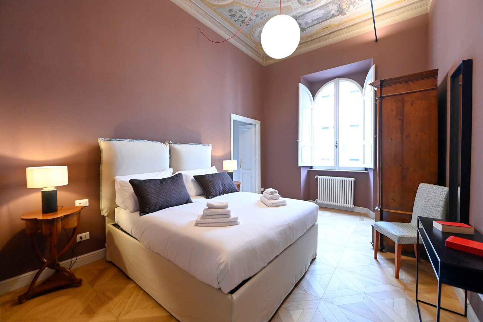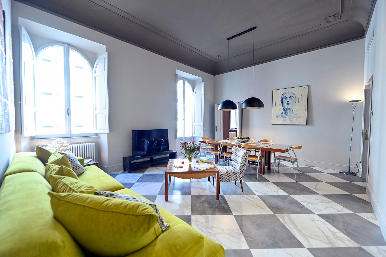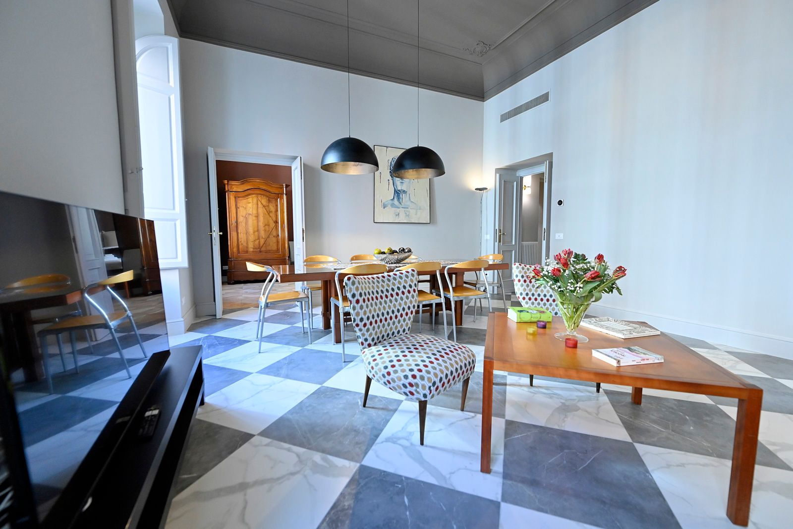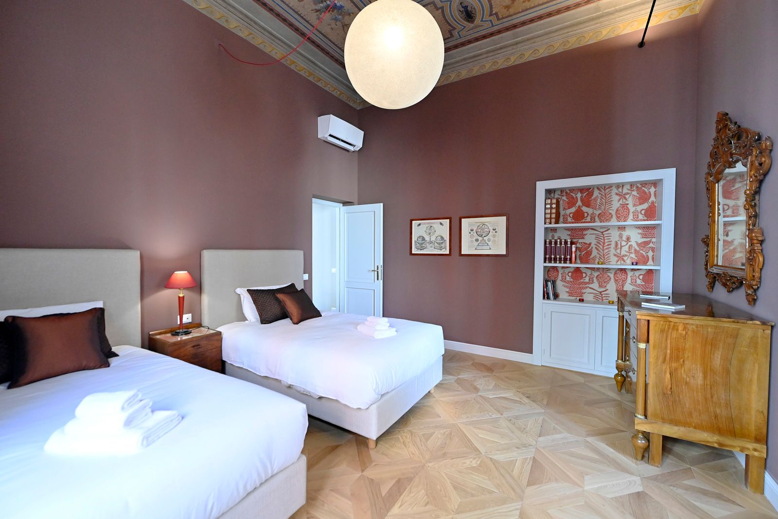 This elegant apartment offers a unique stay in Rome. It’s centrally located between major sights including the Trevi Fountain and the Basilica Papale di Santa Maria Maggiore, with a Metro station just four minutes away – you can easily explore the city. The apartment is quiet and comfortable, an elegant escape in a bustling capital city. We love the classic architectural elements, including stunning frescoed ceilings, juxtaposed with bold splashes of colour and modern art.