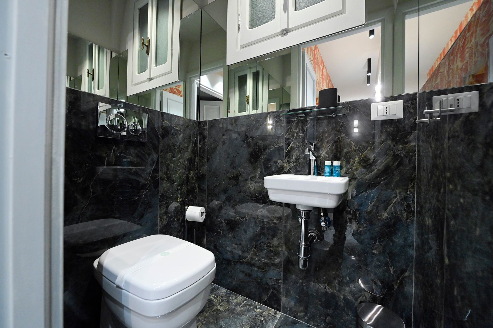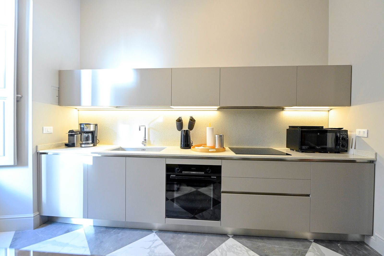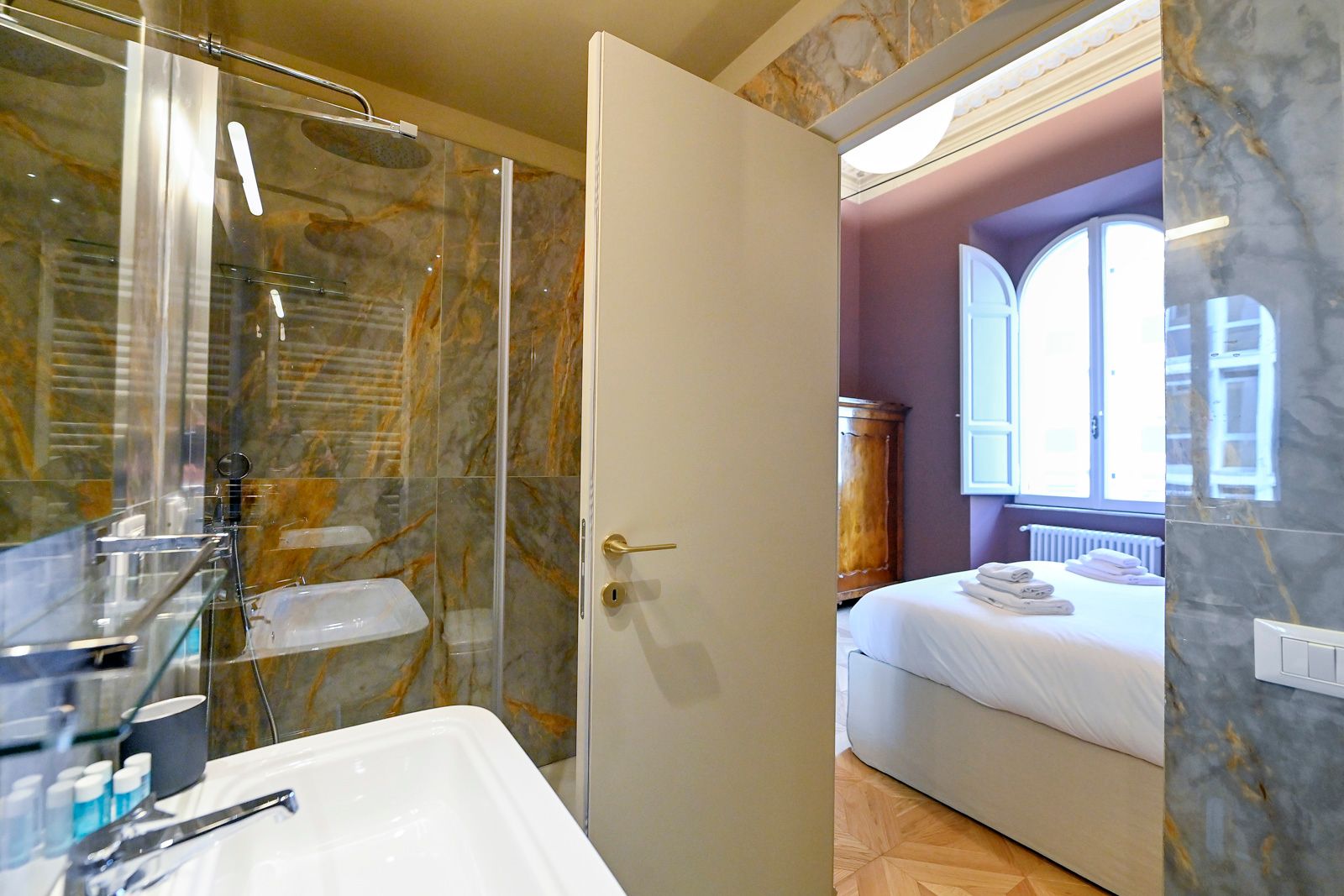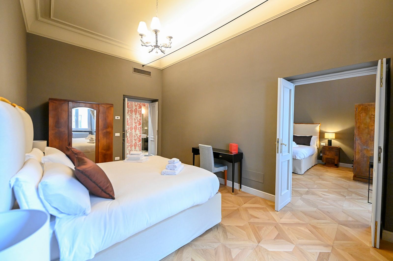 This elegant apartment offers a unique stay in Rome. It’s centrally located between major sights including the Trevi Fountain and the Basilica Papale di Santa Maria Maggiore, with a Metro station just four minutes away – you can easily explore the city. The apartment is quiet and comfortable, an elegant escape in a bustling capital city. We love the classic architectural elements, including stunning frescoed ceilings, juxtaposed with bold splashes of colour and modern art.