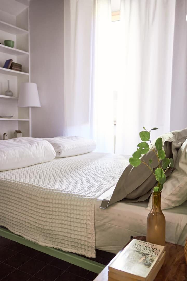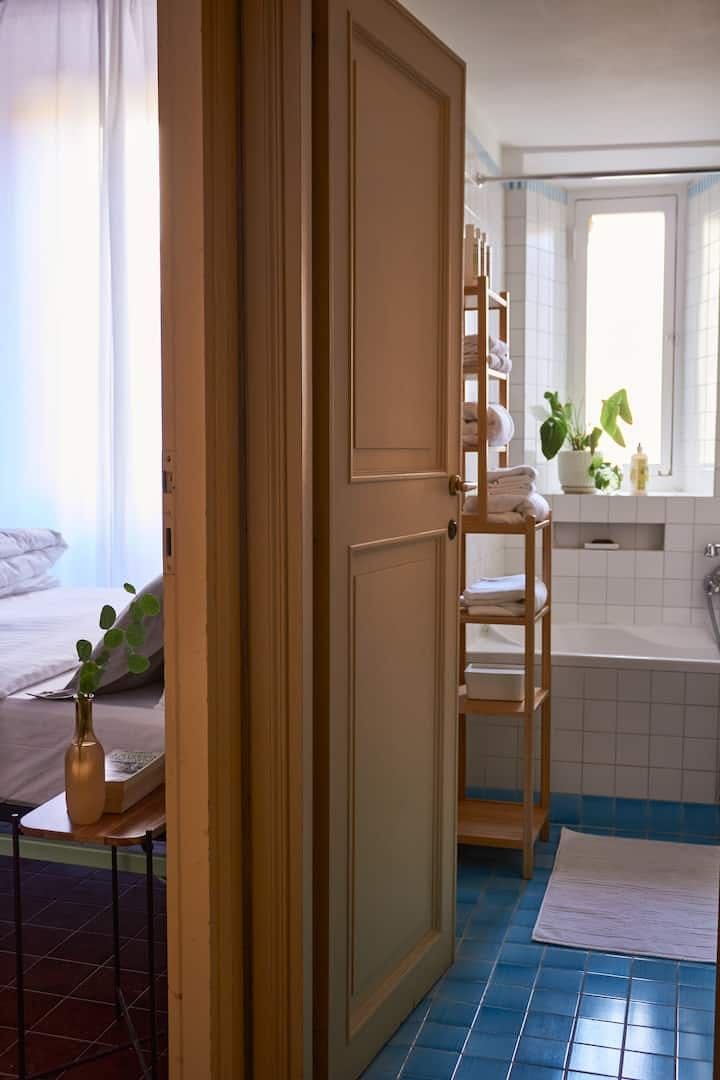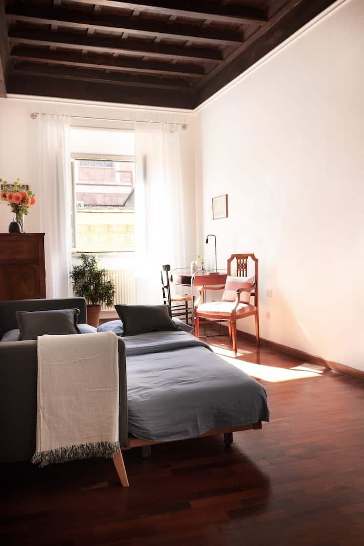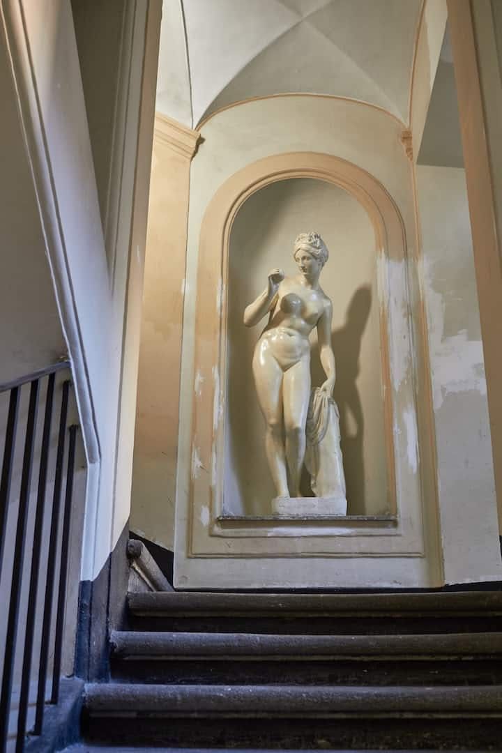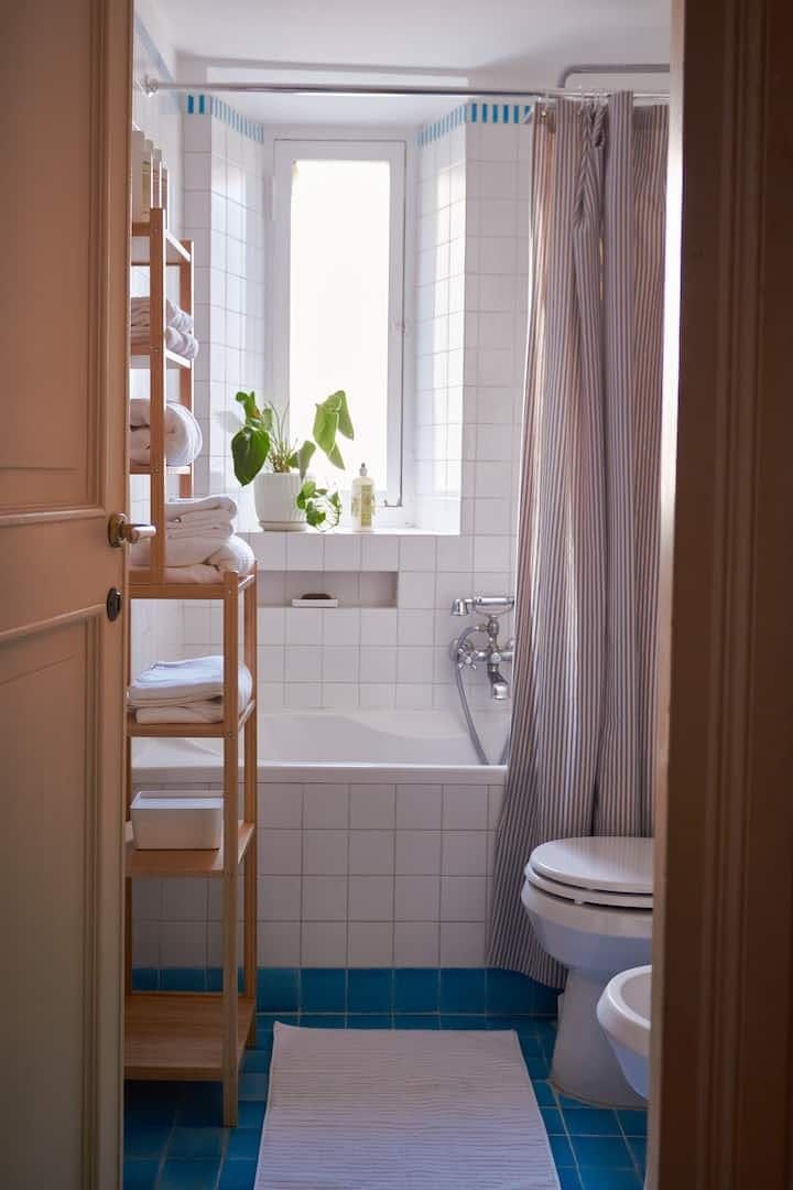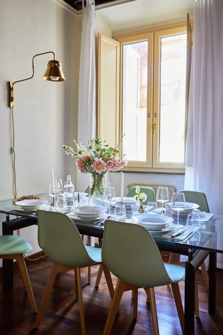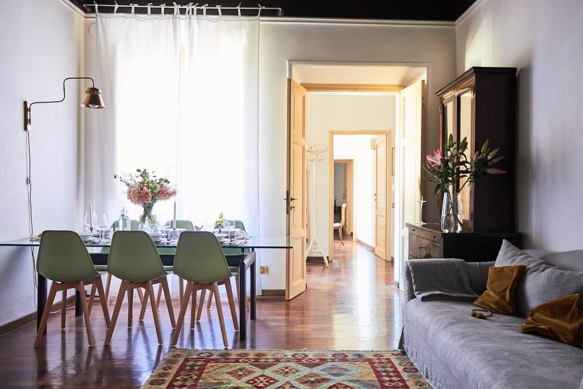 There’s no better way to embrace the history of Rome than to stay in a former 17th-century palace. This apartment’s building embraces the spirit of the “grandezza romana” with its ornate doorway just next to a local pizzeria and marble statues in the ancient stairwell. Stepping into the apartment itself you’re met with grand, high ceilings and a traditional parquet floor. Old double doors let the space flow from the living room, to the dining room and a bijou little kitchen. You’re in a prime location here too. Apart from the buzzing pizzeria literally on your doorstep, there is myriad local trattoria serving up plates of carbonara and tiramisu in the historic streets around you. It’s a seven-minute stroll to Piazza di Spanga (where the Spanish Steps are) and the Trevi Fountain is one minute's walk away, showing just how central this apartment is.