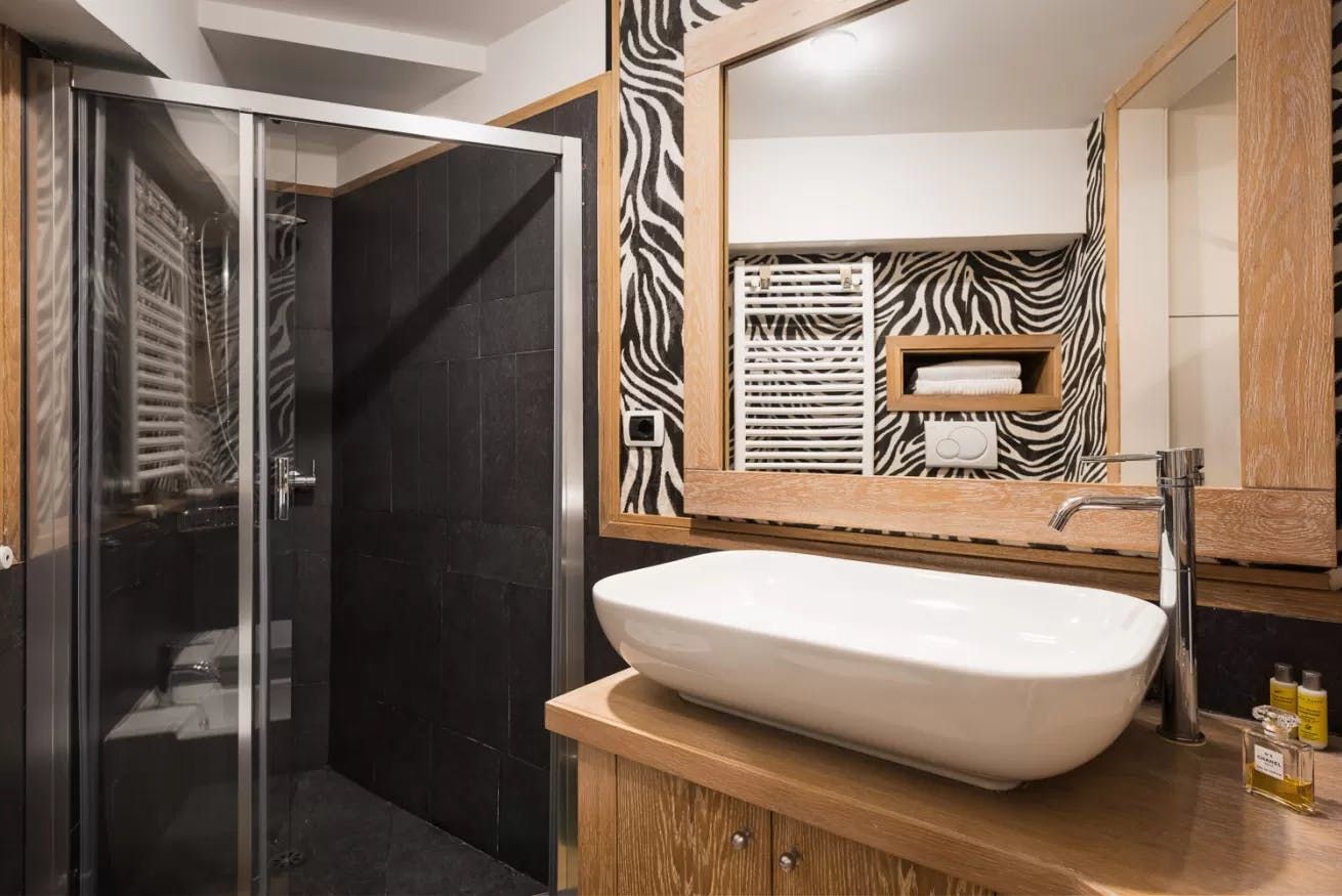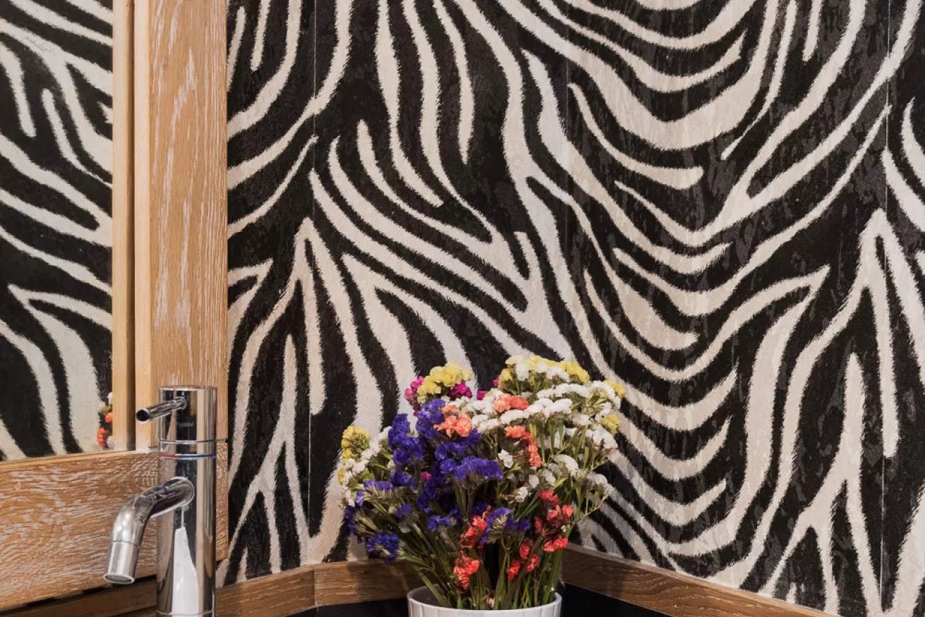 *Since the photoshoot the bathroom decor has been updated – there is no longer zebra print wallpaper