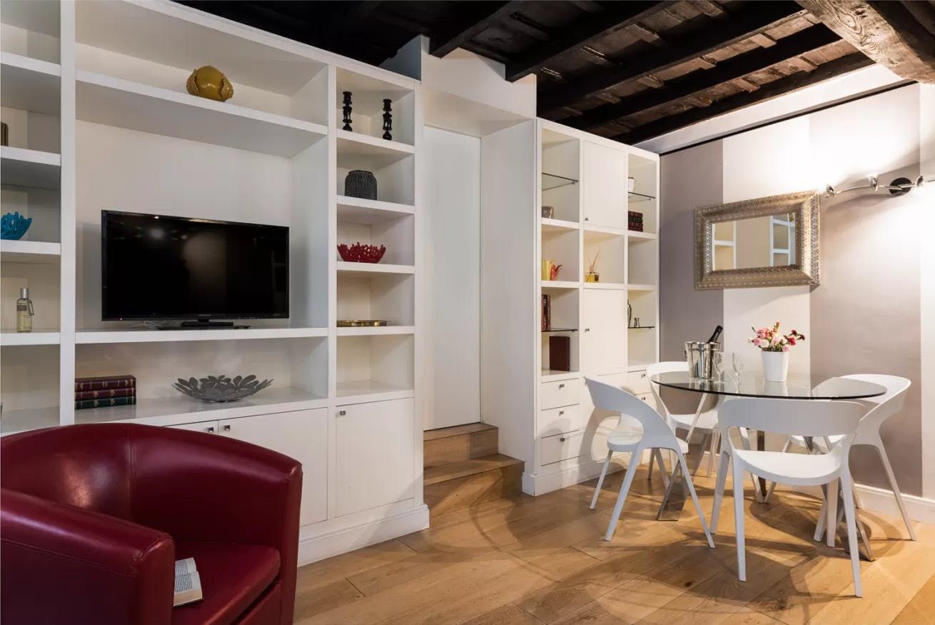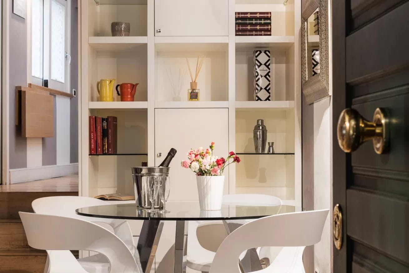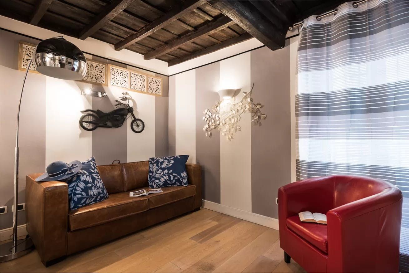 Inside, this apartment is as impressive as the location. You'll find characterful beams contrasting with modern furnishings, as well as tropical adornments and wallpapers. The real highlight here, we think, is the flower-festooned balcony. It's the perfect spot for a glass of Prosecco or an alfresco dinner of cacio e pepe. Later, relax on the leather sofa and plan your next day in the Eternal City.