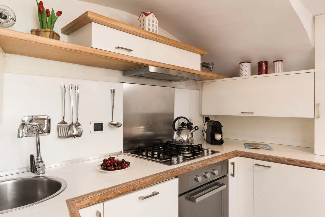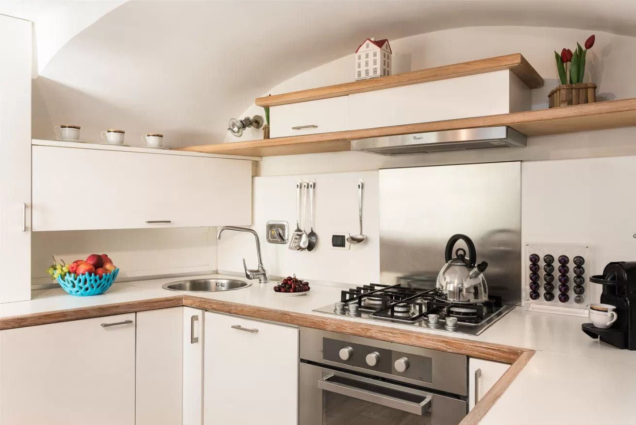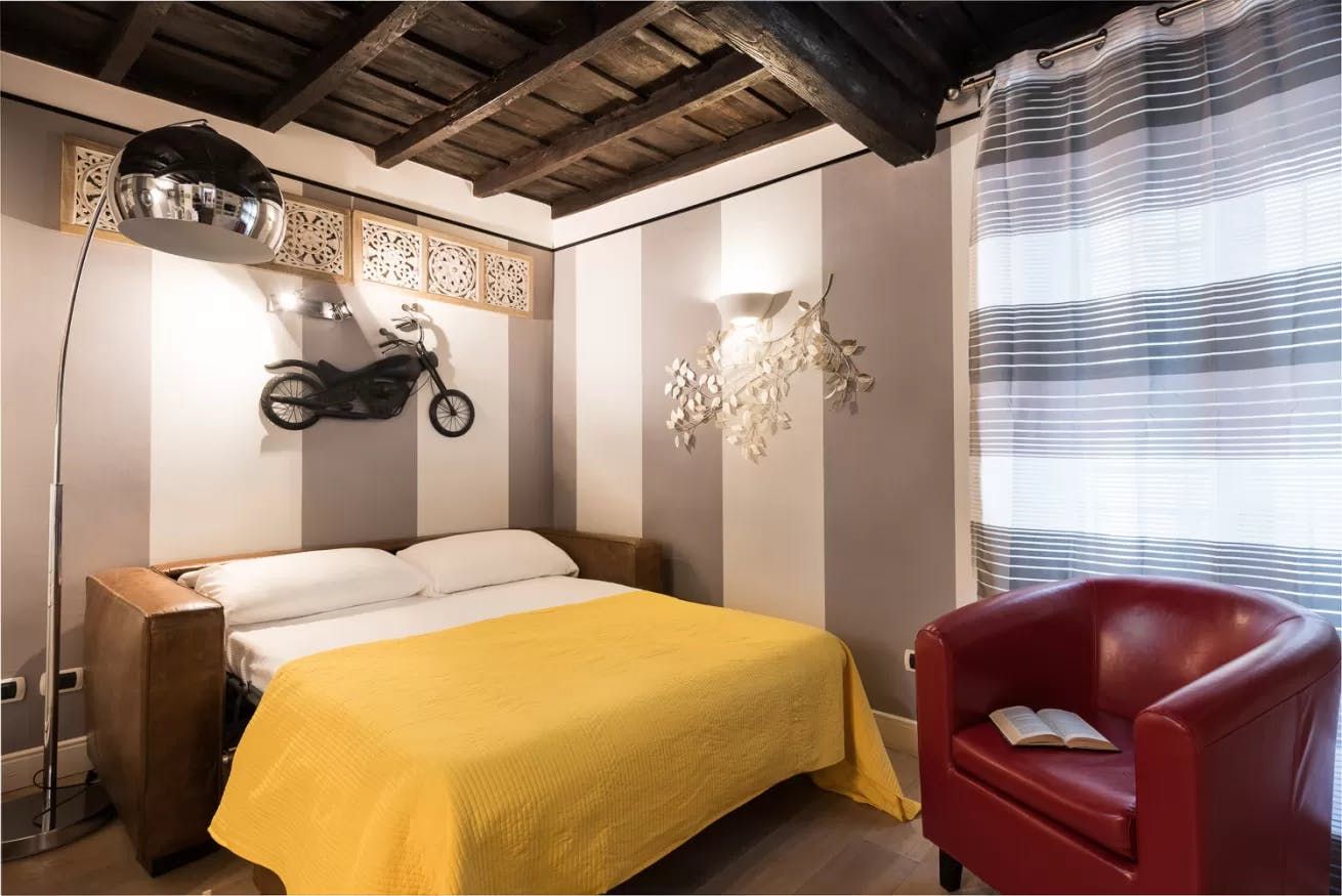 Inside, this apartment is as impressive as the location. You'll find characterful beams contrasting with modern furnishings, as well as tropical adornments and wallpapers. The real highlight here, we think, is the flower-festooned balcony. It's the perfect spot for a glass of Prosecco or an alfresco dinner of cacio e pepe. Later, relax on the leather sofa and plan your next day in the Eternal City.