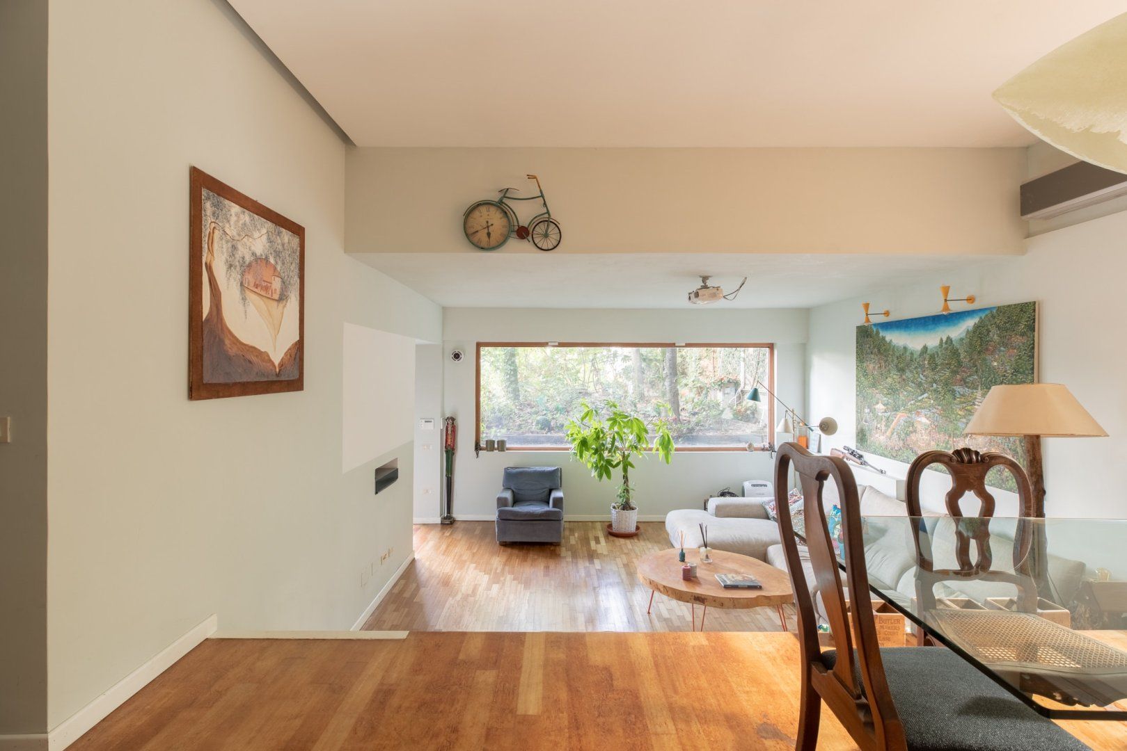 Set over two floors, this spacious home features elements of classic Italian opulence, mixed in with a modern edge. An enormous window (with views of leafy greenery) illuminates the living space, where rich hardwood flooring and antique-style dining chairs offer traditional elegance. But the L-shaped sofa and glass table-top say otherwise. And to keep you occupied in this peaceful house, make the most of the library, an iMac, projector, and Naim Muso stereo.