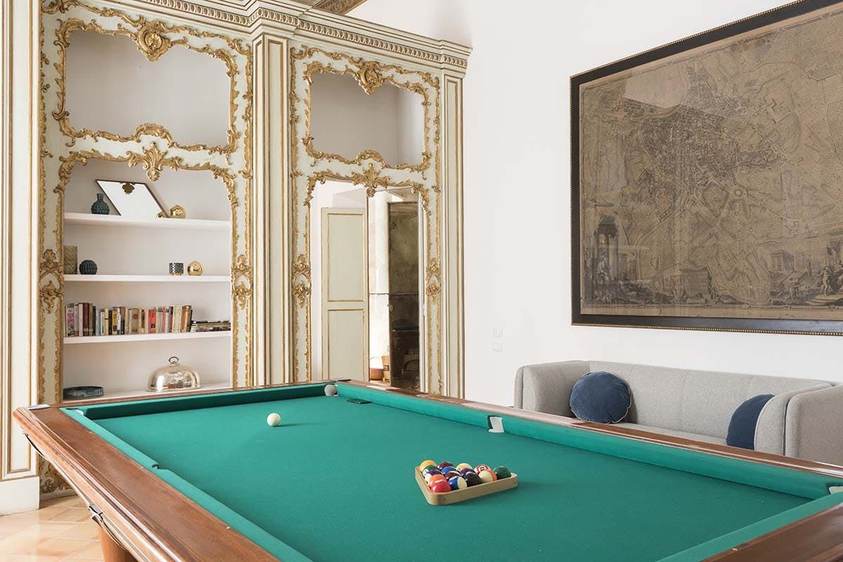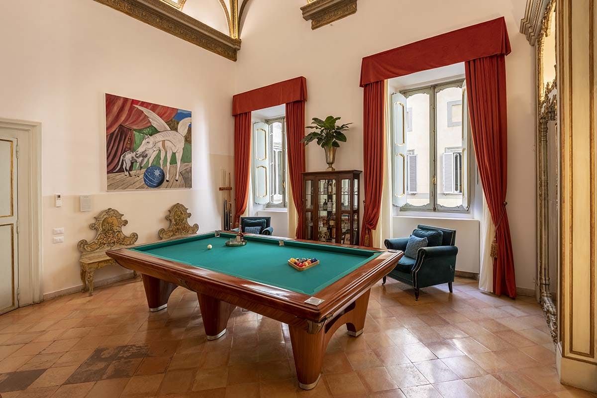The vast living room is the jewel in the crown. Here, play billiards beneath museum-grade frescoes painted by many of the Baroque era's most famous artists, with eye-catching contemporary pieces adorning the walls and elegant furnishings sitting seamlessly alongside ornate original features.