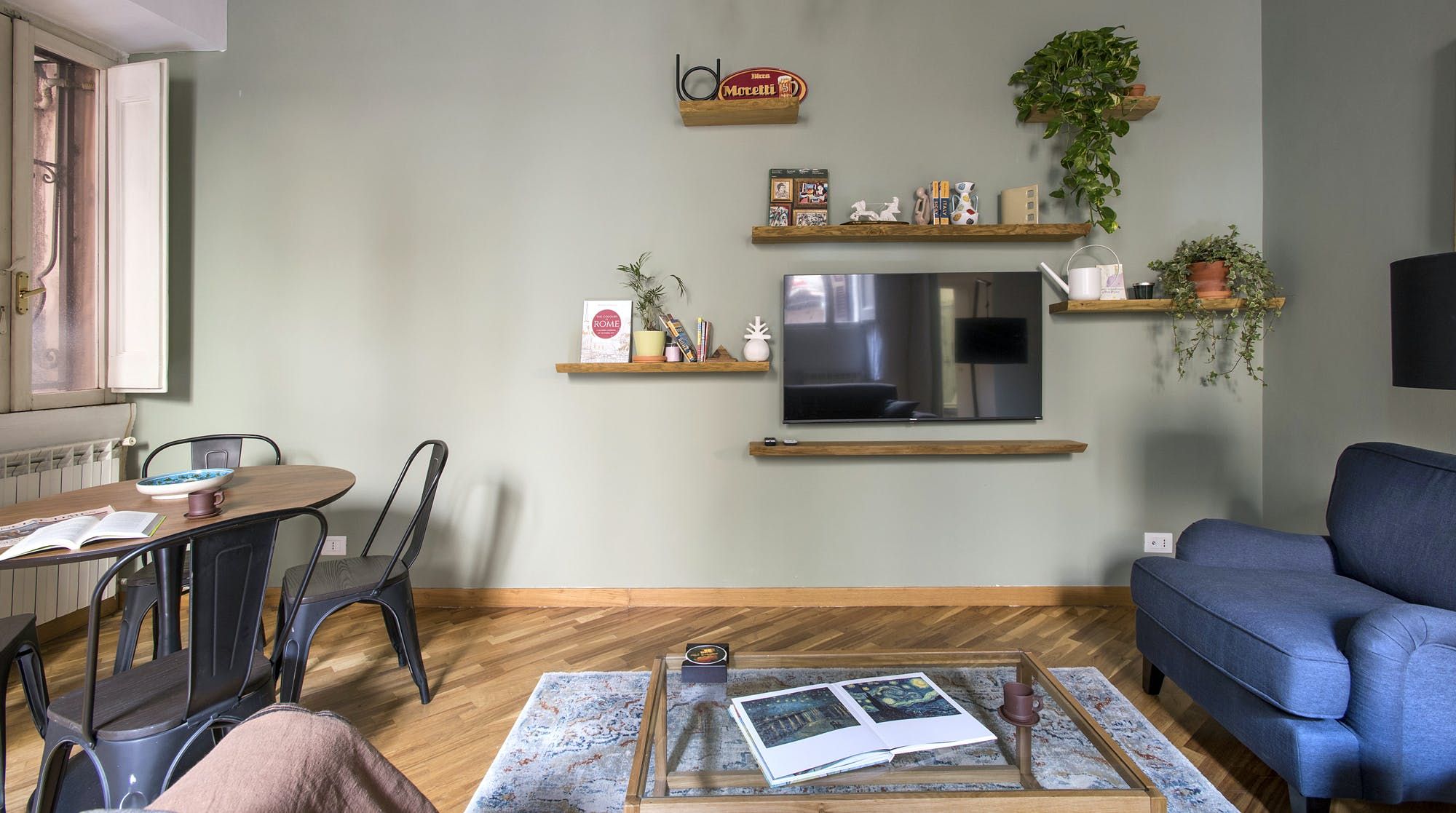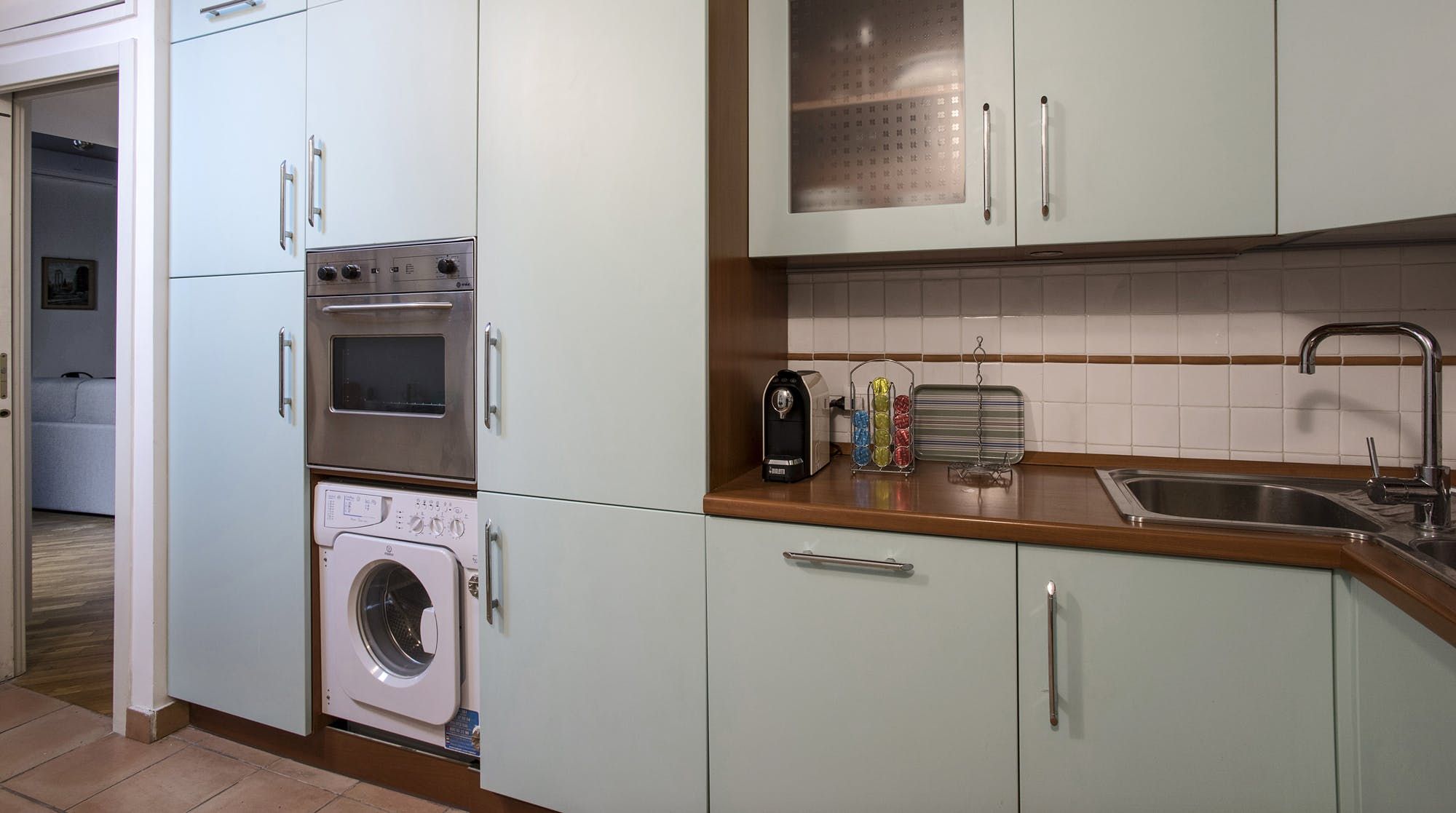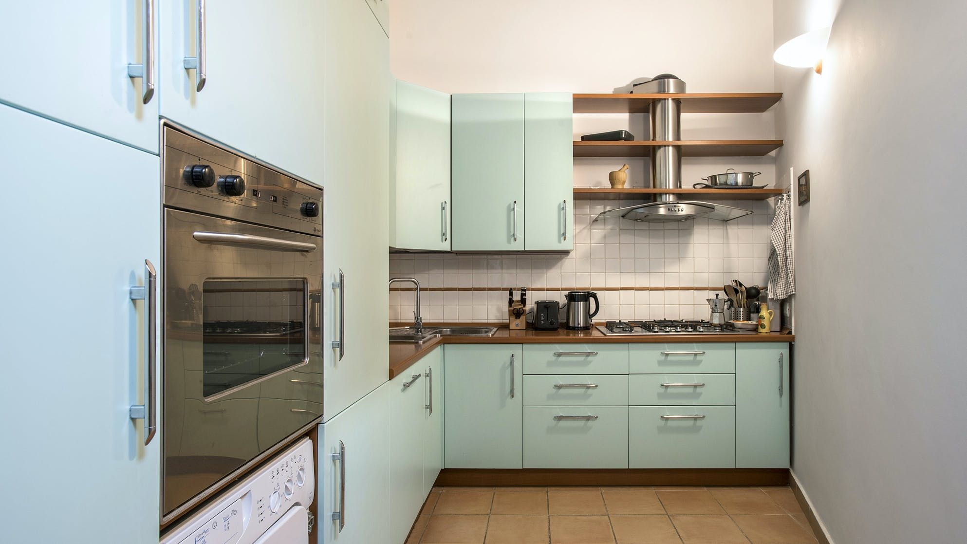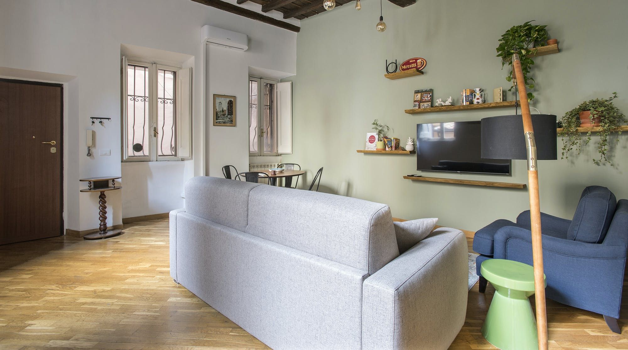 This stylish apartment places you in the heart of Rome for an unforgettable experience in the Italian capital. Prepare breakfast in the mint green kitchen or head out to one of the nearby bakeries or cafes and grab something on your way to do some sightseeing. Those hoping to be a little productive during their stay can take advantage of the desk in the bedroom to get some work done remotely, so whether you're travelling for business or pleasure, this home can easily fulfil your wishes.