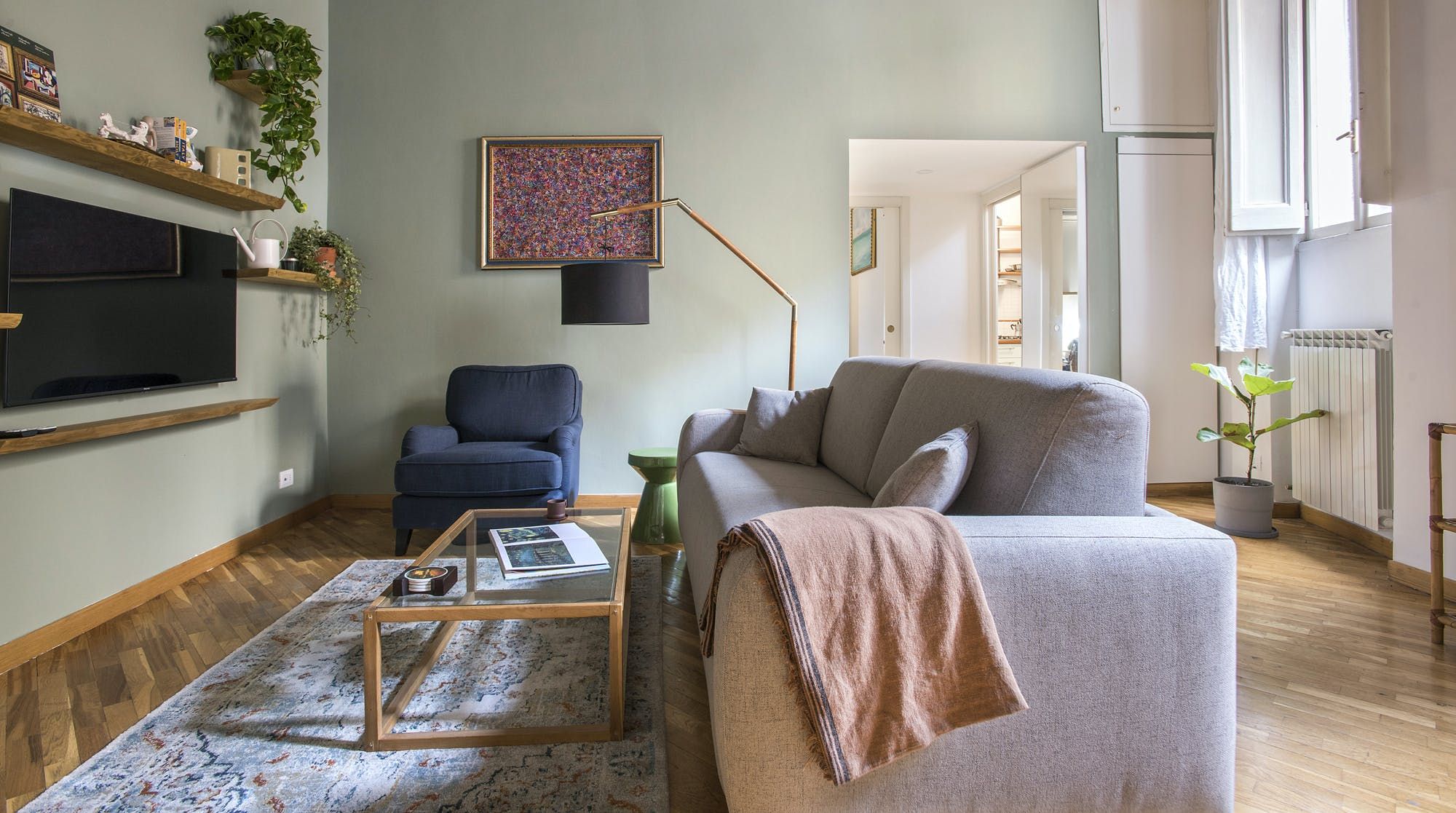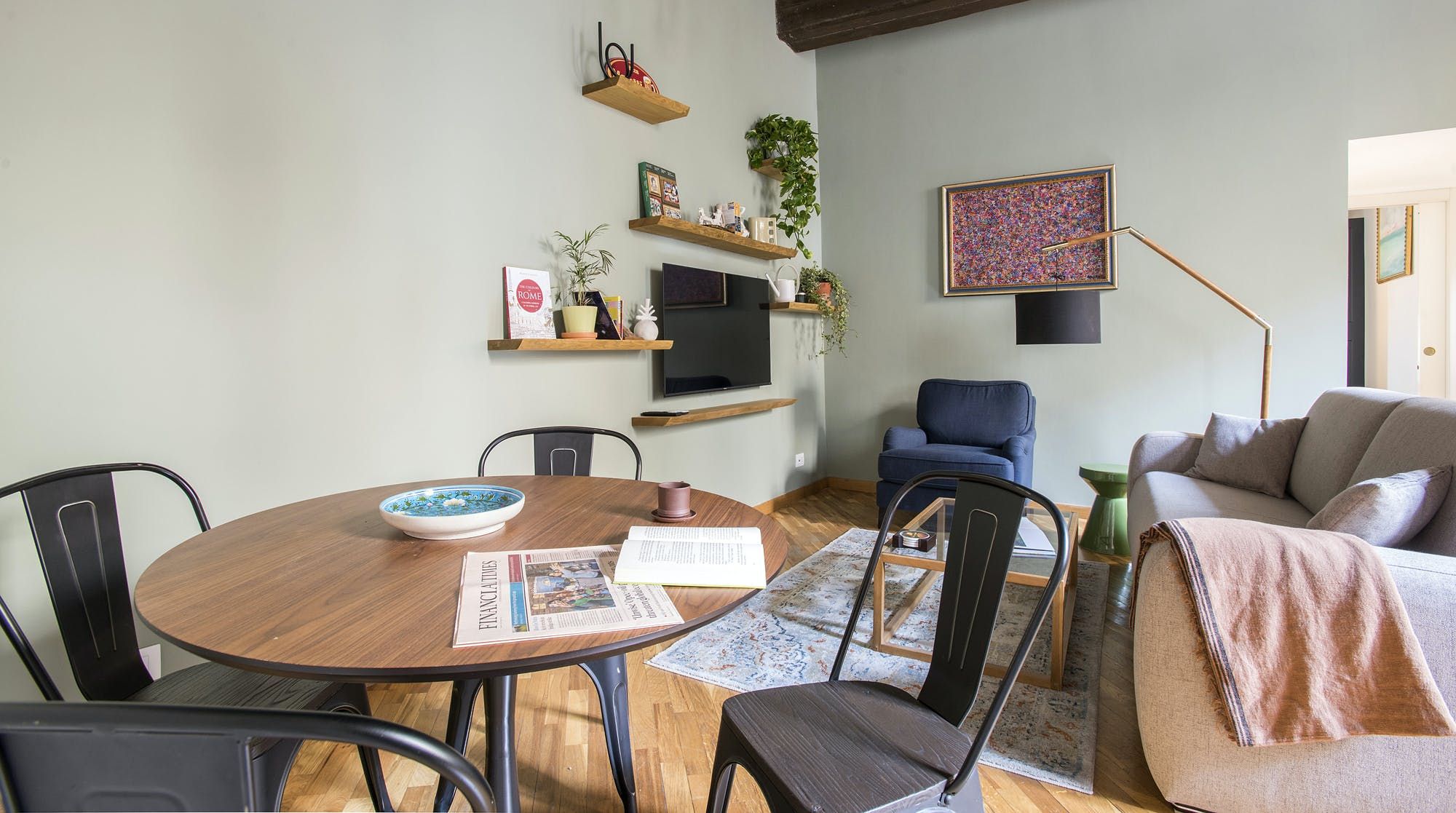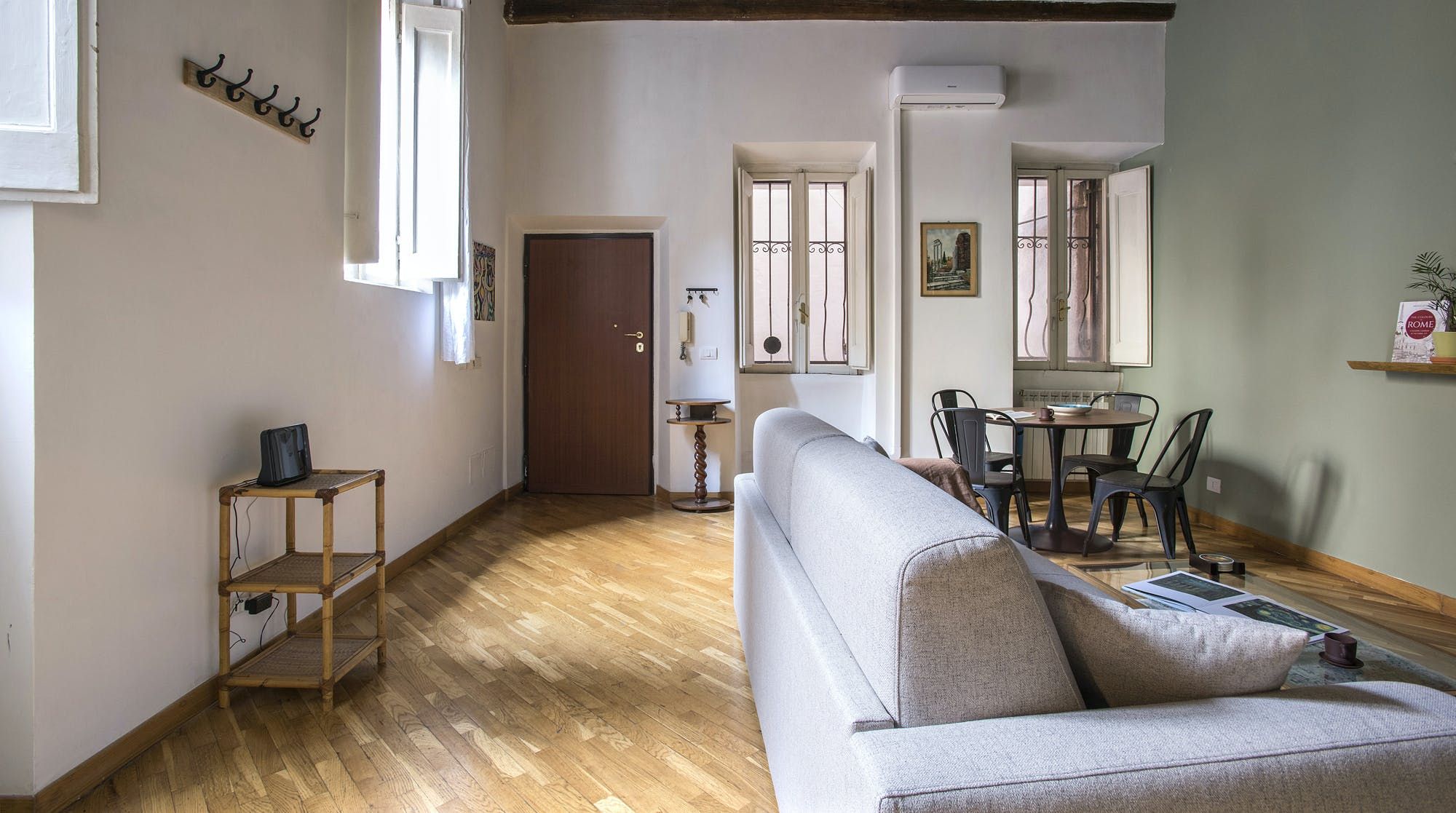 This stylish apartment places you in the heart of Rome for an unforgettable experience in the Italian capital. Prepare breakfast in the mint green kitchen or head out to one of the nearby bakeries or cafes and grab something on your way to do some sightseeing. Those hoping to be a little productive during their stay can take advantage of the desk in the bedroom to get some work done remotely, so whether you're travelling for business or pleasure, this home can easily fulfil your wishes.