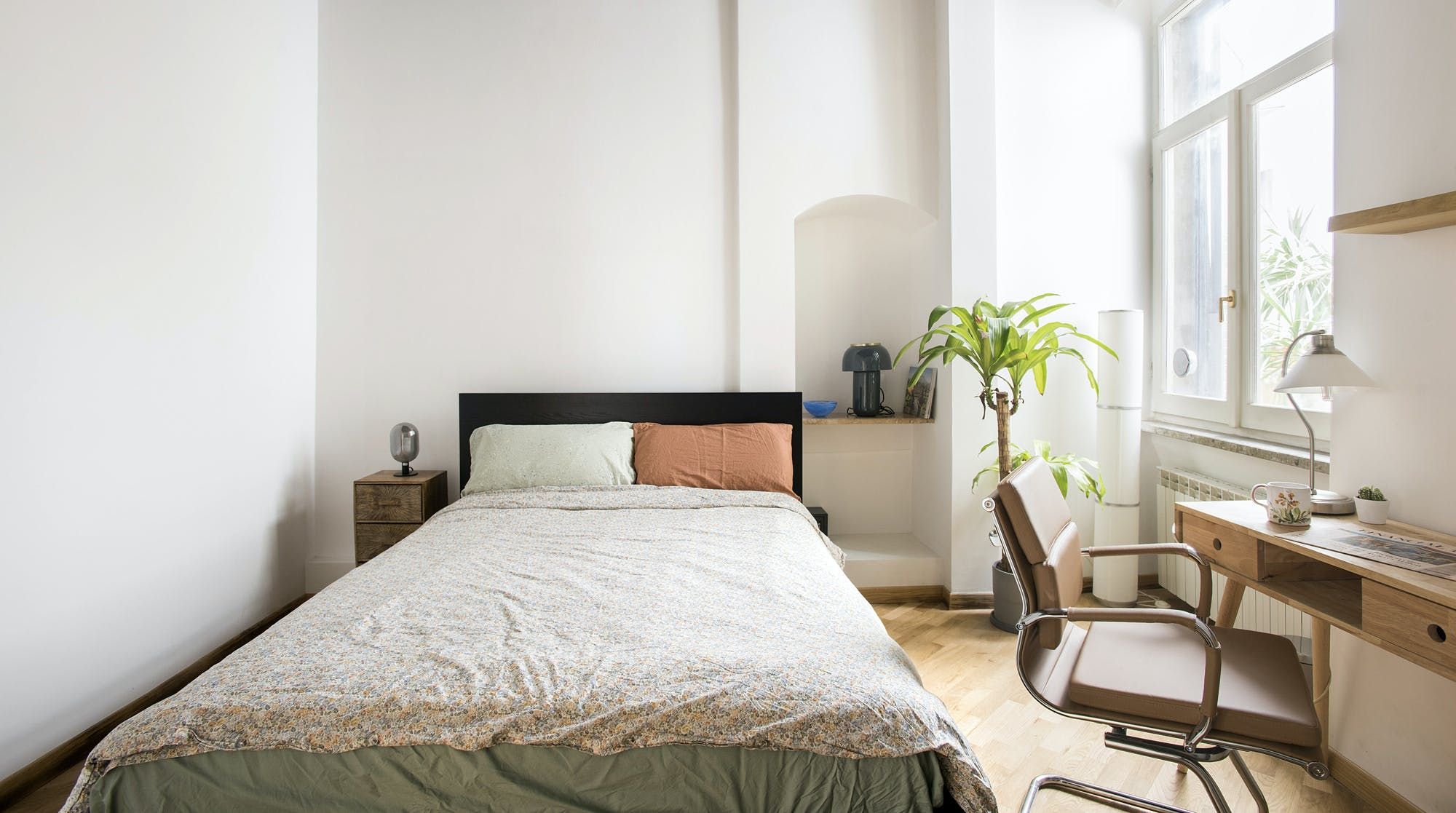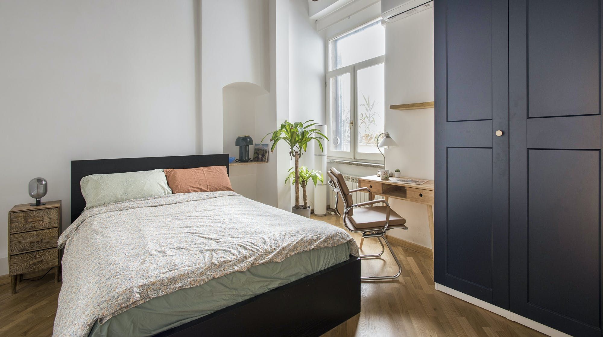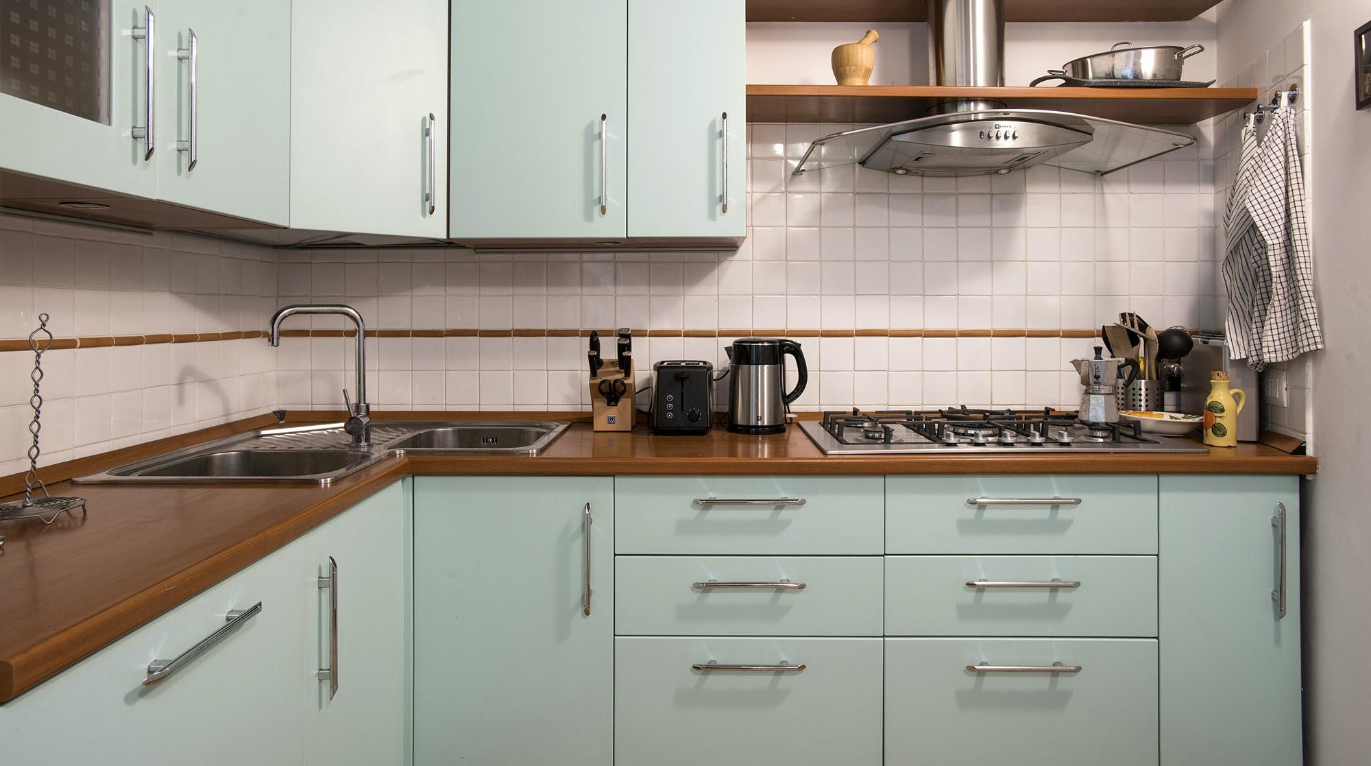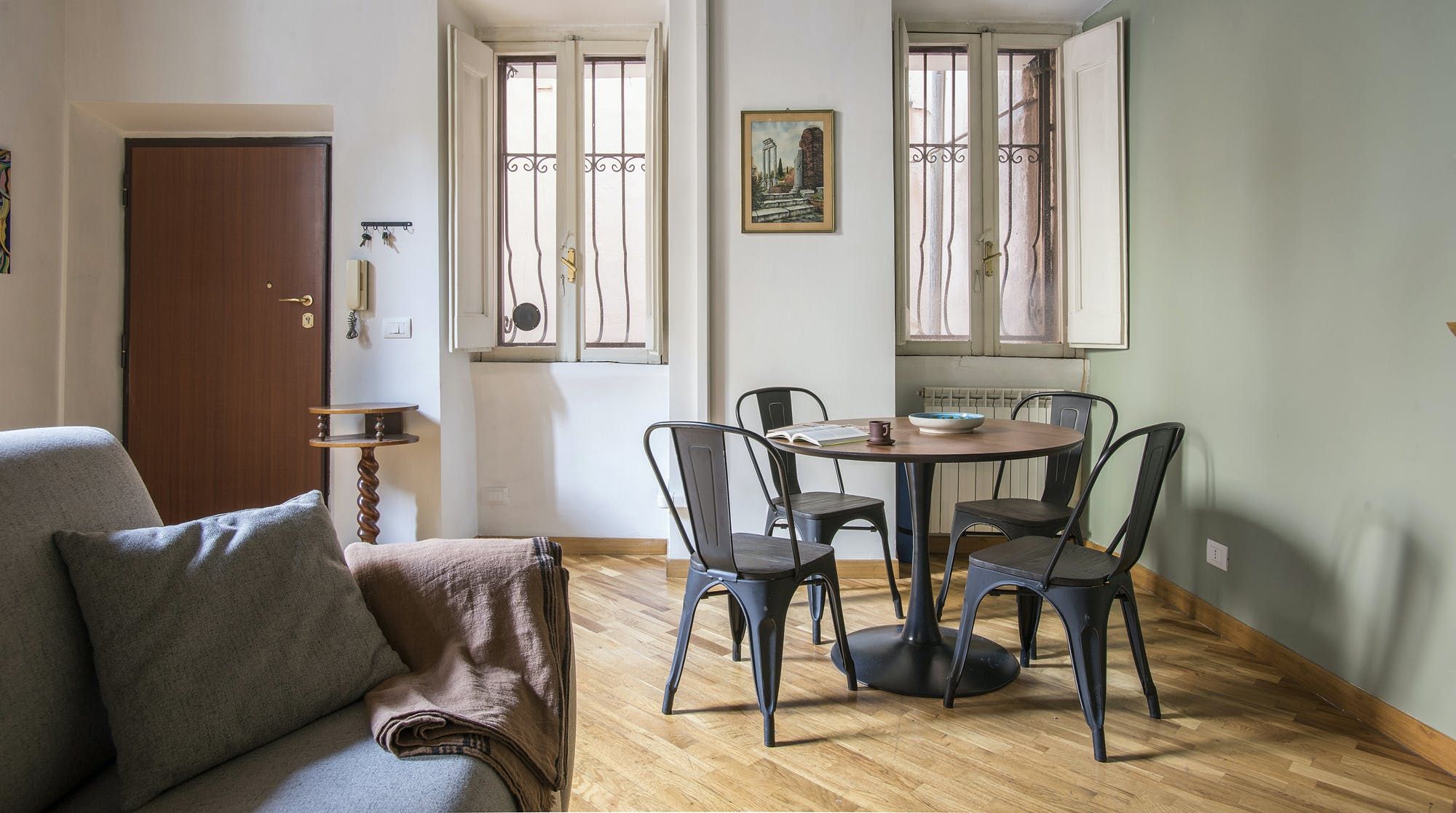 This stylish apartment places you in the heart of Rome for an unforgettable experience in the Italian capital. Prepare breakfast in the mint green kitchen or head out to one of the nearby bakeries or cafes and grab something on your way to do some sightseeing. Those hoping to be a little productive during their stay can take advantage of the desk in the bedroom to get some work done remotely, so whether you're travelling for business or pleasure, this home can easily fulfil your wishes.