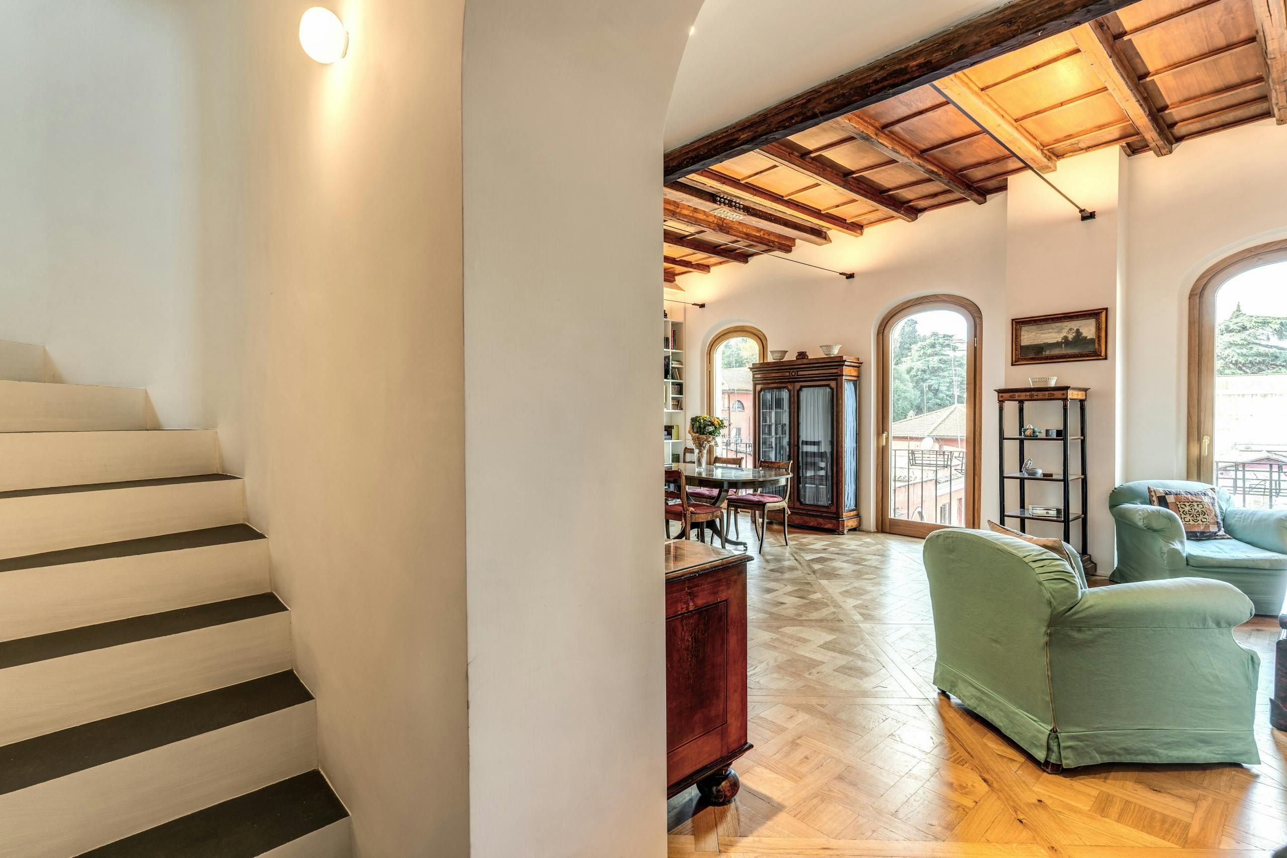 Tucked into the heart of Trastevere, this home is perfectly located for exploring the city, with trattorias and shops on your doorstep and Gianicolo Hill, the Botanical Gardens and the Vatican all within walking distance. Sure, the traditional style of this apartment, laid out over three floors, may not be everyone’s cup of tea, but you’ll find everything needed for a comfortable stay. And the cherry on top? It has to be the private terrace. Just the spot for sipping limoncello as you gaze out across the Eternal City after a busy day.