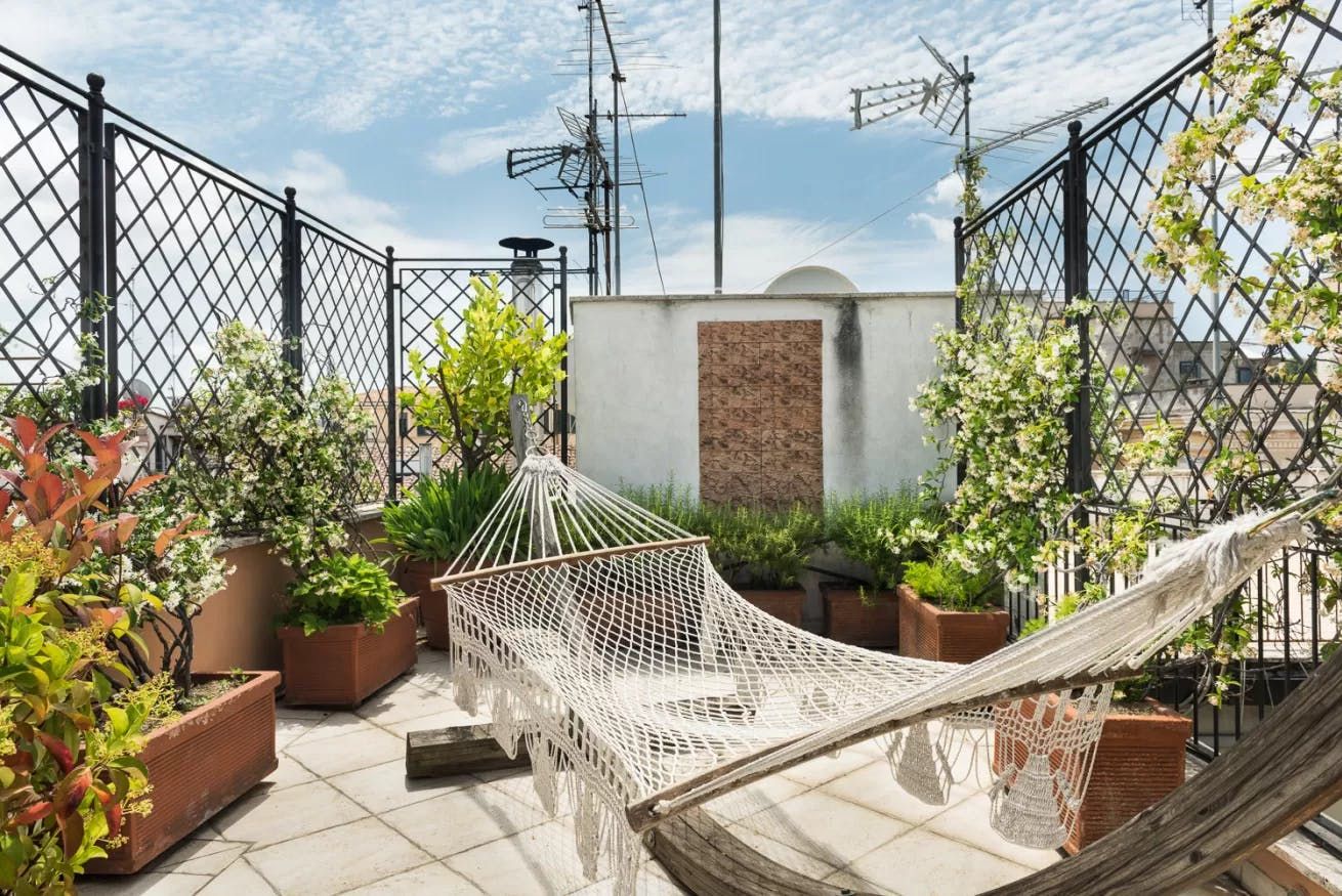 Even though beauty can be found wherever you go out on the streets of Rome, the home itself has a fair share to offer as well. Out on the terrace, we encourage you to watch the sunrise over the castle, and city beyond, from the comfort of the hammock, and when you’re not dining out, every meal can be enjoyed alfresco. There’s also a long balcony, adorned with begonias and geraniums, that you can hunker down on when you need some time for yourself. Spread over two floors, and with plenty of outdoor space, there’ll be more than enough room from everyone to claim a nook, albeit for reading, cooking, sketching, or catching up on series.
