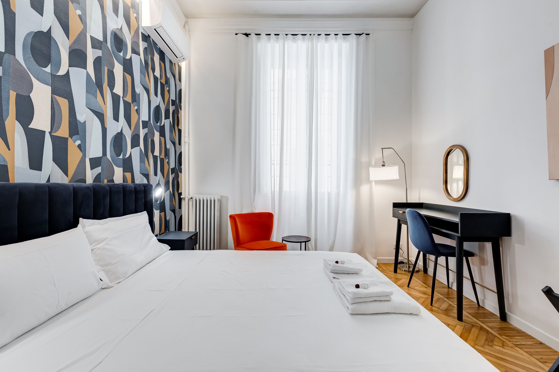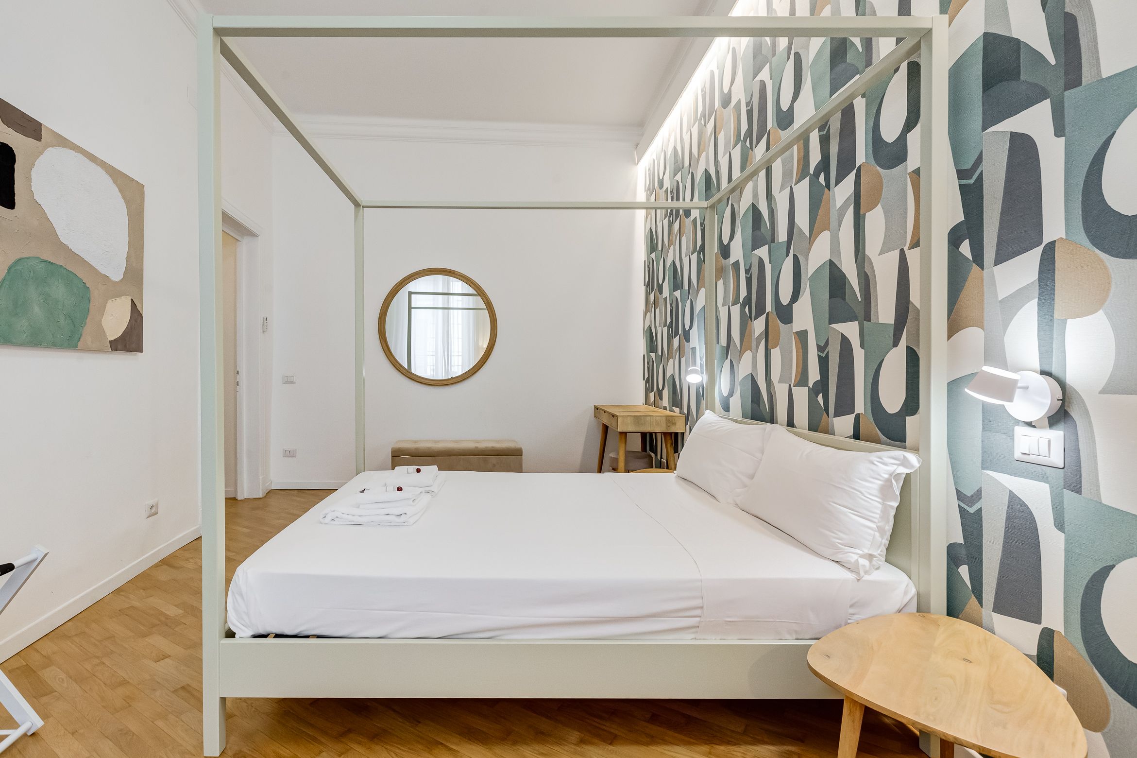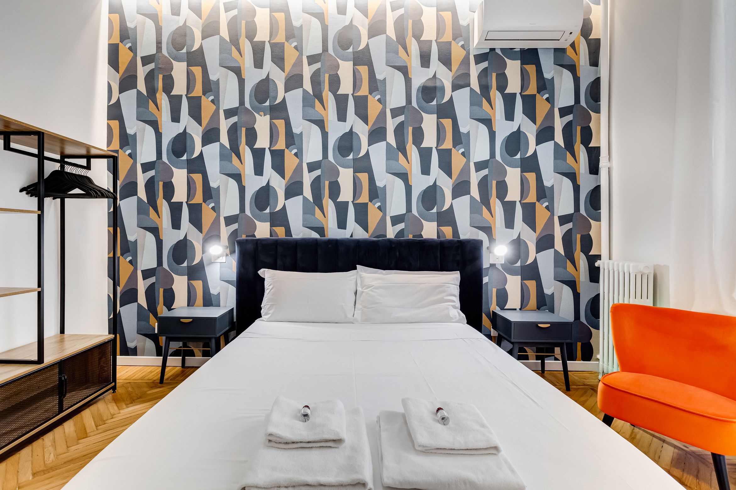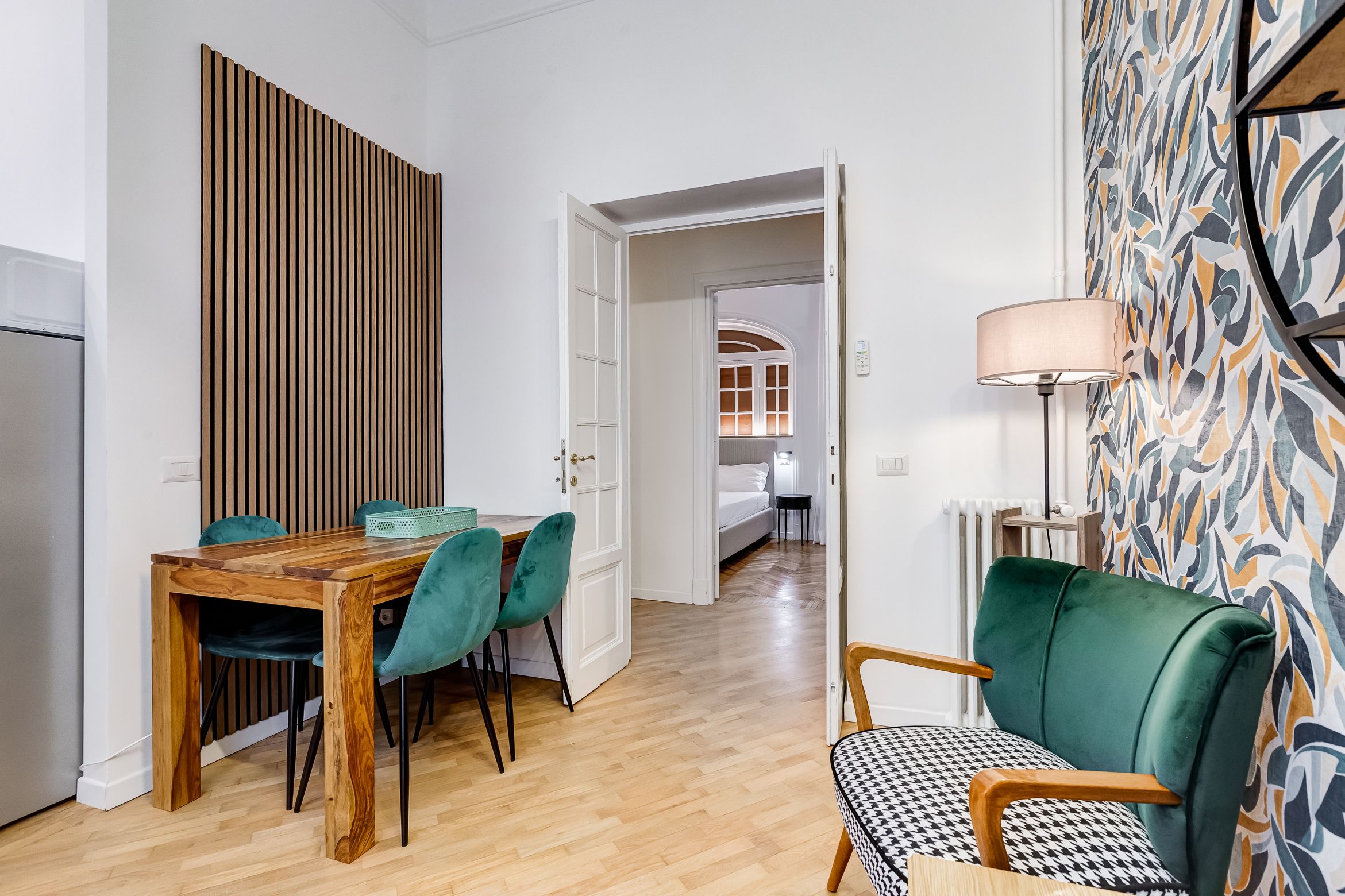 You'll find this charming apartment in Prati, one of Rome's most upscale neighbourhoods. Here, wine bars, boutique shops, and gourmet eateries line the streets, while must-visits like St. Peter's Basilica are within walking distance. The design inside is full of character, with a few contemporary twists like bold wallpaper and sleek bathrooms. It doesn't have the largest living space – most socialising will happen around the dining table – and the kitchen is compact but well-equipped. That said, we reckon you'll spend most of your time here out and about – especially since your host can arrange guided tours, cooking classes, and other fun-filled extras.