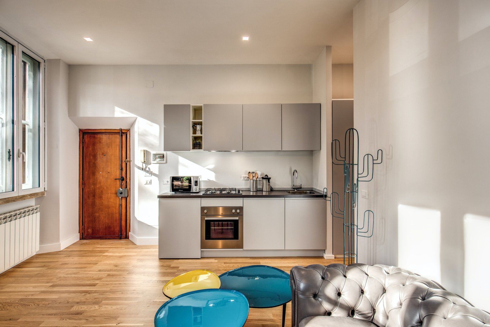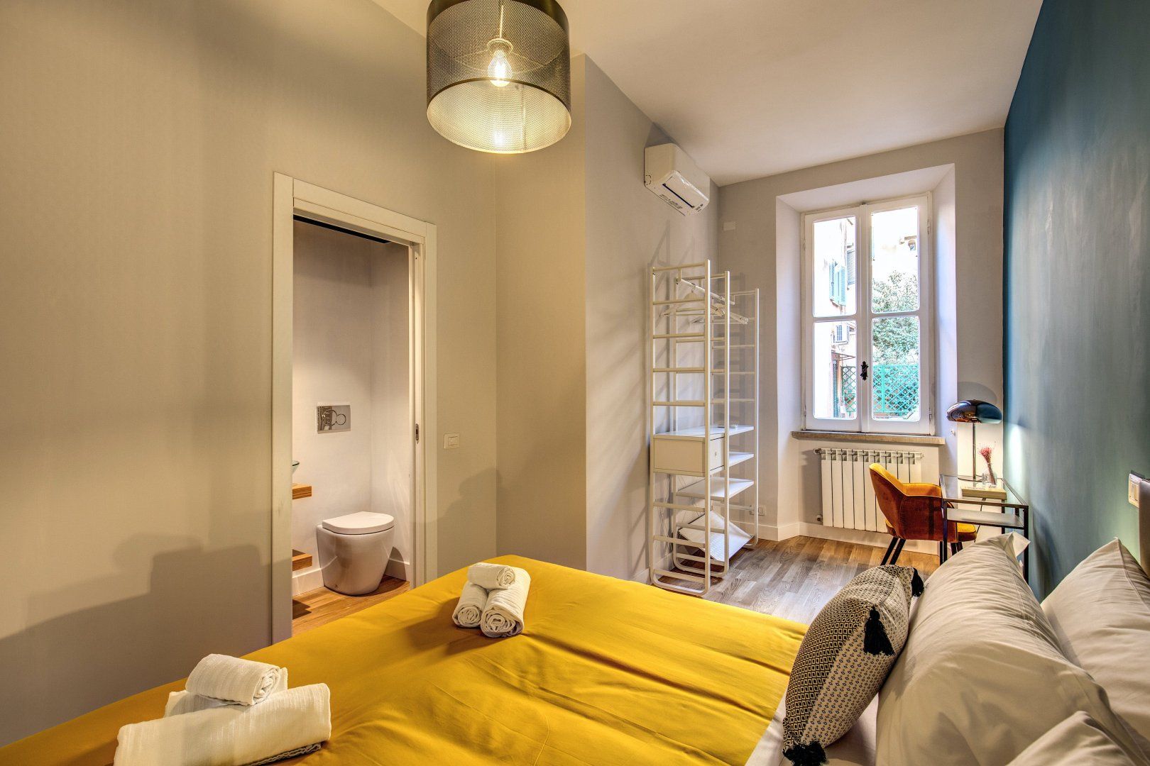 Back home, this newly renovated apartment feels like the perfect little hideaway after days amongst the city's hustle and bustle. Put your feet up in the light-filled living space – the leafy vistas reaching out to the River Tiber through the dual-aspect windows are a joy. While over in the two boutique-feel bedrooms, guests sharing will love the privacy of the separate ensuite bathrooms. And despite its central location, both rooms feel surprisingly quiet at night, so you can bank a good night's kip here. While for those planning to work or study during your stay, there's a handy desk space in one of the bedrooms with a charming view to boot.
