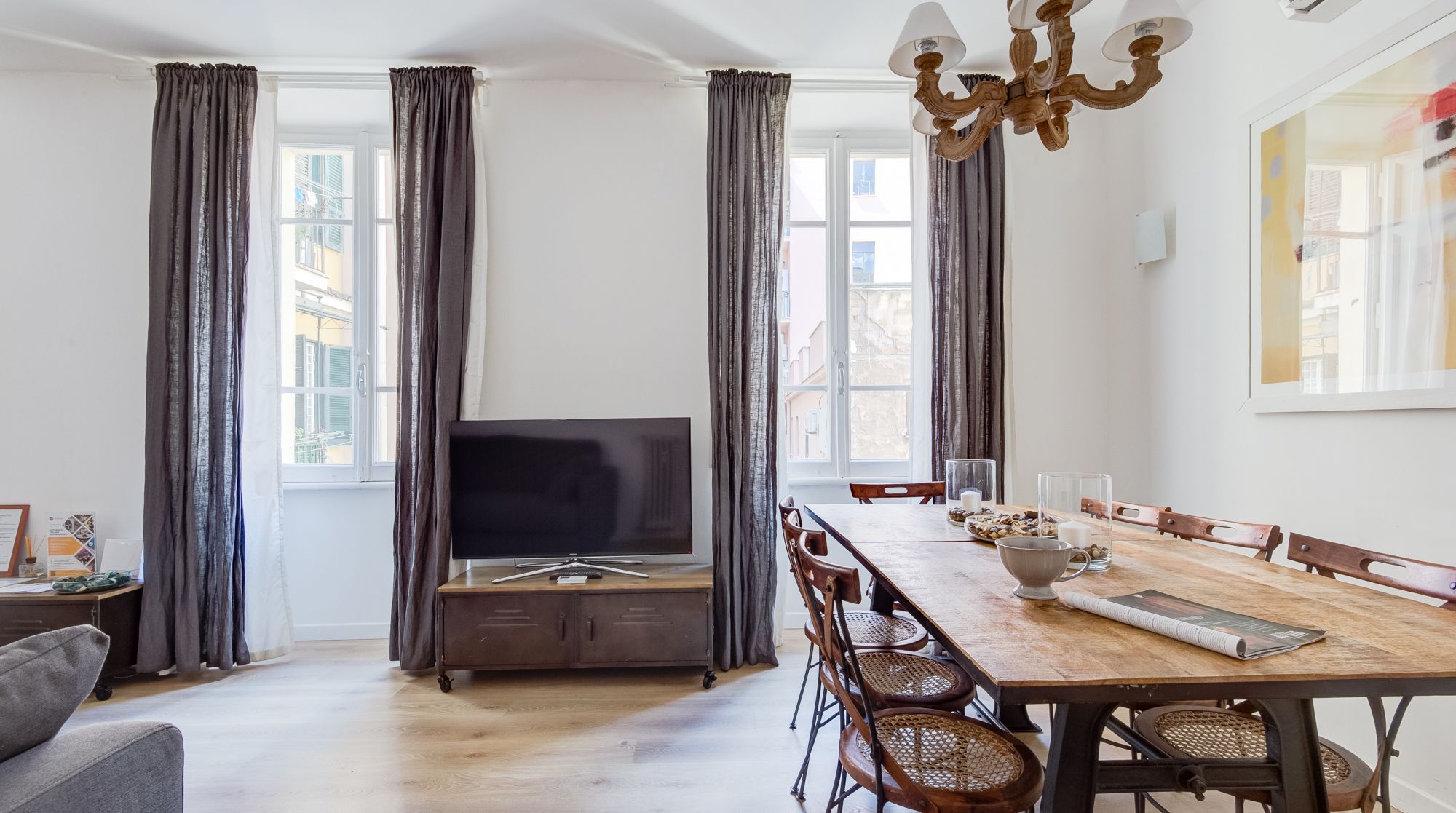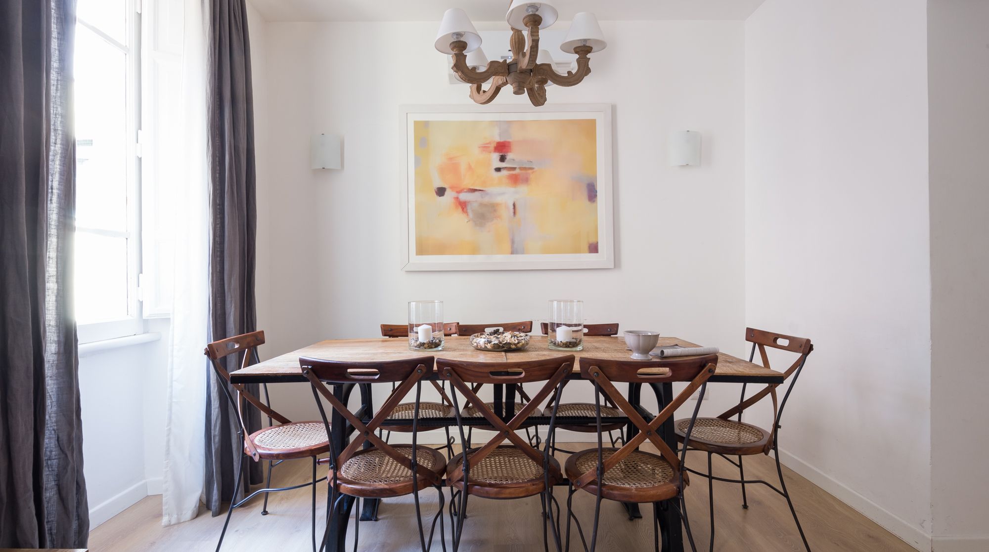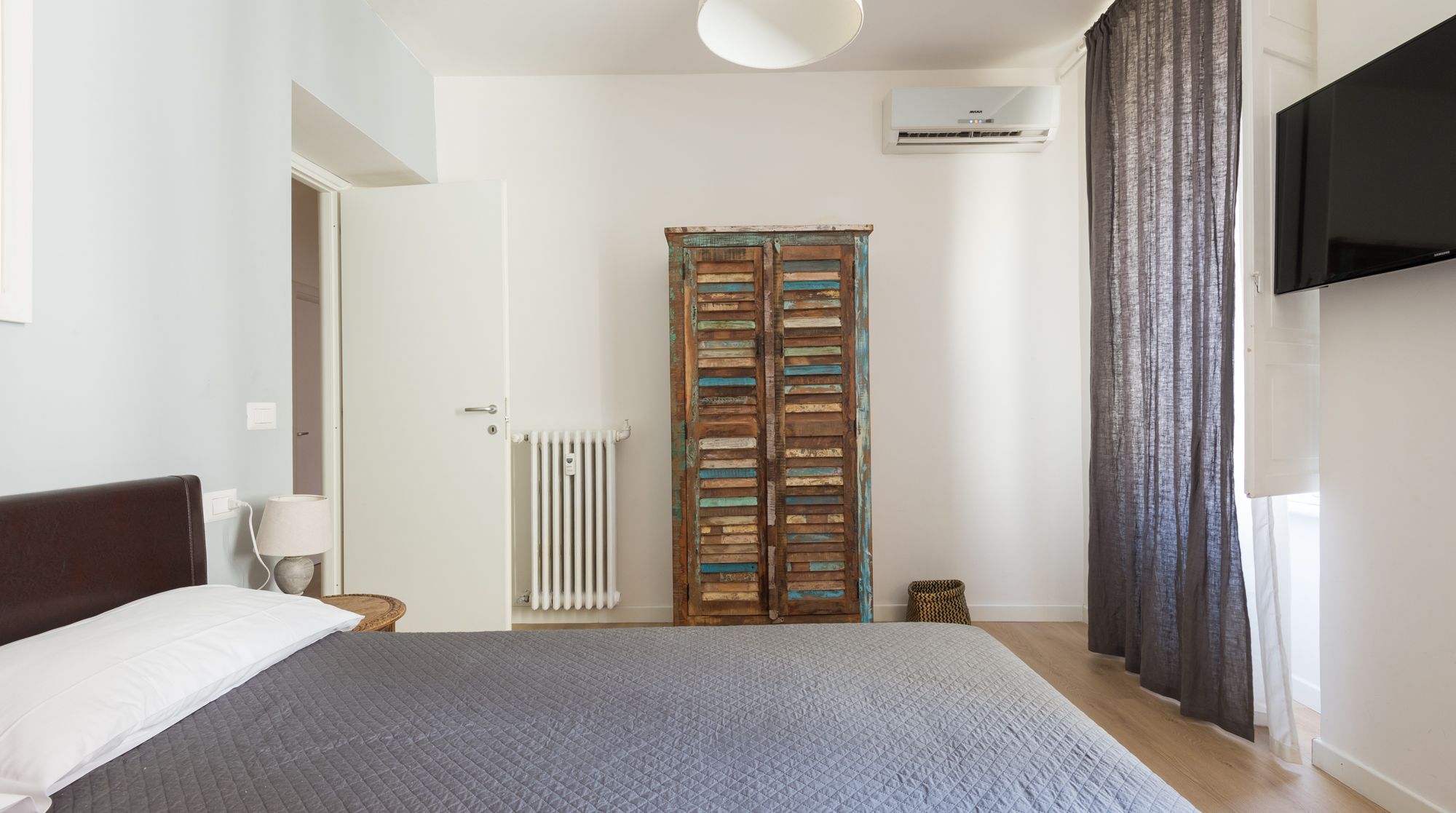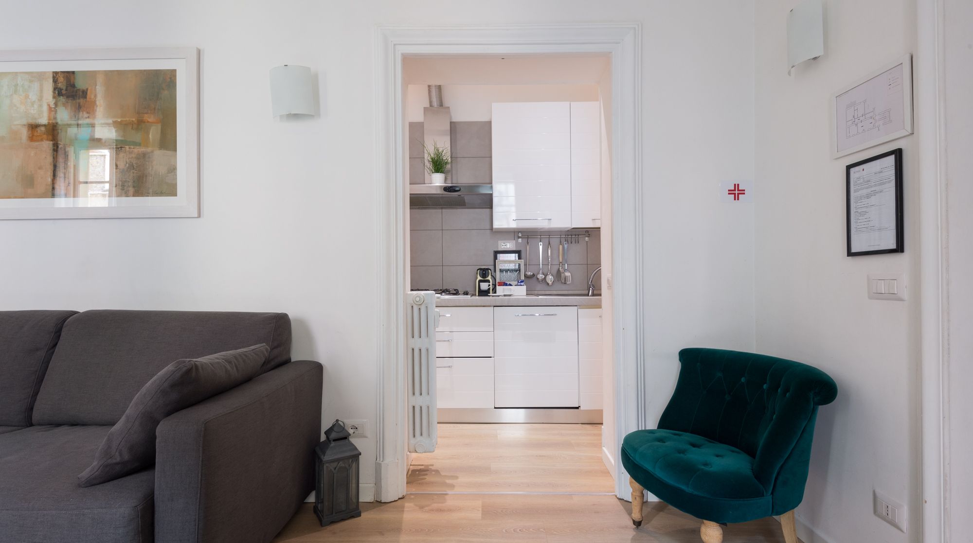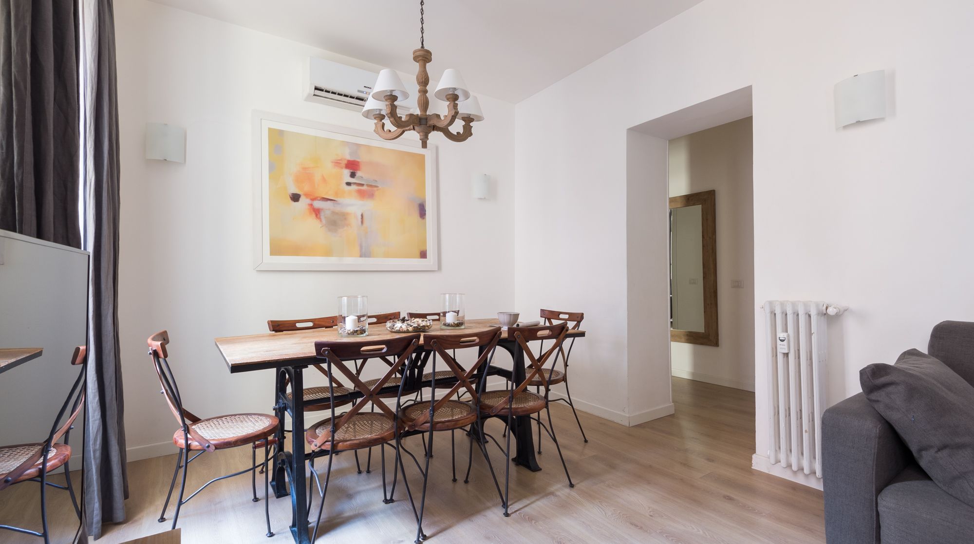 Comfort reigns supreme in this bright and appealing apartment – it’s easy to imagine a family or group of friends feeling very at ease in this rustic home. While there's no bold design or styling, the sober colours and abundance of wood make for a very relaxing and breathable environment to return to after days spent sightseeing. We really loved the unsuspecting little touches around the flat too, such as the Japanese-style painted wardrobe doors and the reclaimed cabinet. You'll notice plenty of tasteful artwork adorning the walls also. Come together in the traditional dining area for a quick coffee, before setting off to complete your tourist itinerary. We were surprised by just how quiet it was here, despite being in the heart of Rome. Walk to the historic Spanish Steps in just fifteen minutes – from there, go shopping and limoncello-sipping around the bustling Piazza di Spagna. Ascend back up the steps to one of the city's most beloved sights, Trevi Fountain, under eight minutes on foot from your new home.