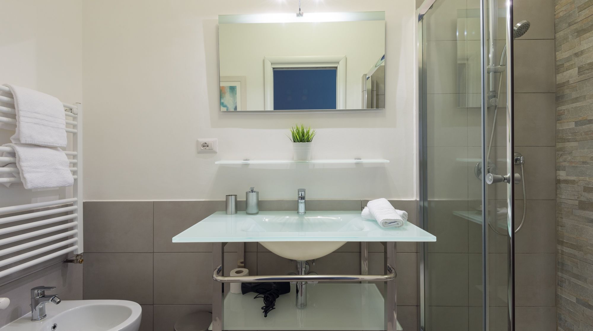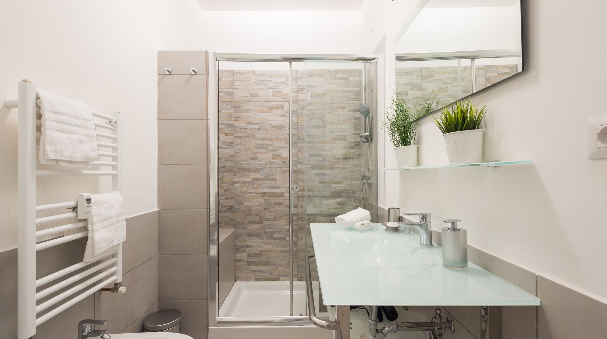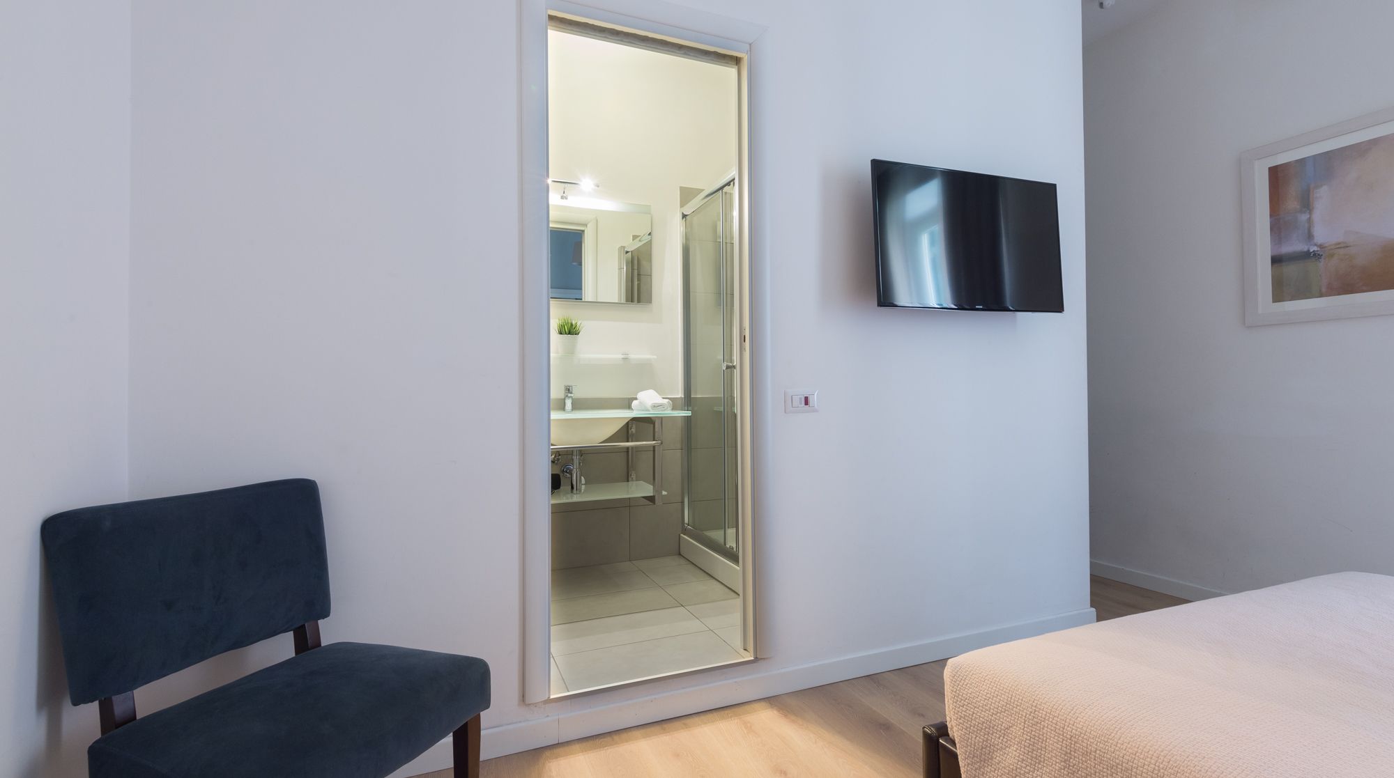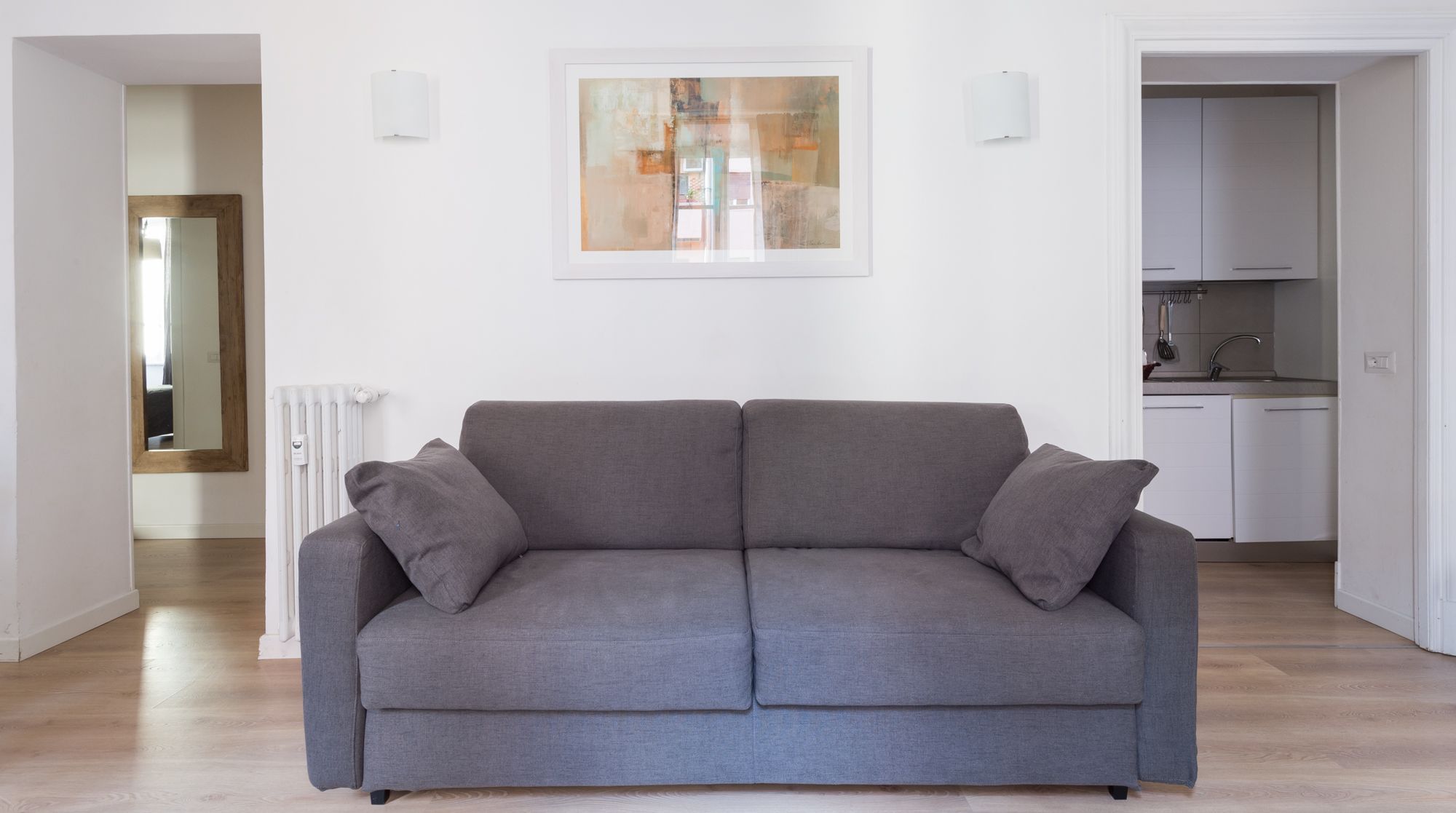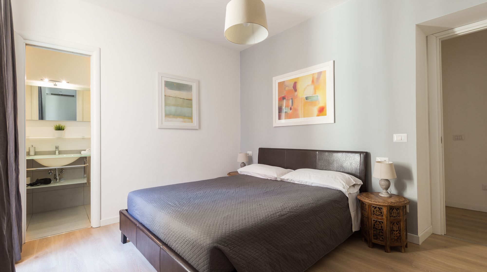 Comfort reigns supreme in this bright and appealing apartment – it’s easy to imagine a family or group of friends feeling very at ease in this rustic home. While there's no bold design or styling, the sober colours and abundance of wood make for a very relaxing and breathable environment to return to after days spent sightseeing. We really loved the unsuspecting little touches around the flat too, such as the Japanese-style painted wardrobe doors and the reclaimed cabinet. You'll notice plenty of tasteful artwork adorning the walls also. Come together in the traditional dining area for a quick coffee, before setting off to complete your tourist itinerary. We were surprised by just how quiet it was here, despite being in the heart of Rome. Walk to the historic Spanish Steps in just fifteen minutes – from there, go shopping and limoncello-sipping around the bustling Piazza di Spagna. Ascend back up the steps to one of the city's most beloved sights, Trevi Fountain, under eight minutes on foot from your new home.