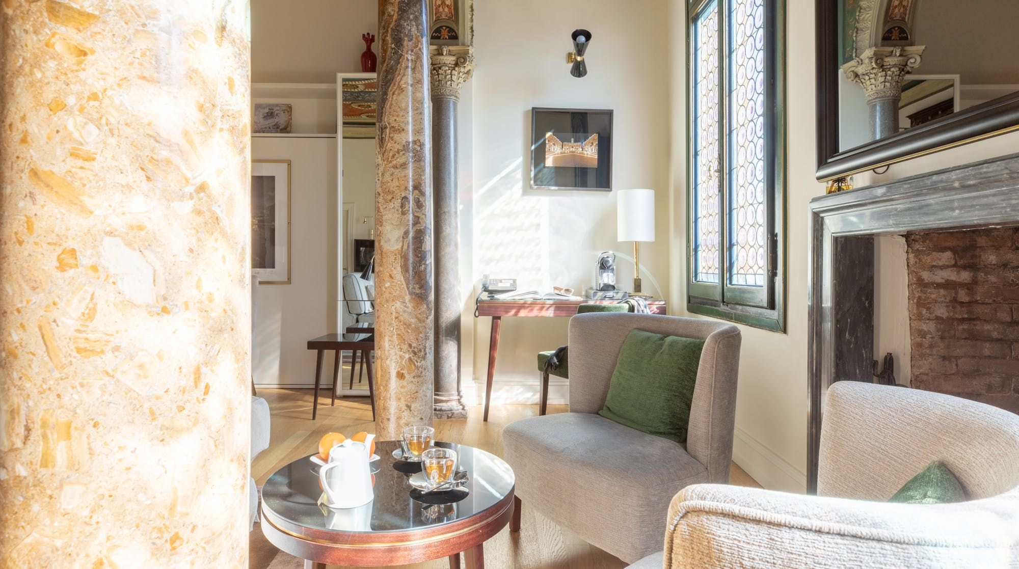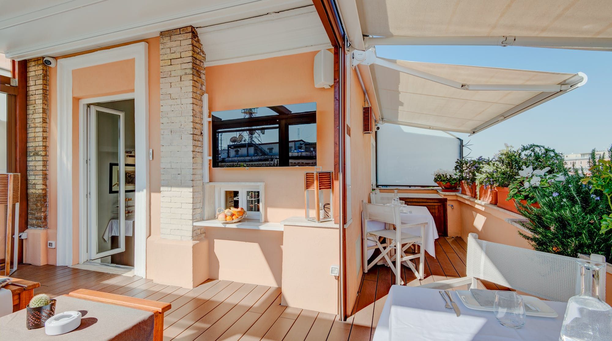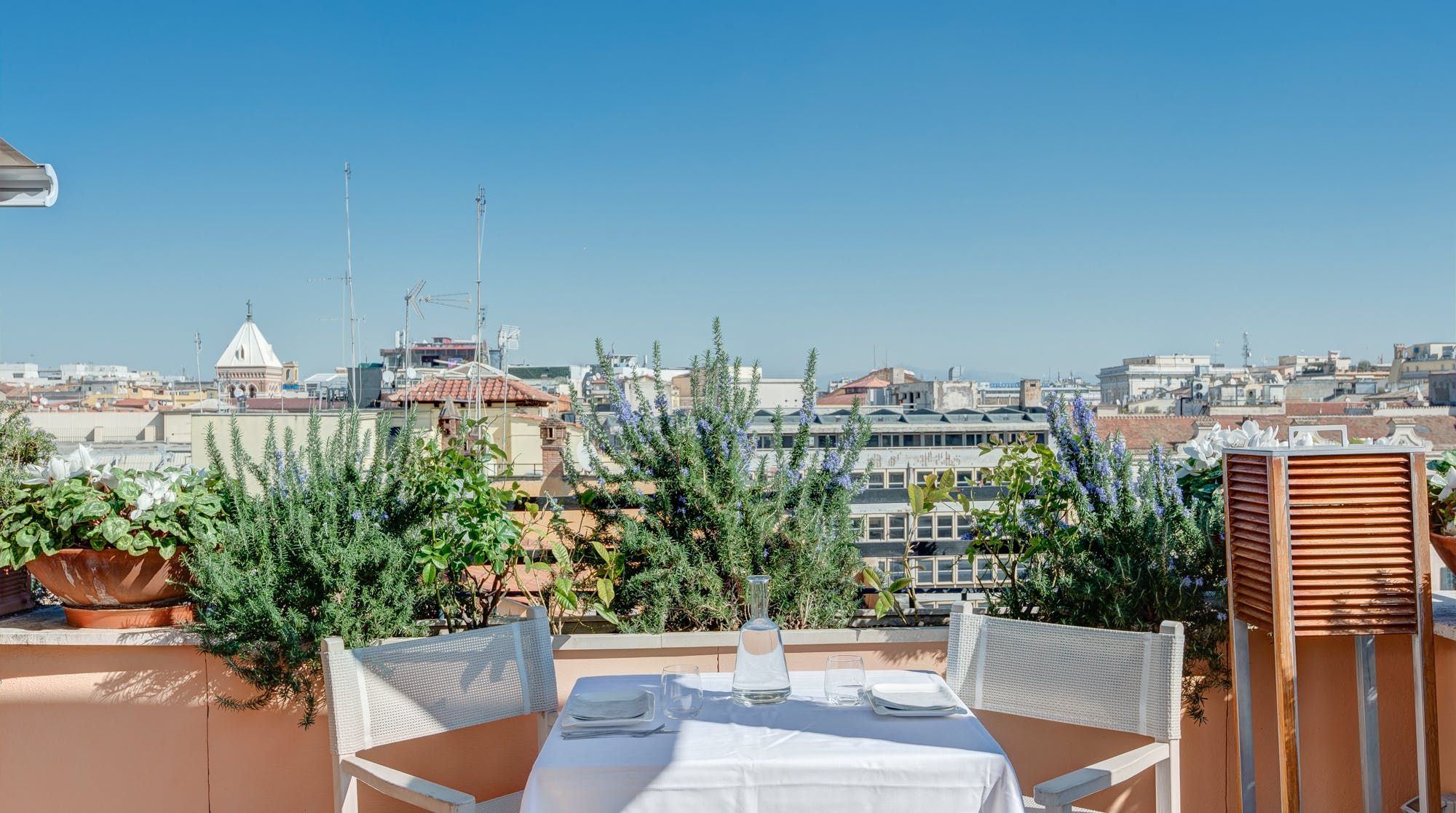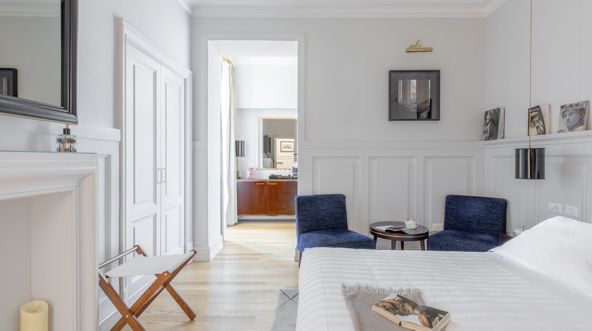 Everything about this palatial apartment clicks seamlessly into place. It’s luxurious, opulent even (how else do you describe the marble columns?), but retains a certain grace – a lightness that stops it from feeling over the top. That’s quite an achievement in a place with ceiling frescoes, parquet flooring, and marble arches. While the living space has a real air of elegance, the bedrooms are more modern and stylish, with whitewashed walls, gold accented furnishings and tasteful artwork (plus their own individual coffee machines). Inhabiting the space between a hotel and an apartment, you'll find plenty of other thoughtful amenities during your stay – from a private chef, housekeeping, and 24/7 concierge. Take your breakfast outside, prepared and served by the staff on your rooftop terrace, offering skyline views over the Eternal City. Beckoning you to explore, walk sixteen minutes and find yourself at one of the seven wonders of the world – the Colosseum. Take a fourteen-minute stroll to the ancient Roman Forum ruins and reach the famous Trevi Fountain in just thirteen-minutes (on foot) – with such a central location, you'll find most of the iconic sights are but a saunter from home.